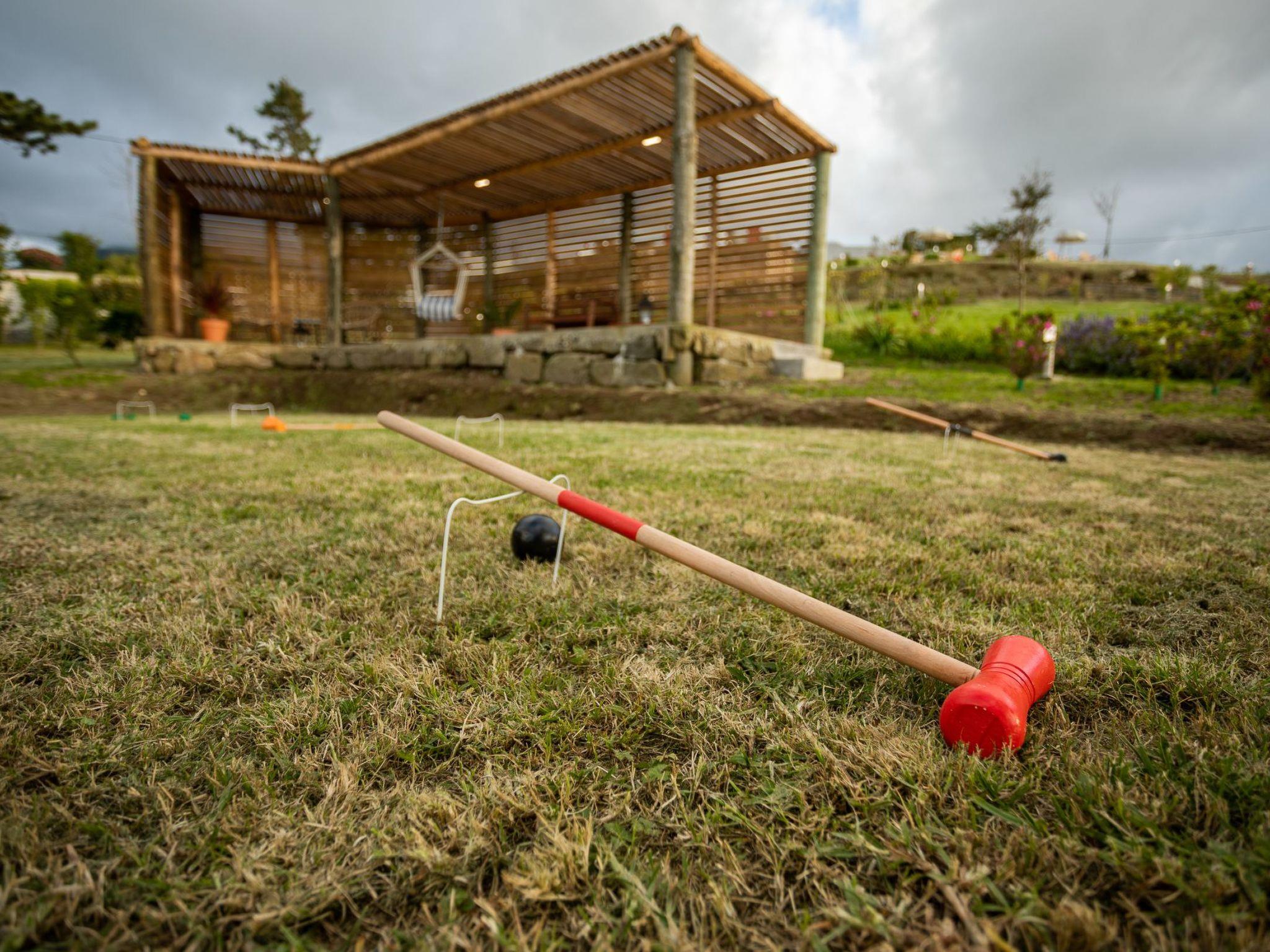 The exterior spaces of Quinta das Cycas are a testament to the care and detail put into creating a serene outdoor environment. The property is a picturesque setting where guests can enjoy the peaceful surroundings. The shared swimming pool invites you to take a refreshing dip, while the contemplation platforms provide quiet spots to unwind and soak in the views. The presence of a pergola offers a shaded retreat, and the croquet court presents an opportunity for gentle leisure activities, making every corner of this estate an invitation to relax and connect with nature.