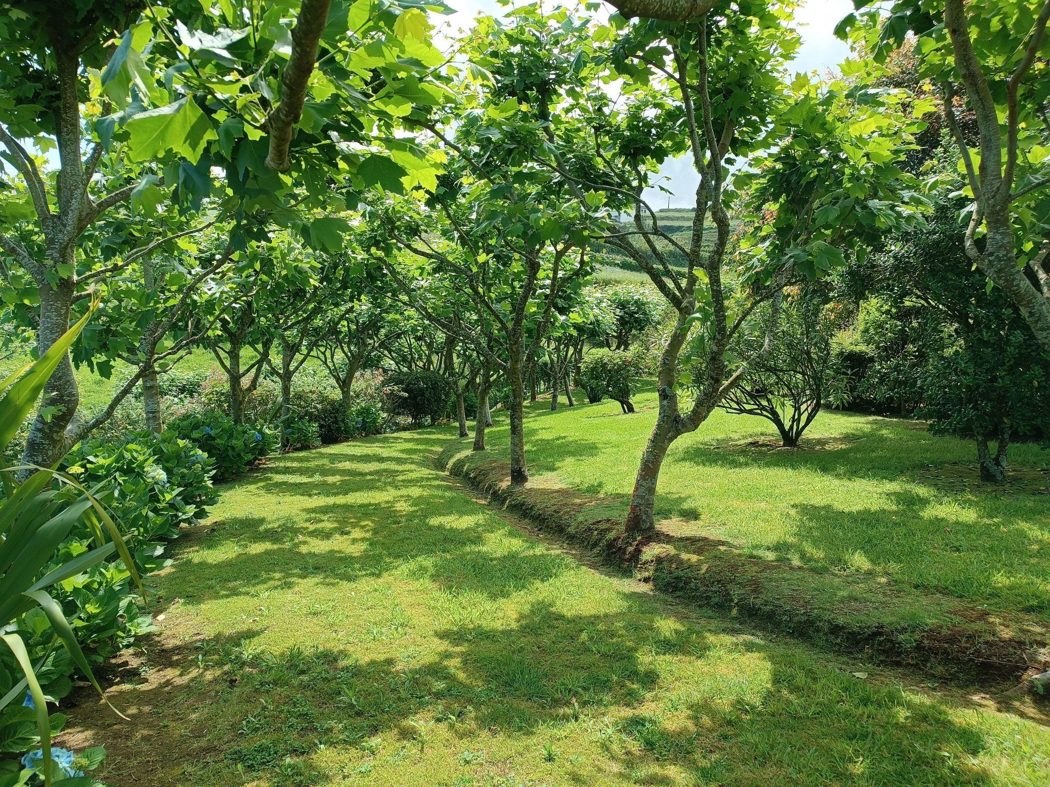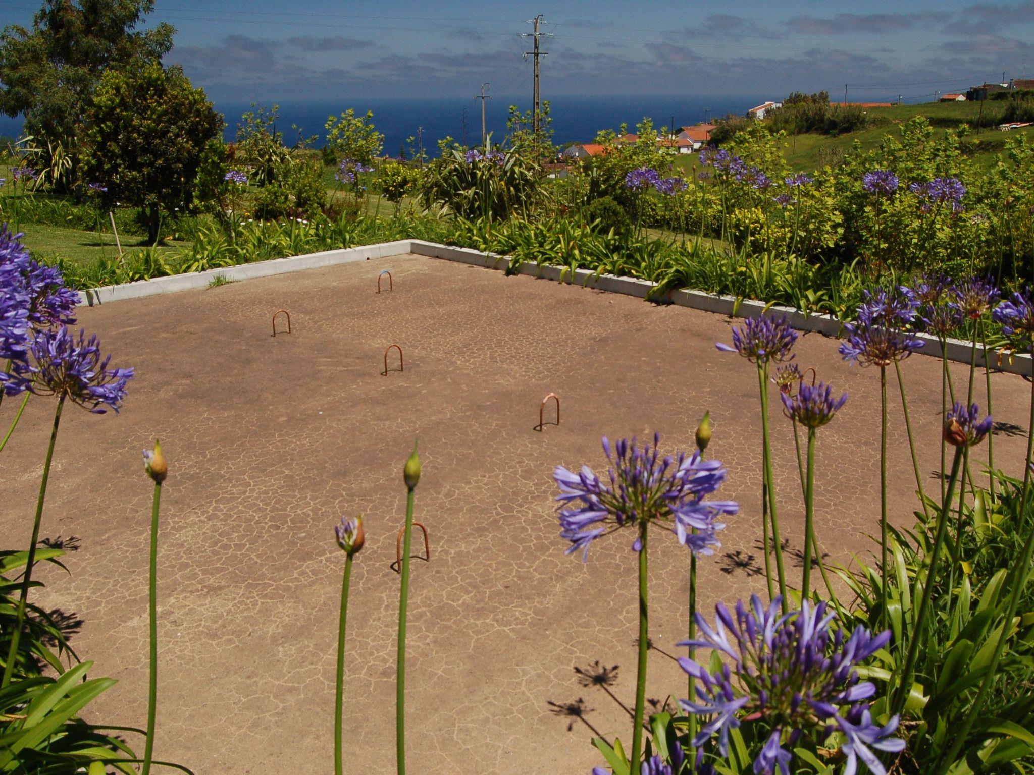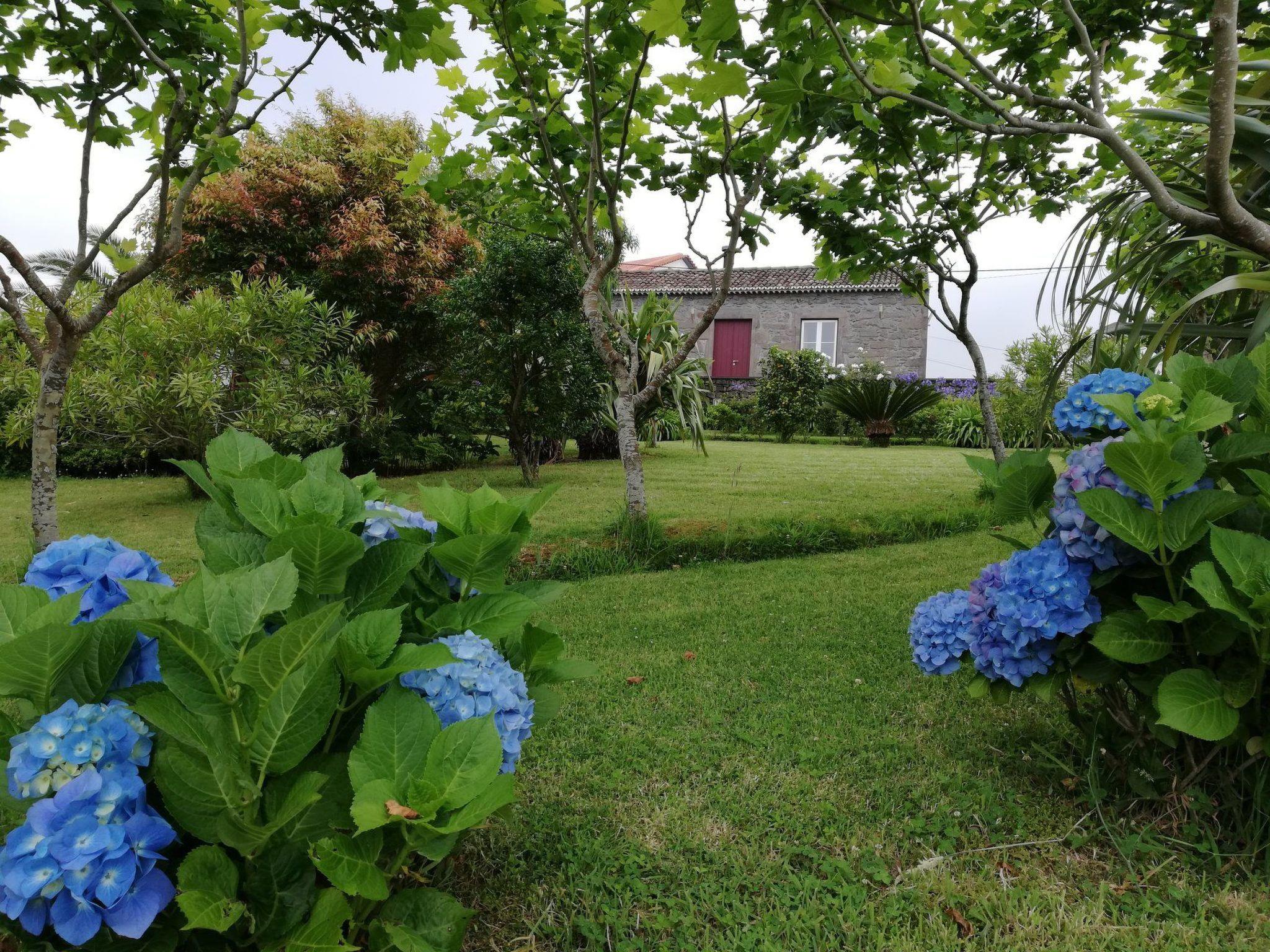 Stepping outside, CASA DA FONTE reveals a grand garden area that captures the essence of the Azorean landscape, with the sea's blue on the horizon and the lush greens of the surrounding mountains. The garden is home to native plants, fruit trees, and vibrant flowers such as azaleas, hydrangeas, and camellias, creating a serene outdoor retreat. Guests can also enjoy a variety of outdoor amenities, including a parking area, a croquet court, and a covered barbecue area, perfect for leisurely afternoons soaking up the tranquil environment.
