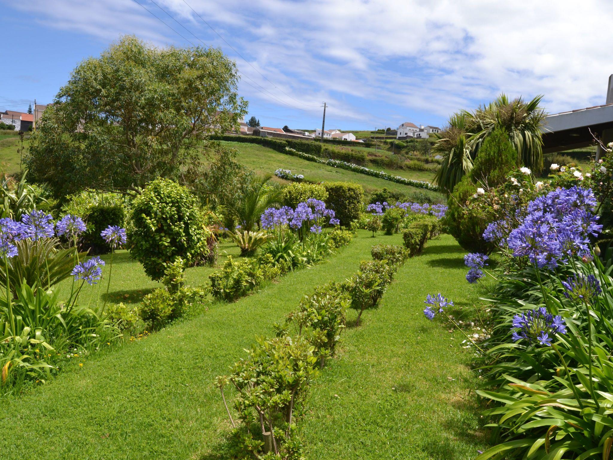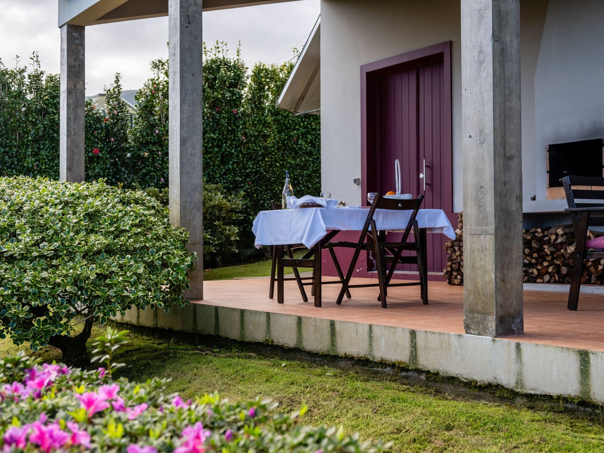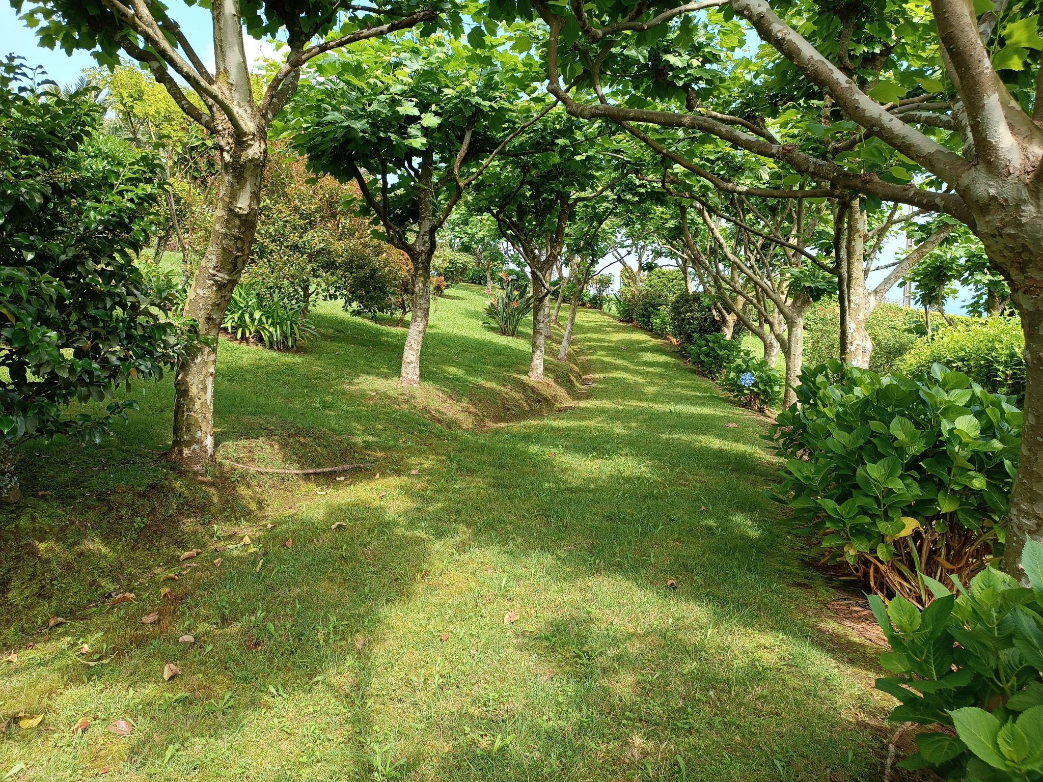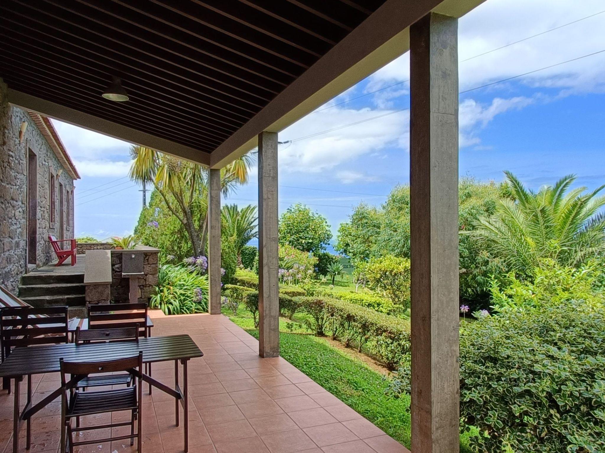 Stepping outside, CASA DA FONTE reveals a grand garden area that captures the essence of the Azorean landscape, with the sea's blue on the horizon and the lush greens of the surrounding mountains. The garden is home to native plants, fruit trees, and vibrant flowers such as azaleas, hydrangeas, and camellias, creating a serene outdoor retreat. Guests can also enjoy a variety of outdoor amenities, including a parking area, a croquet court, and a covered barbecue area, perfect for leisurely afternoons soaking up the tranquil environment.