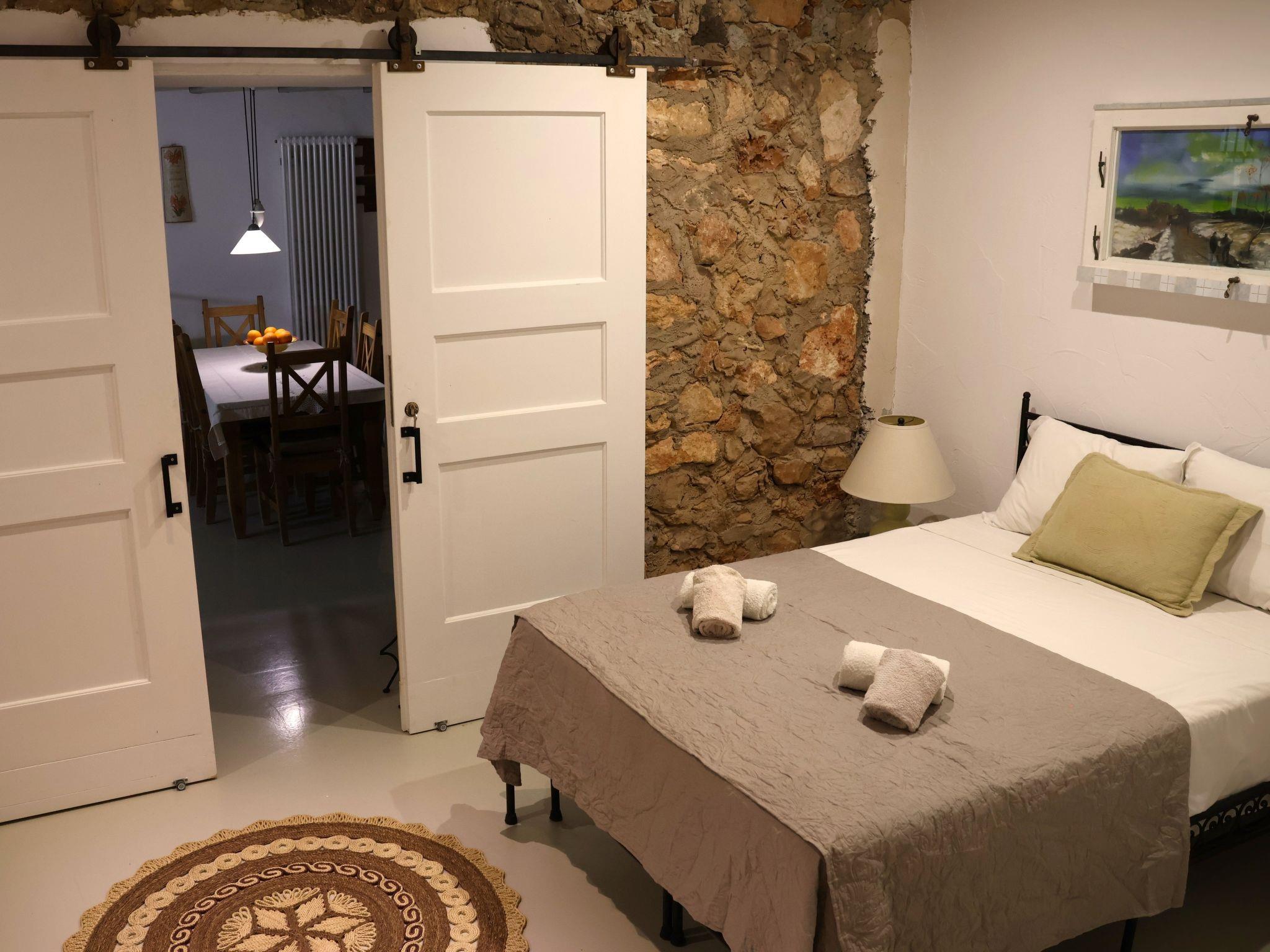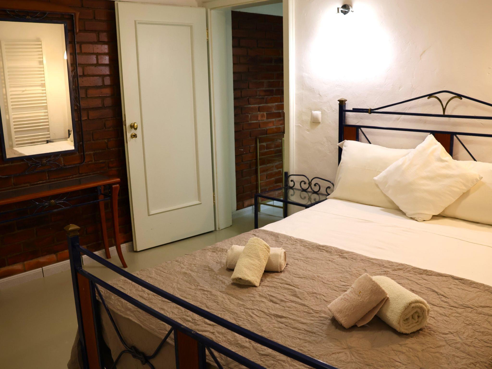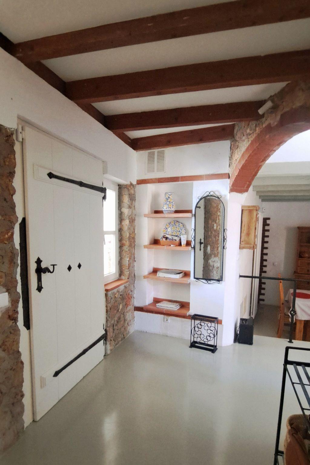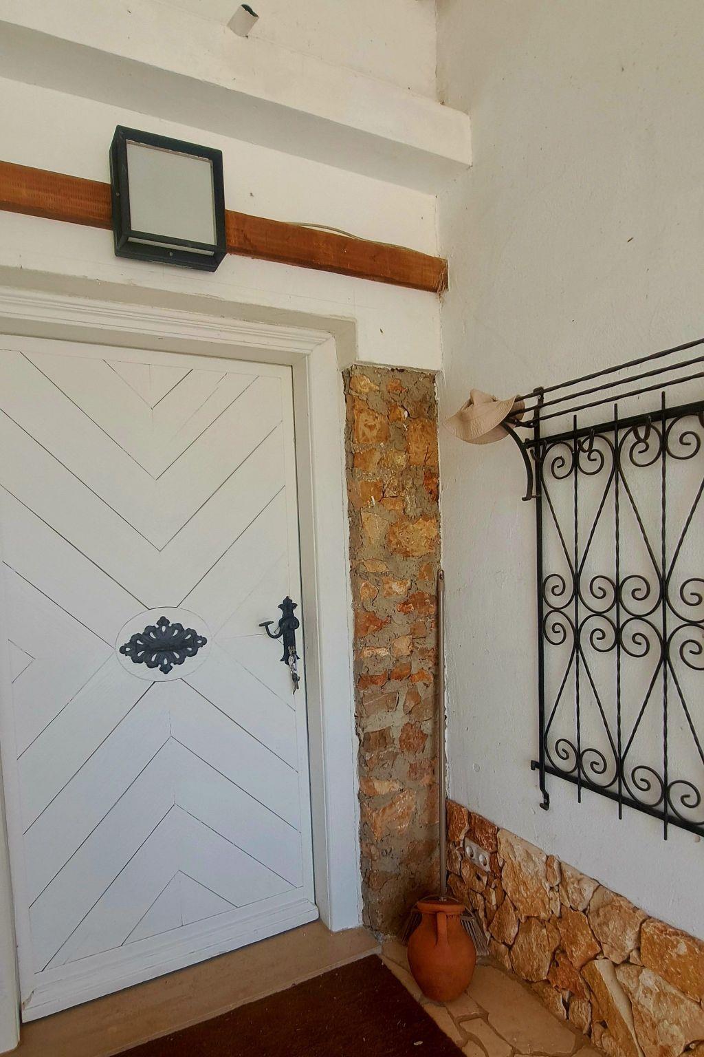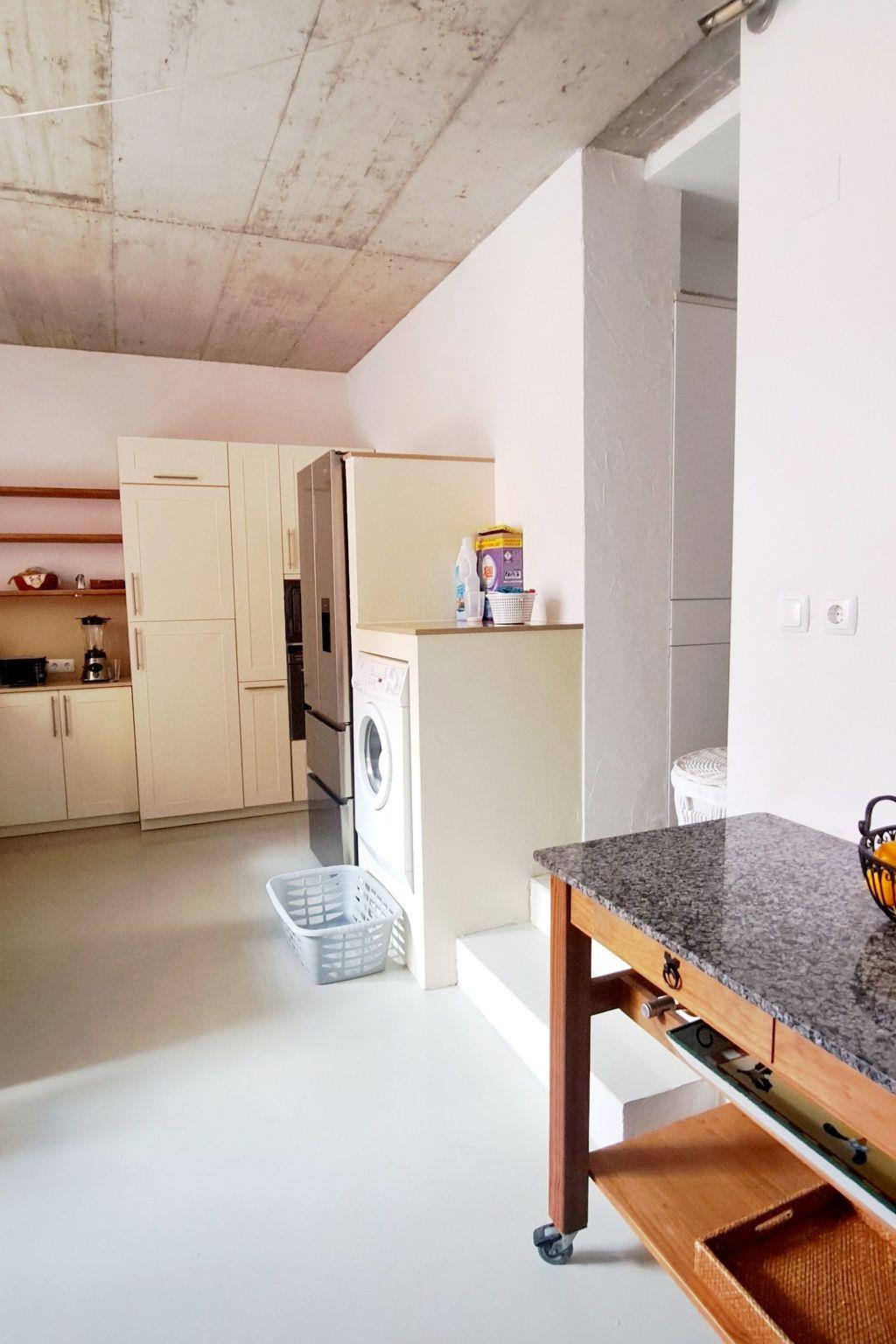 On the ground floor there are 2 separate sleeping areas with their own bathrooms. Each bedroom is furnished with a metal double bed (1x140 cm; 1x 180 cm). The kitchen is very well equipped with dishwasher, washing machine, ceramic hob, oven, microwave, kettle, coffee machine, toaster and large fridge incl. freezer compartments. The house can be heated in the low season (central heating).