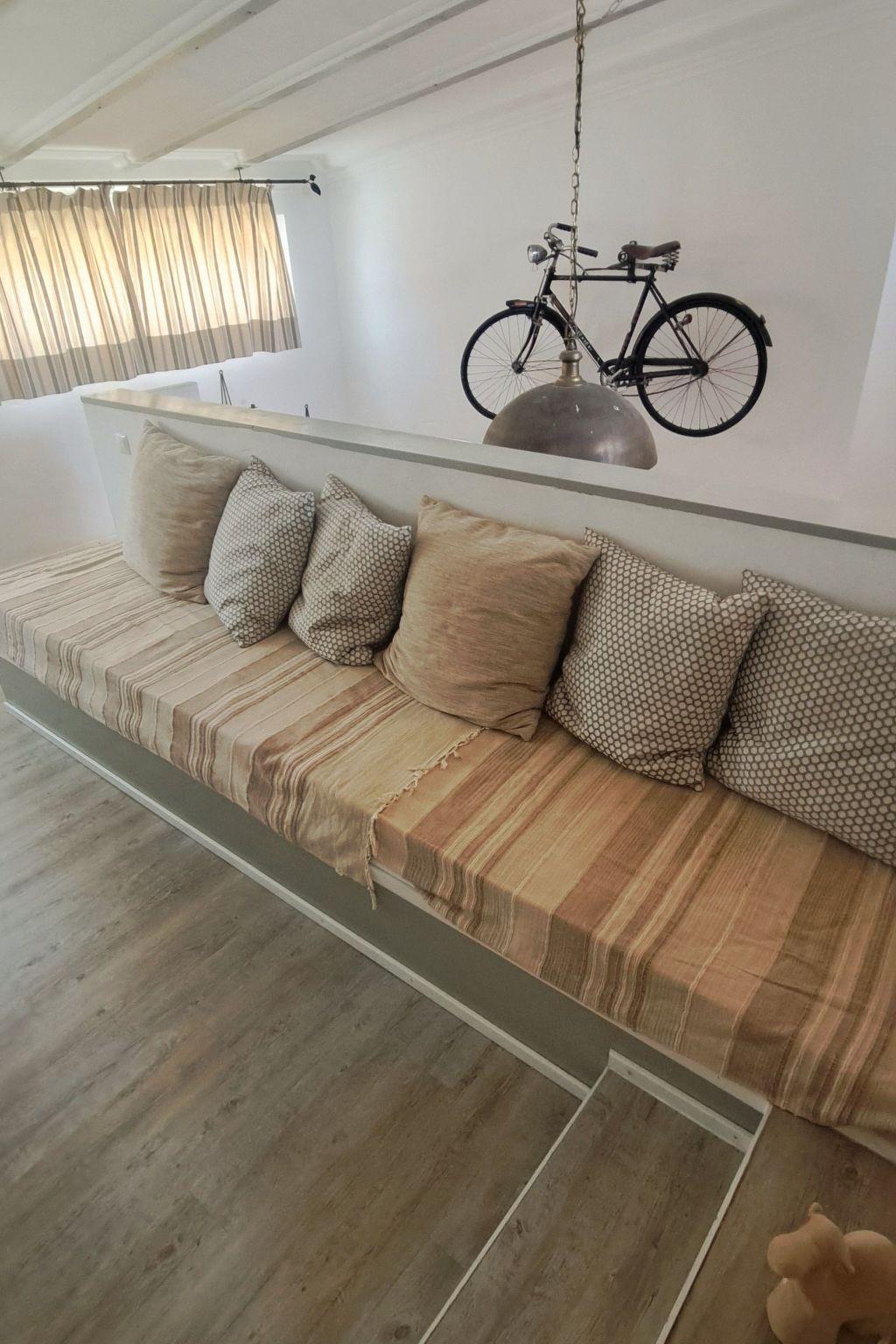 An internal staircase leads from the living room/kitchen to an approx. 15 m² gallery room (1st floor) with a large sofa and direct access to the roof terrace.