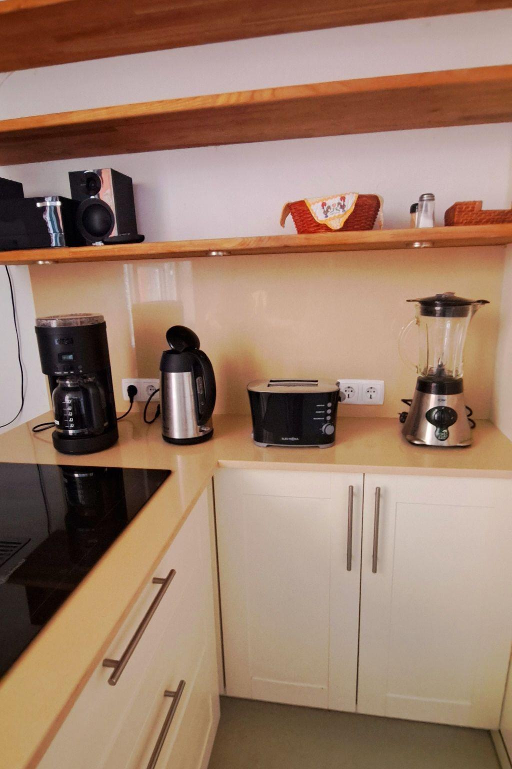 Bed linen and kitchen towels are provided. The kitchen is equipped with pots, crockery, cutlery and some kitchen utensils, such as cooking spoons, spaghetti spoons, can opener, grater, garlic press, Tupperware.