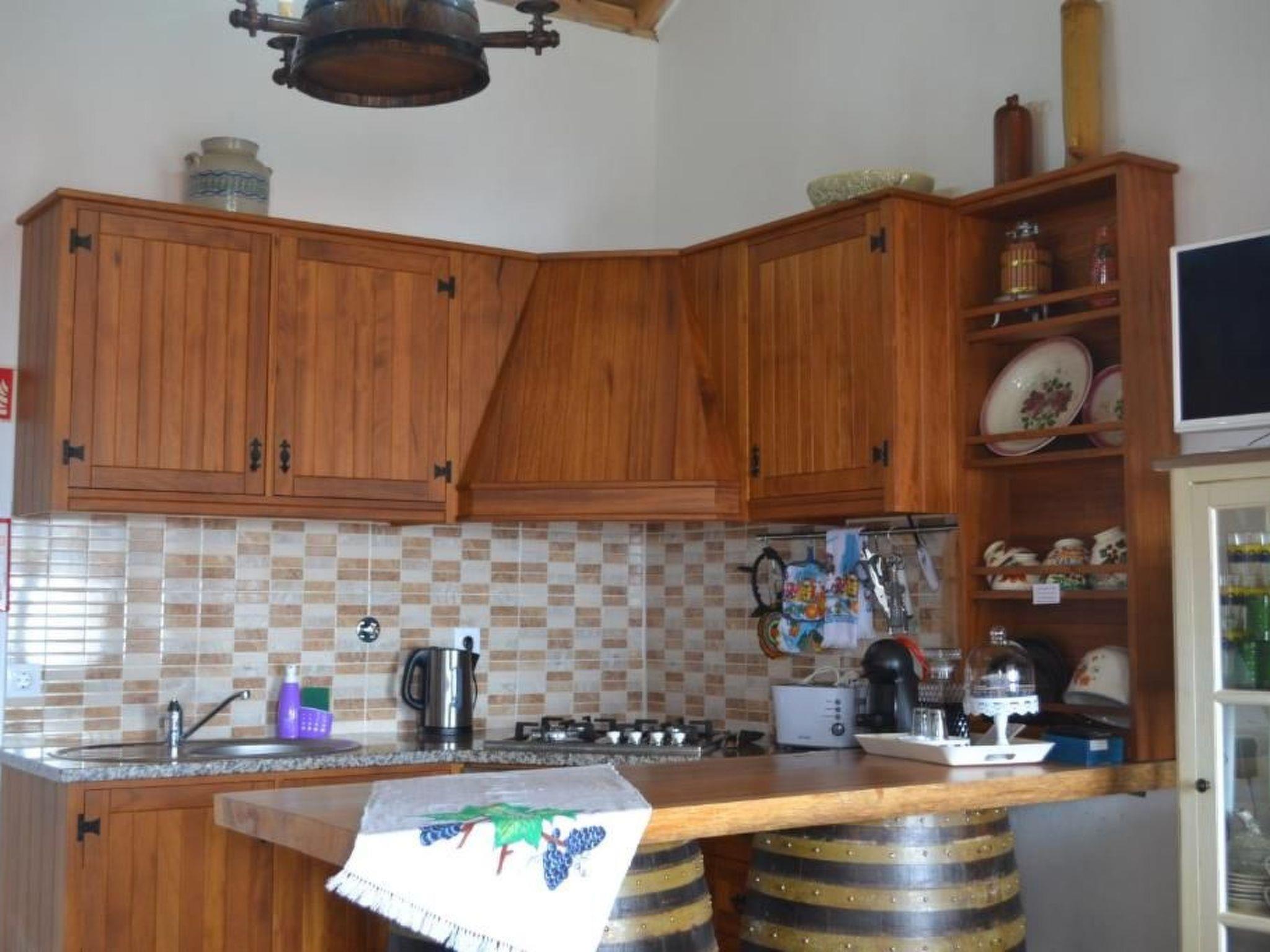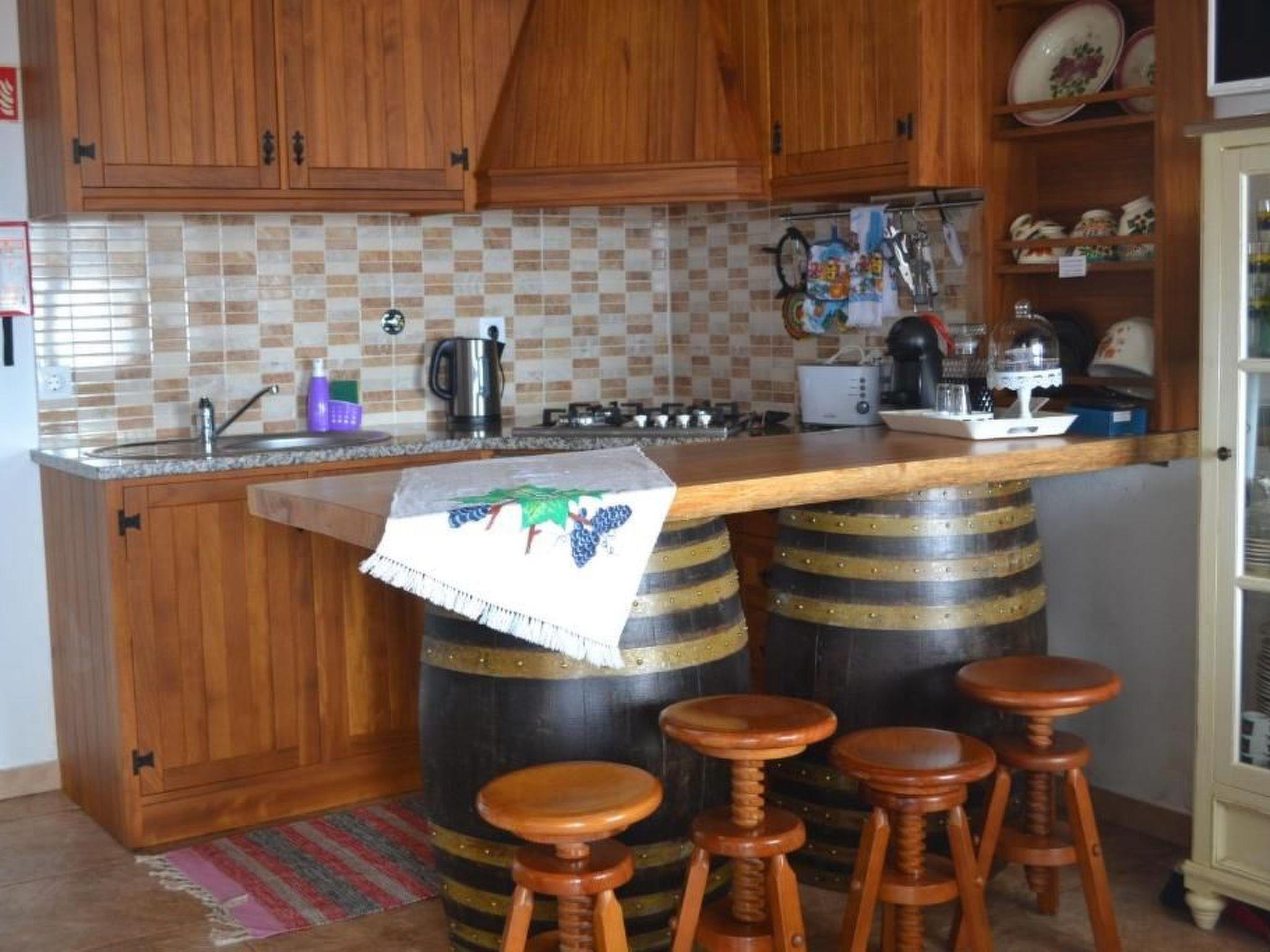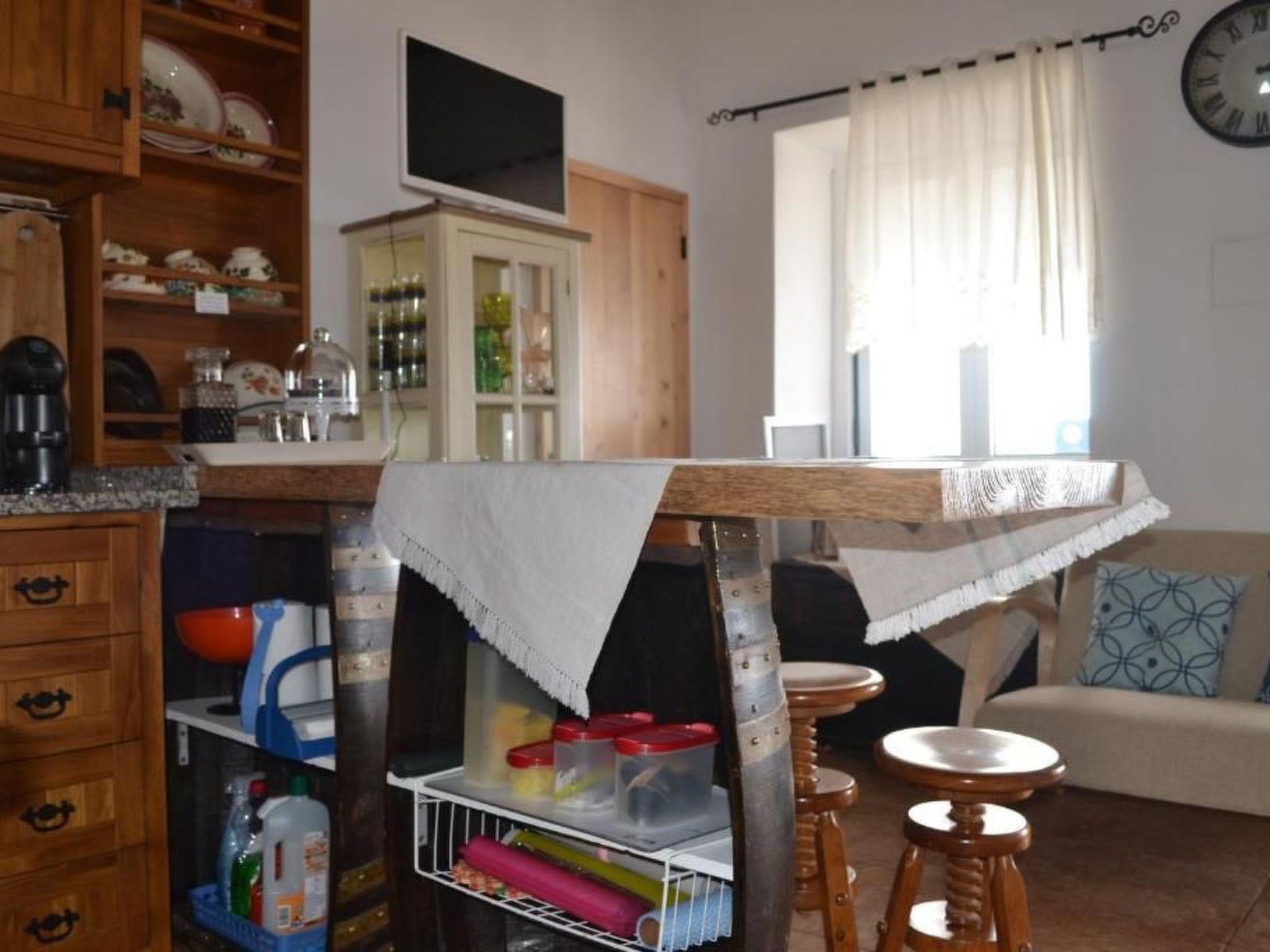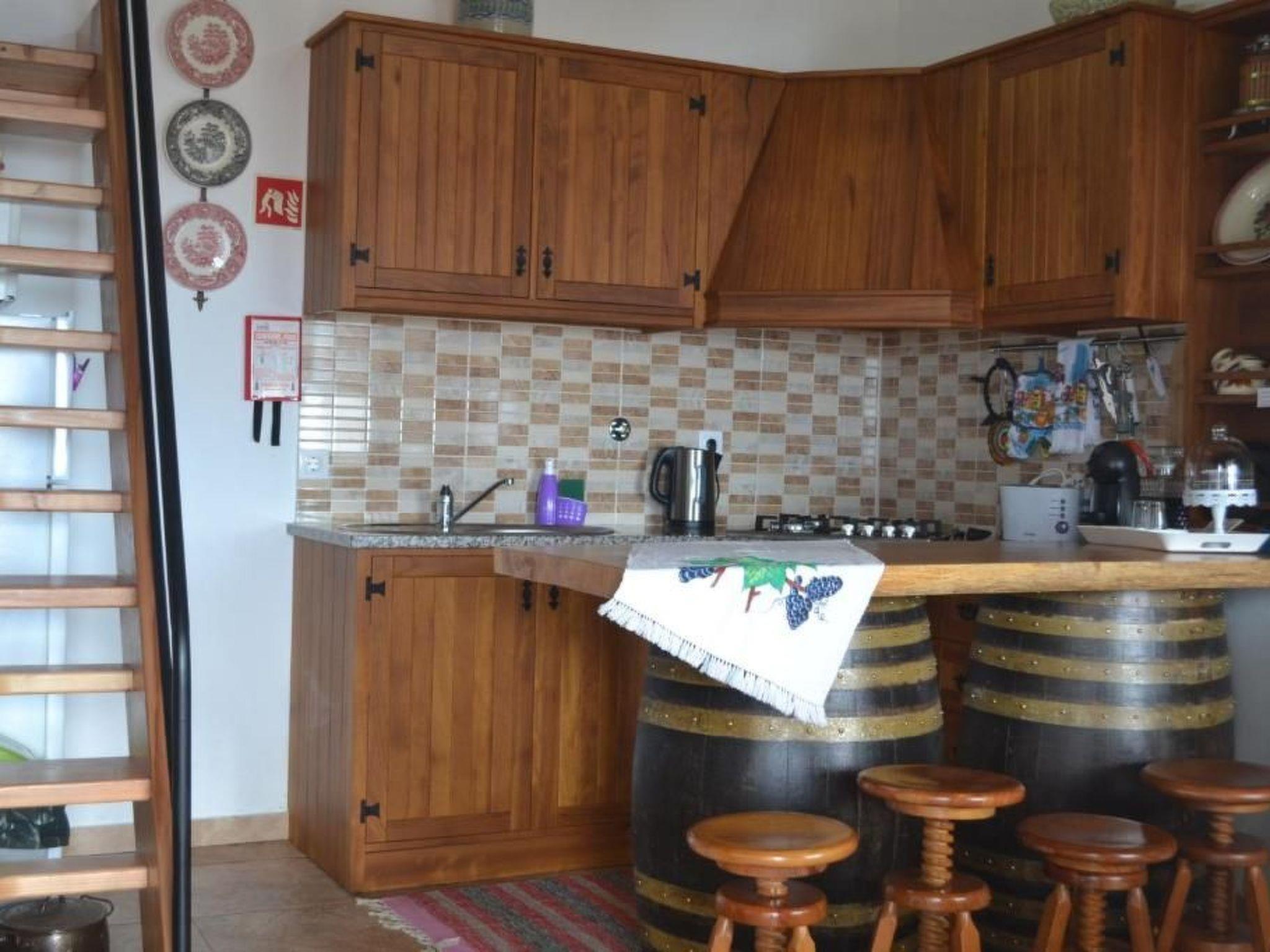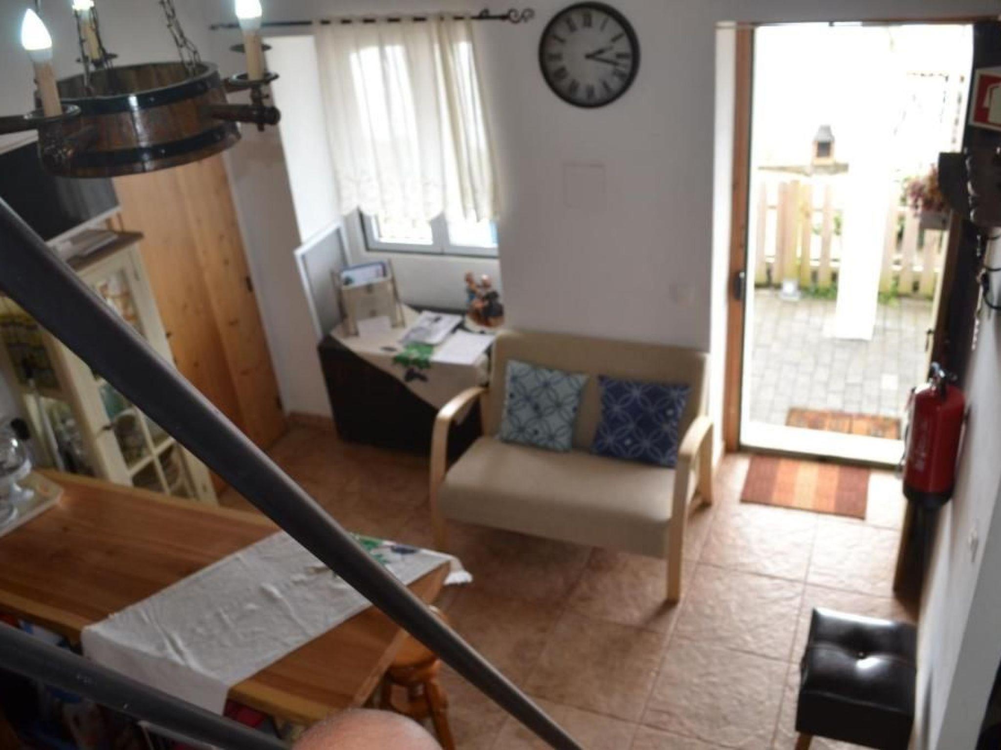 This excellent rustic house is located in a privileged spot in the parish of Feteira, close to the sea, surrounded by vineyards and other crops, fresh air, radiant sunshine and an excellent place to rest and relax with the birds chirping. From the patio, terrace and windows of the house, you have the privilege of seeing the sea, Ilhéu das Cabras, Ilhéu pequeno, Monte Brasil and the historic bay of Angra do Heroísmo. This patio is equipped with a mobile barbecue. This rustic one-bedroom house has a living room with a plasma-screen TV, as well as a kitchenette complete with a fridge, microwave, toaster, coffee maker, teapot and other kitchen utensils. The bedroom has a double bed, bedside table and antique furniture typical of a rustic house. The bathroom has a shower and all the necessary utensils. There is an attic with a double bed, bedside table and chest of drawers. This type of attic house is traditional and very common in the locality of Serretinha. This house can accommodate up to 2 people.