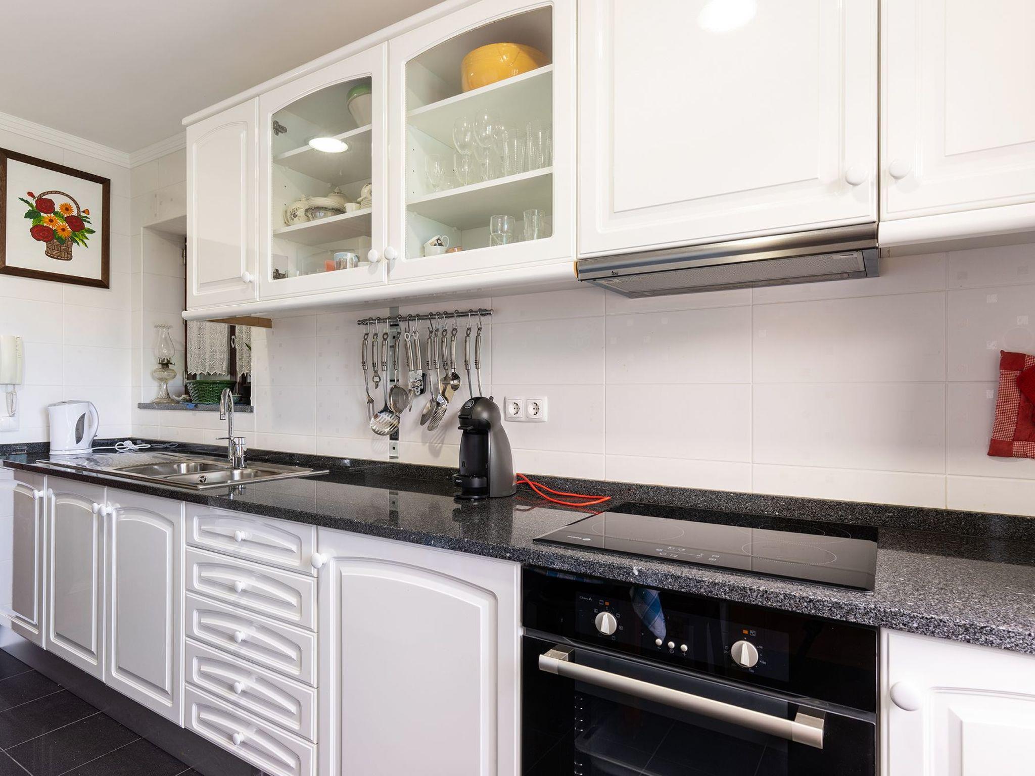 The interior of Villa Dinis is thoughtfully designed to ensure a comfortable stay. The house includes three cozy bedrooms, each furnished with a double bed to promise a restful night's sleep. Two of the bedrooms boast private balconies, offering a private space to enjoy the stunning surroundings. The living space is open plan, featuring a comfortable sitting area with a flat screen TV for entertainment and a dining area for communal meals. The house also comes equipped with essentials such as a coffee machine for capsule/pods, an electric kettle, and a convenient washing machine for personal use, making it feel like a home away from home.