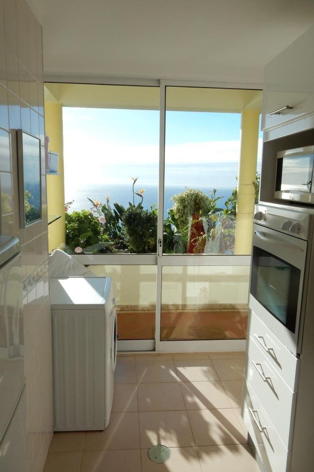 This is a beautiful and very popular apartment that has breathtaking panoramic sea views and stunning sunsets over the adjacent banana plantation. All the rooms open onto a large balcony where you can relax and enjoy the views with a glass of Madeira wine. Penthouse apartment with One double bedroom with en-suite bathroom (twin wash hand basins, WC, over bath shower, bidet). One twin bedroom with bathroom (WC, over bath shower, bidet). Kitchen with dishwasher, washing machine, fridge freezer, microwave. Fully equipped. Lounge & dining room. Satellite TV. DVD. CD player. Large wraparound balcony with sun loungers, table, and chairs. All rooms have direct access to the balcony.