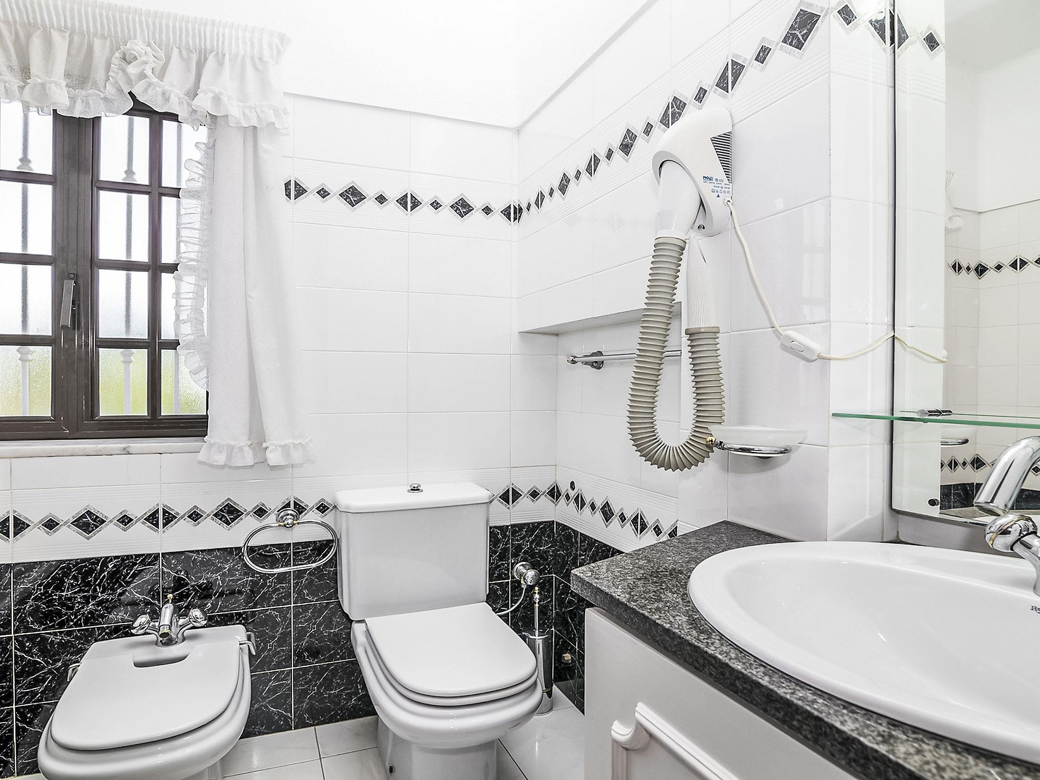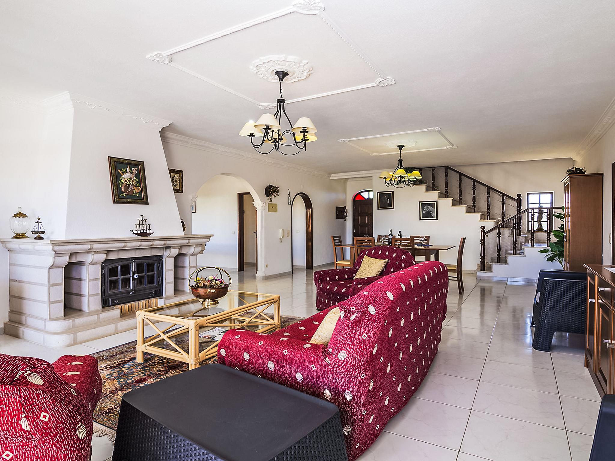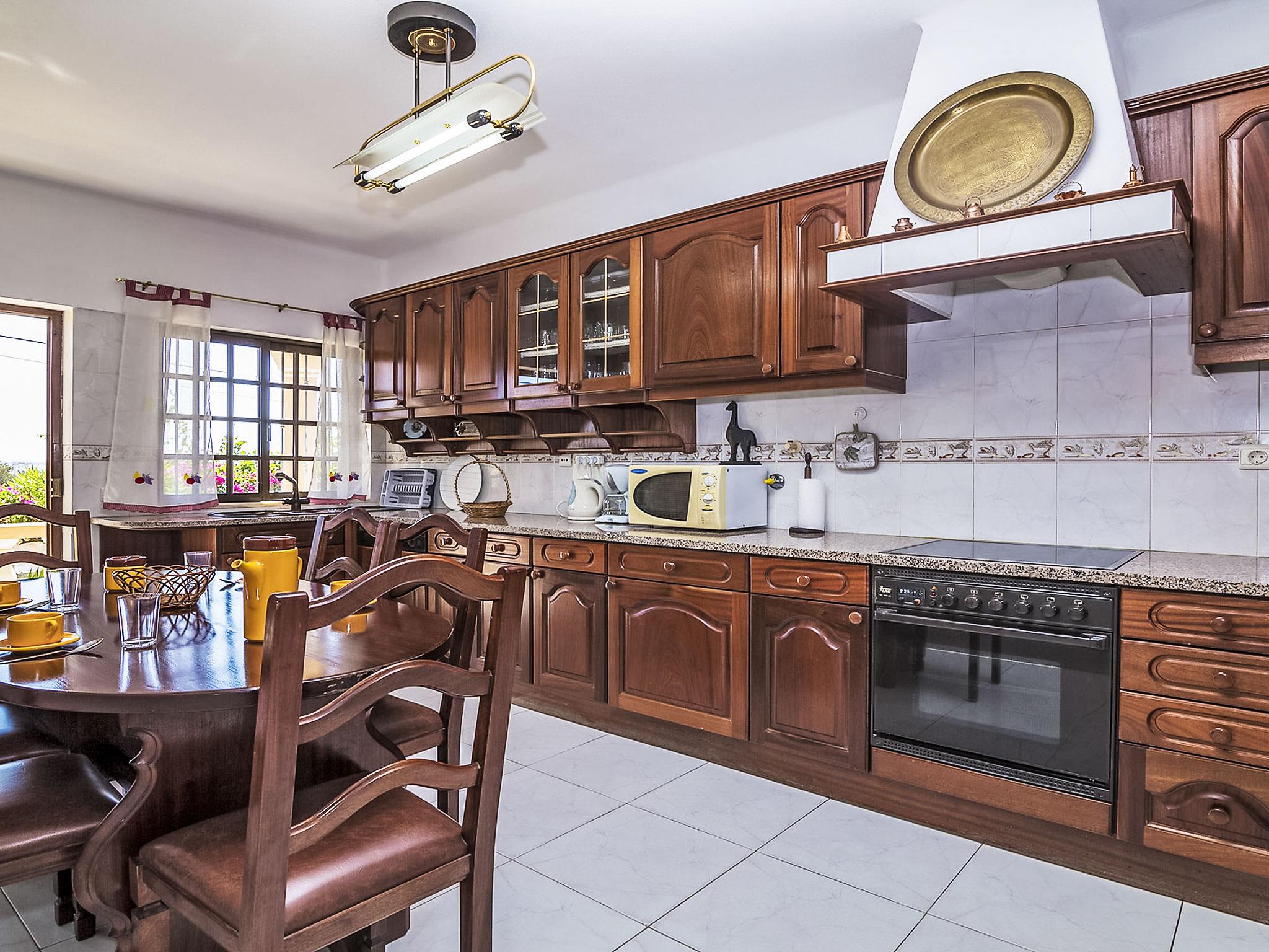 "Villa Quinta do Sol", 5-room villa 344 m2 on 2 levels. Object suitable for 8 adults. Very comfortable and cosy furnishings: open living/dining room with open-hearth fireplace, dining table and satellite TV (flat screen). Exit to the terrace. 1 room with 2 beds. Kitchen (oven, dishwasher, 4 ceramic glass hob hotplates, microwave, electric coffee machine, Capsules for coffee machine (Dolce Gusto Not Incl)) with dining table. Bath/WC, shower/WC. Upper floor: 2 rooms, each room with 1 french bed. 1 room with 2 beds. Bath/WC, shower/WC. Comfortable furnishings in the country house style. Terrace furniture, barbecue, deck chairs (8). Side view of the sea, the mountains and the countryside. Facilities: washing machine, baby cot for up to 3 year olds, hair dryer. Suitable for families. 9456/AL