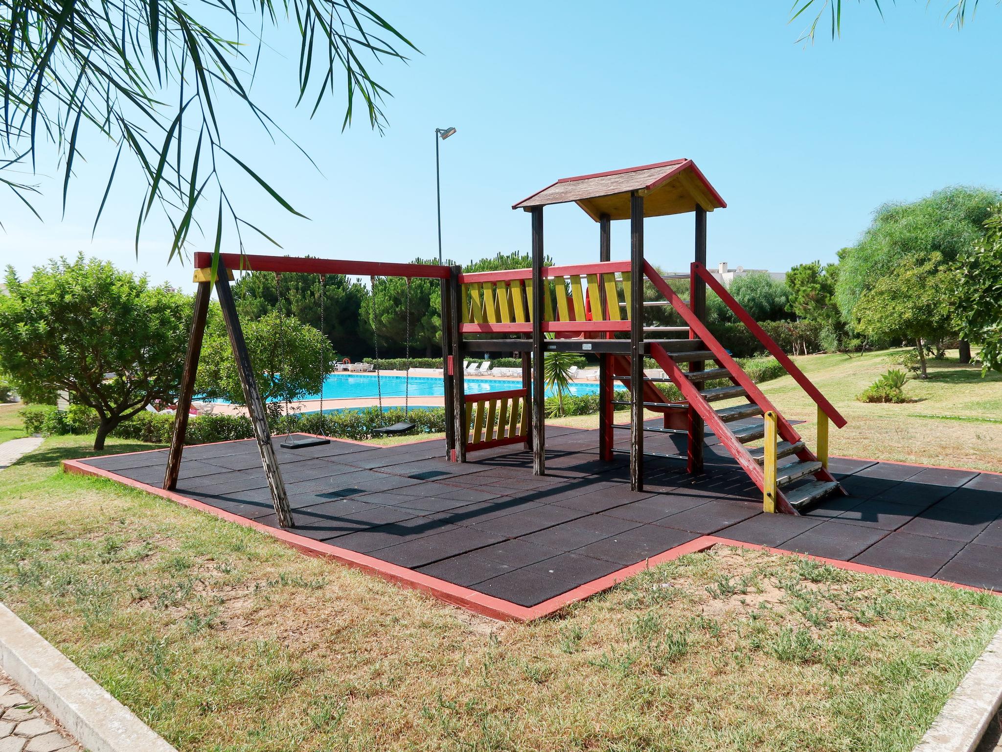 Resort "Quinta do Torrejão", 2 storeys. 6 houses in the residence. 60 apartments in the residence. In the district of Alporchinhos 3 km from the centre of Armação de Pêra, 4 km from the centre of Porches, 9.4 km from the centre of Lagoa, 1 km from the sea. For shared use: property 12'500 m2, well-kept garden with lawn and trees, swimming pool (250 m2, depth 125 - 255 cm, seasonal availability: 01.Jan. - 31.Dec.). WC in the pool area, children's pool, outdoor shower, children's playground. In the house: roof terrace. Parking (limited number of spaces) on the premises. Supermarket 750 m, shopping centre 12.4 km, restaurant 550 m, pub garden 4 km, bus stop 350 m, sandy beach "Nossa Senhora da Rocha" 1 km. Golf course (18 hole) 9.6 km. Nearby attractions: Aqualand 8 km, Zoomarine 9 km. Hiking paths: Passadiço do Algar Seco 11.2 km, 7 Vales Suspensos 11 km. The owner does not accept any youth groups.