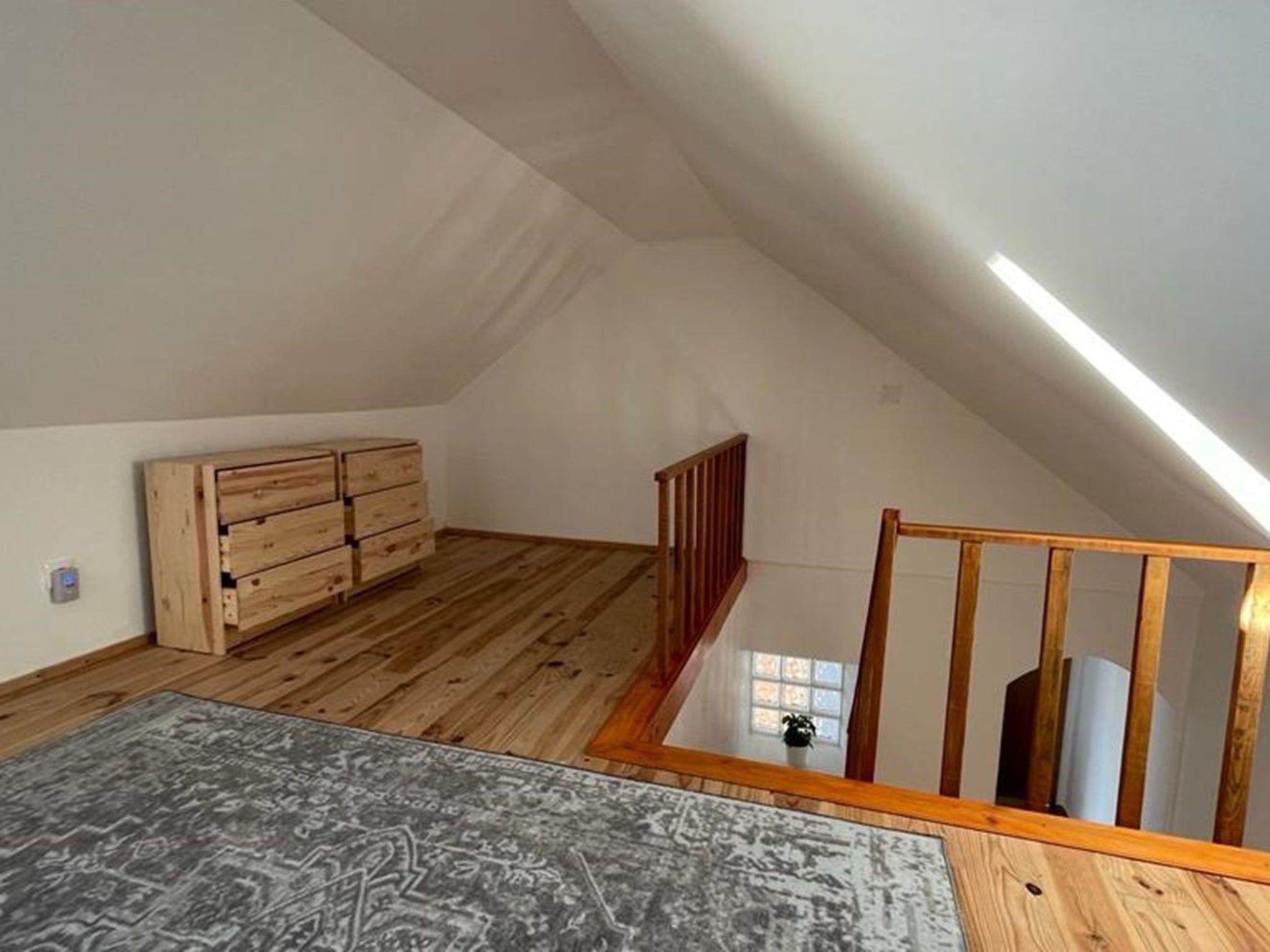 Inside, the house provides a welcoming atmosphere with ample space for everyone. The sleeping arrangements include a comfortable double room, a bedroom equipped with a bunk bed, and a mezzanine floor featuring a cozy double bed plus two single beds, accommodating a variety of group configurations with ease. There are also two well-maintained bathrooms for your convenience. The heart of the house is the open space living area, seamlessly integrating the kitchen and dining zone, ensuring everyone can gather and socialize while meals are being prepared. Practical amenities like a washing machine, clothes dryer, capsule coffee machine, dishwasher, and an electric kettle add to the ease of your stay, making it as comfortable as possible.