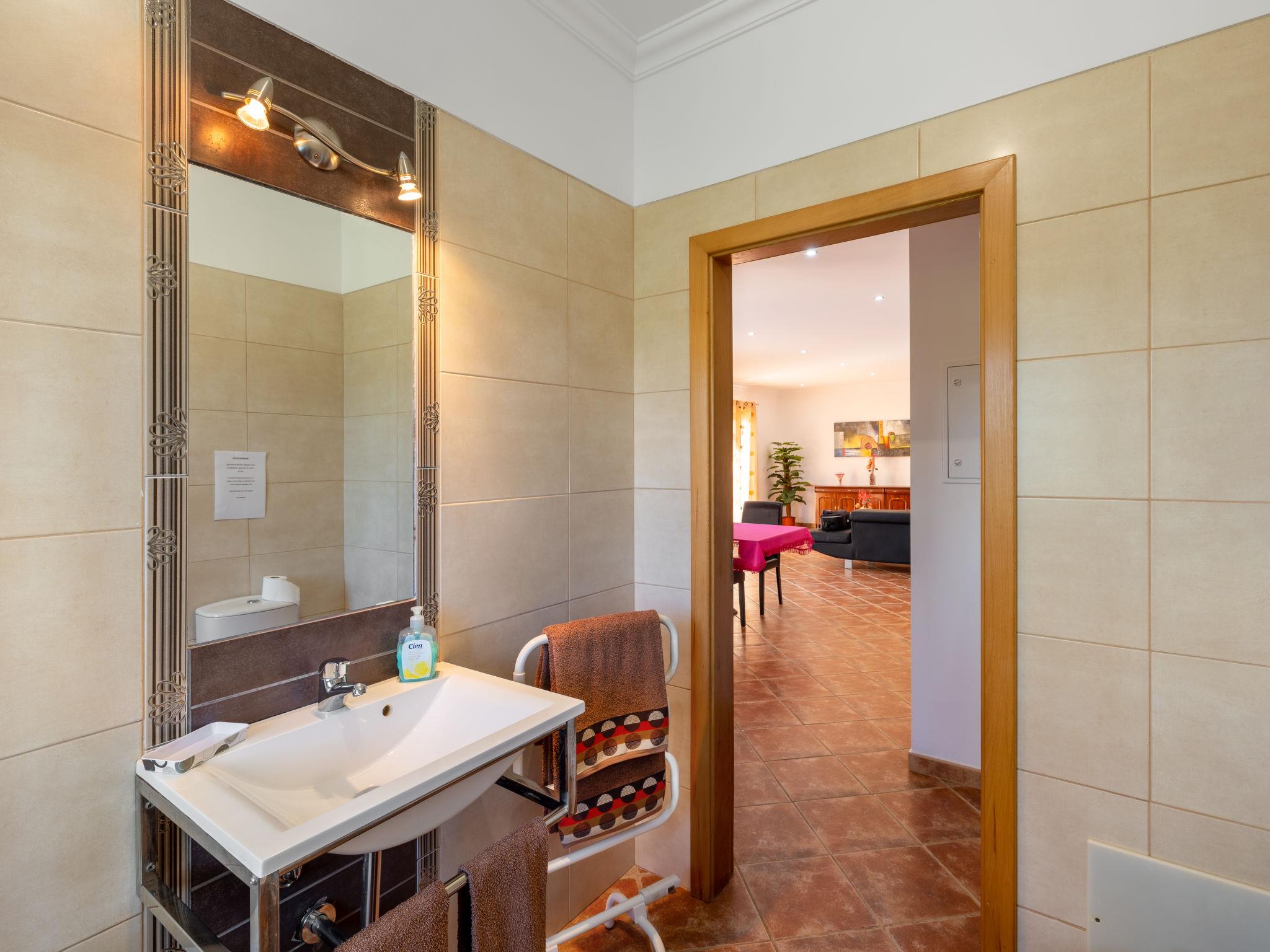 House "Joaquim", surrounded by trees and meadows. 3.5 km from the centre of Estói, 7.3 km from the centre of São Brás de Alportel, 15 km from the centre of Faro, 18 km from the sea, in the countryside. Private: natural state property 7'000 m2 (fenced), well-kept garden with trees, swimming pool (8 x 4 m, depth 110 - 200 cm, seasonal availability: 01.Jan. - 31.Dec.). Pool maintenance by the owner/gardener. 150 m long steep motor access. Parking (for 2 cars) on the premises. Shop 3.5 km, supermarket 3.9 km, restaurant 3.3 km, bus stop "Espargueira, Estoi" 550 m, railway station "Faro" 15.2 km, sandy beach "Ilhas de Armona & Culatra" 12.8 km, indoor swimming pool 8.3 km. Marina 15.2 km, golf course (18 hole) 16 km, tennis 8.3 km. Nearby attractions: Aquaparc Quarteira 22 km.