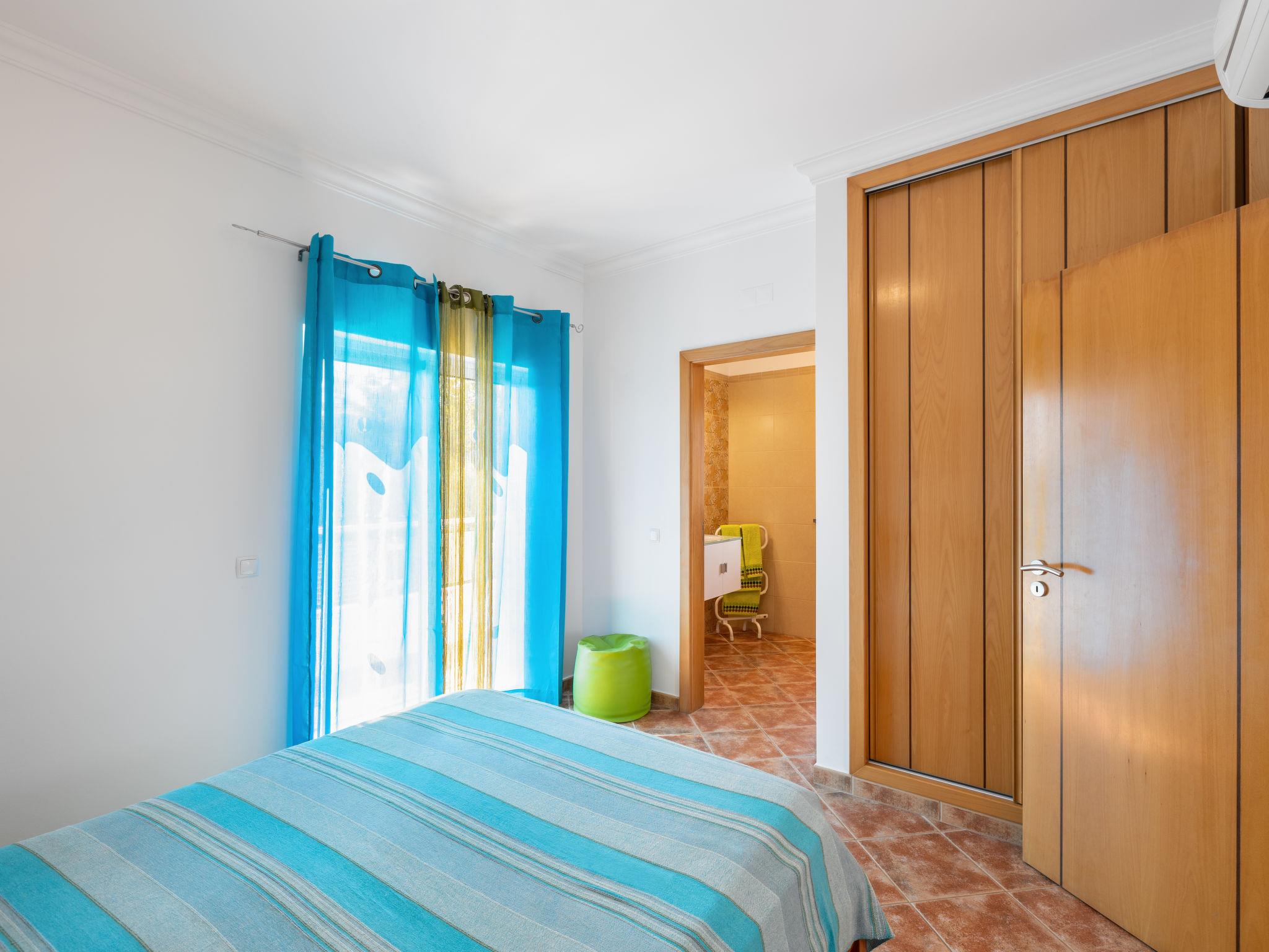 "Casa Joaquim", 4-room house 115 m2 on 2 levels. Bright, modern furnishings: living/dining room with open-hearth fireplace, dining table, satellite TV and DVD. Exit to the terrace. 1 room with 2 beds (90 cm, length 195 cm). Exit to the terrace. Kitchen (oven, dishwasher, 4 ceramic glass hob hotplates, toaster, kettle, microwave, freezer, electric coffee machine) with dining table. Shower/WC. Electric heating, air-conditioning. Heating not available in all rooms. Upper floor: 1 room with 1 double bed (160 cm, length 200 cm). Exit to the balcony. 1 room with 2 beds (90 cm, length 195 cm). Exit to the balcony. Bath/WC, shower/WC. 2 balconies 13 m2, balcony 9 m2, terrace 135 m2, terrace 70 m2. Terrace furniture, barbecue, deck chairs (6). Facilities: washing machine, safe, iron, children's high chair, baby cot, hair dryer. Internet (WiFi, free). Please note: non-smoking house. Smoke alarm, fire extinguisher. 25818/AL