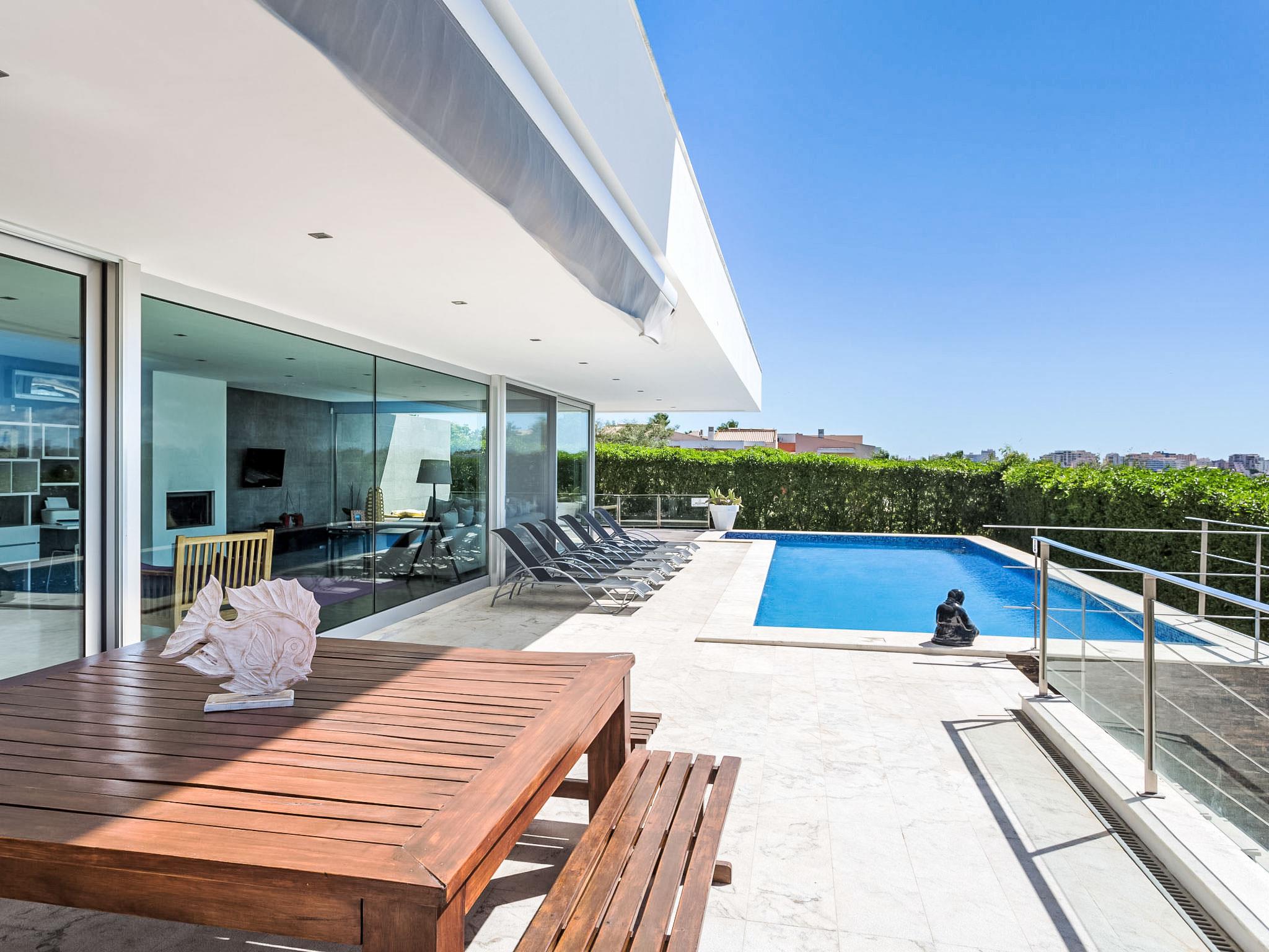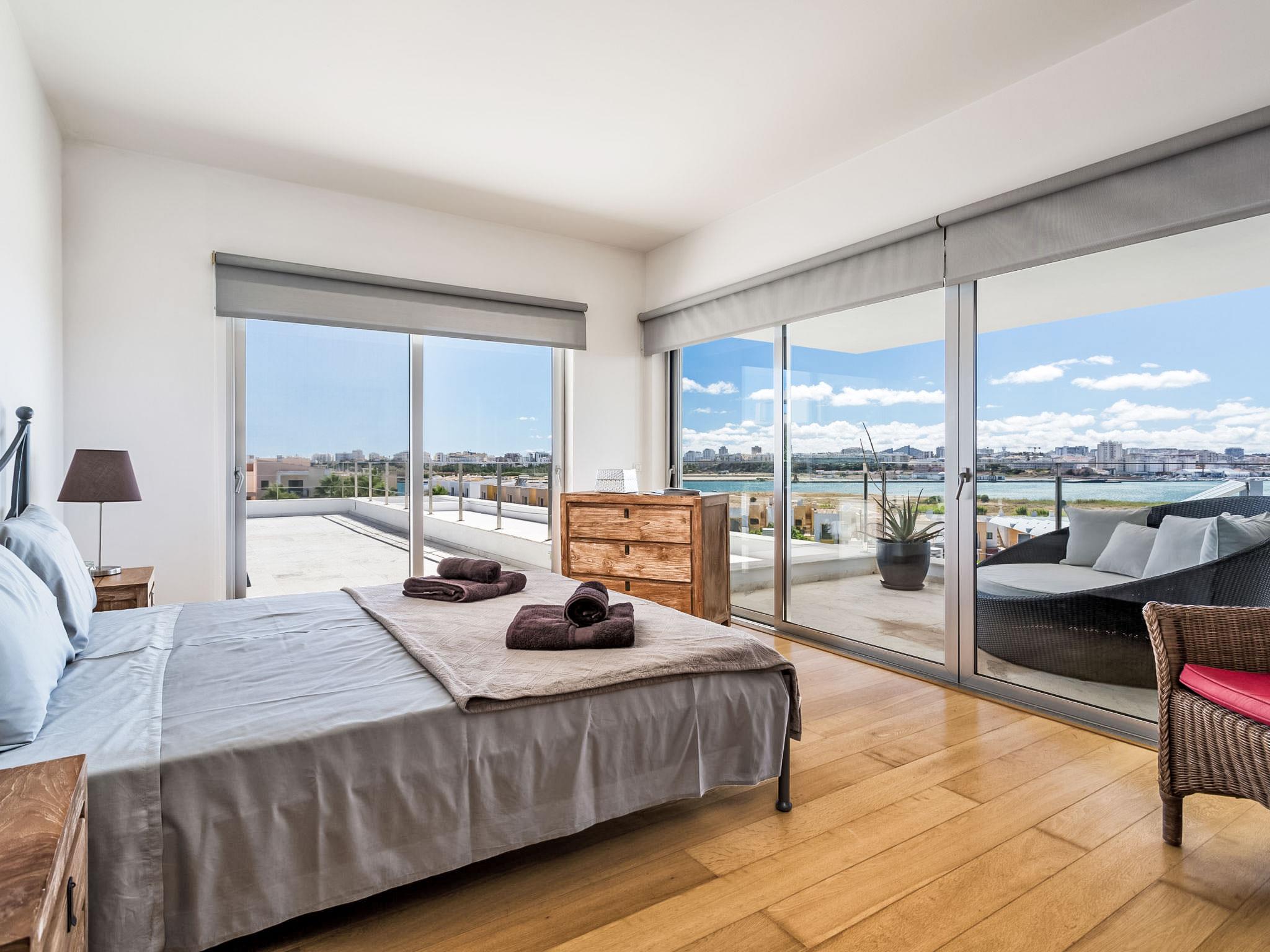 1 km from Ferragudo: Daily cleaning for 3 hours, on Wednesdays there is a pool cleaning service and on Friday afternoons there is gardening. The service from pool heating must be request two days before of the arrival. Very modern, luxurious villa "Vogue", 2 storeys. On top of a hill, residential area (villas), 3.9 km from the sea, 550 m from the lake. Private: garden, swimming pool angular, heated (4 x 12 m, depth 73 - 130 cm, seasonal availability: 01.Jan. - 31.Dec., extra). Arbour, garden furniture, barbecue. In the house: WiFi, burglar alarm system, washing machine, tumble dryer, drying room. Room cleaning daily (included). Parking at the house. Supermarket 1.3 km, shopping centre 3.8 km, restaurant 350 m, bakery 1.3 km, bus stop 450 m, sandy beach "Praia dos Caneiros" 3.9 km. Sports harbour 5.8 km, golf course (18 hole) 5.5 km, surf school 5.8 km, tennis 3.8 km, minigolf 7 km, riding stable 6.9 km. Nearby attractions: Slide & Splash 7 km, Zoomarine Algarve 22.2 km, Museu de Portimão 4.2 km, Portimão 3.7 km, Lagos 23.3 km, Farol da Ponta do Altar, Ferragudo 4.2 km. Hiking paths: Monchique 27.1 km. Please note: car recommended. Suitable for families. Groups of teenagers on request only. On request: airport transfer to the holiday accommodation.