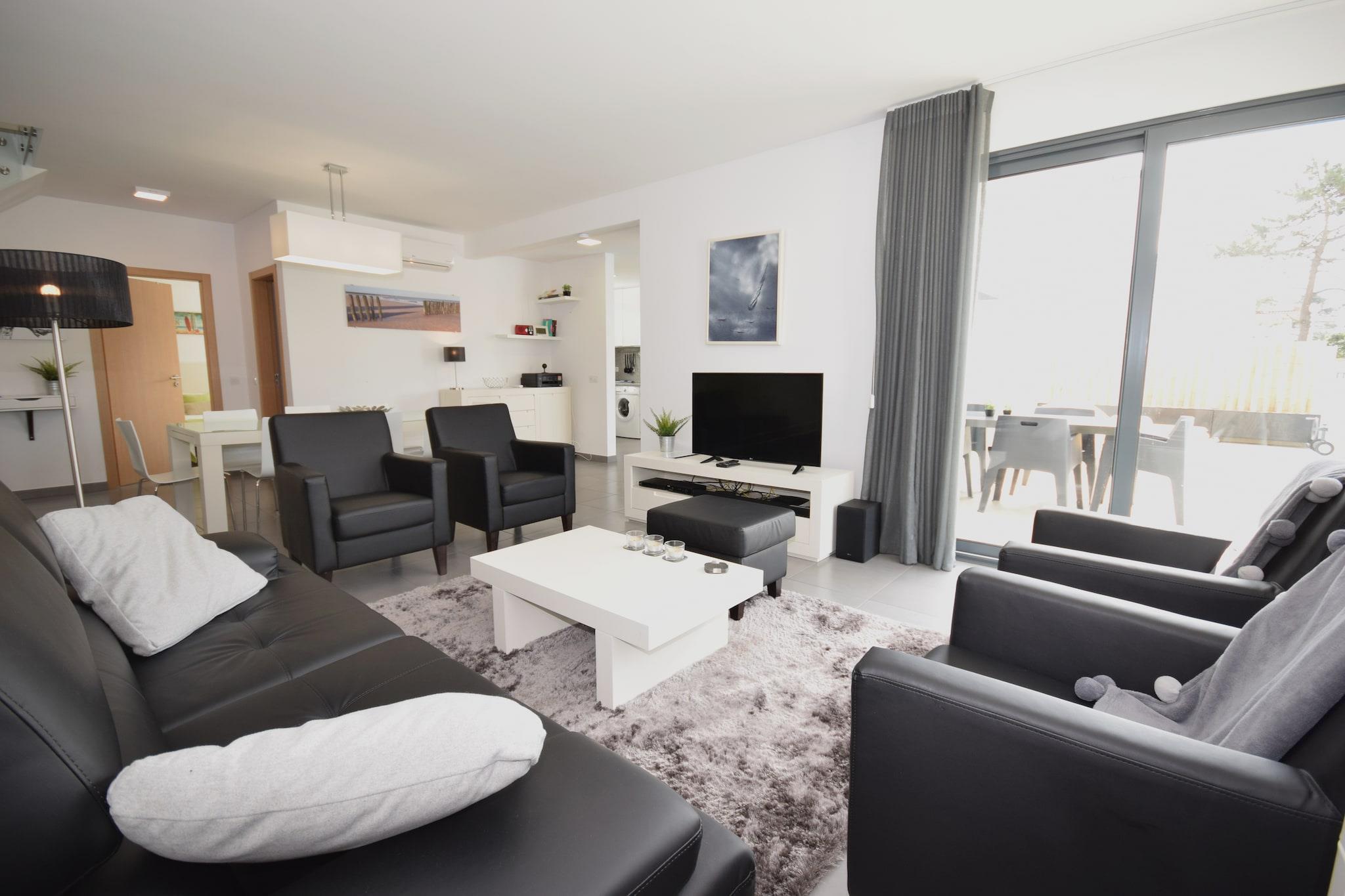 Stueetage: (åbent køkken(kogeplade(Komfur med fire kogeplader, glaskeramisk), elkedel, brødrister, kaffemaskine, ovn, mikrobølgeovn, opvaskemaskine , køle-fryseskab, vaskemaskine), stue / spisestue(Fjernsyn(Internationale TV-kanaler, Ingen hollandske TV-kanaler), spisebord, sofahjørne, klimaanlæg), Soveværelse med badeværelse(2x enkeltseng, badekar med bruser, håndvask, toilet, bidet, klimaanlæg), toilet) På 1. etage: (soveværelse(dobbeltseng, balkon, klimaanlæg), soveværelse(dobbeltseng, balkon, klimaanlæg), badeværelse(bruser, håndvask, toilet), terrasse(30 m2)) terrasse, have(indhegnet), havemøbler, solstole, grill, parkering, Parasol, swimmingpool(privat, 7 x 3 m.), barneseng, barnestol, strygebræt, strygejern