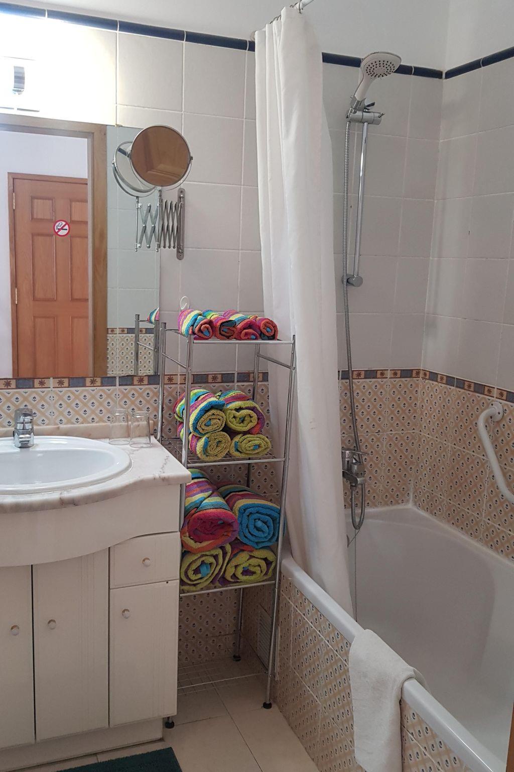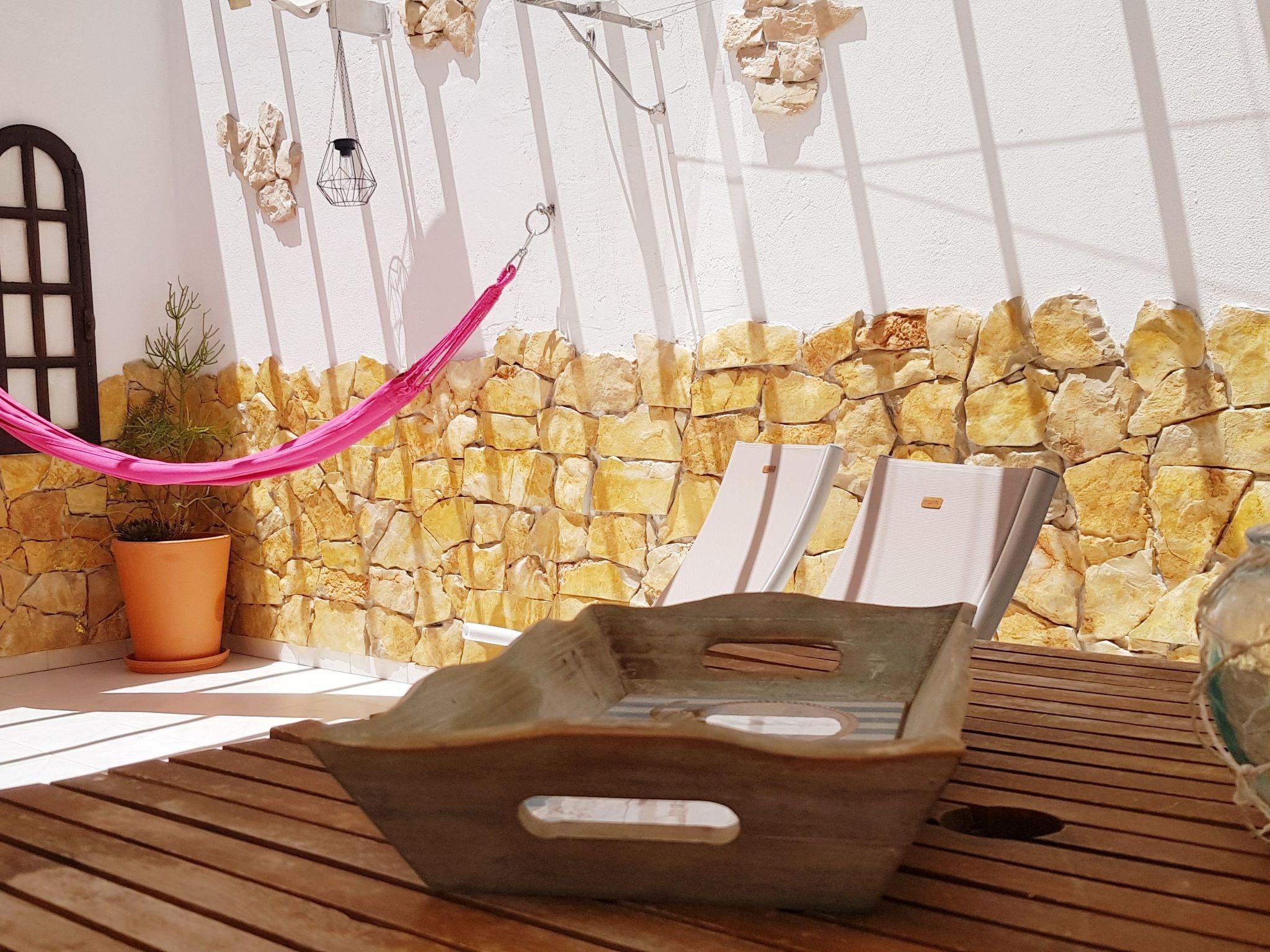 Step outside to discover a 30 sqm courtyard, artfully designed in the typical Algarve patio style. This private outdoor space is an ideal spot for grilling, sunbathing, unwinding, and enjoying the enchanting evenings under a starlit sky. It offers a serene retreat where you can relish the gentle summer breeze and the beauty of your surroundings in privacy.