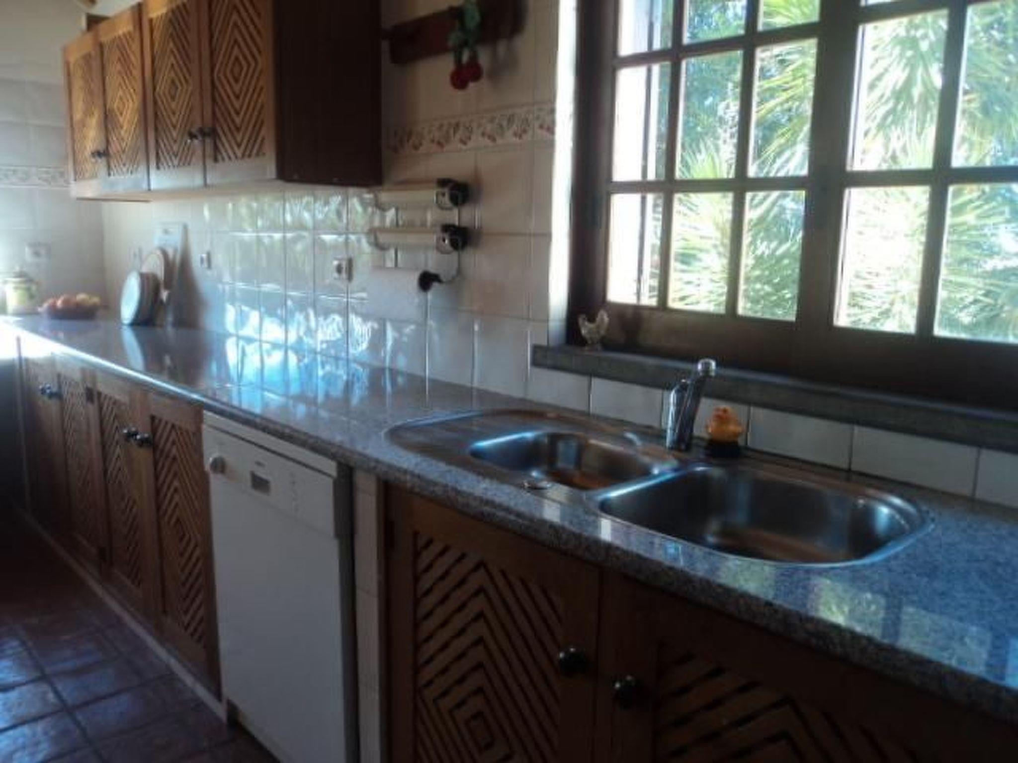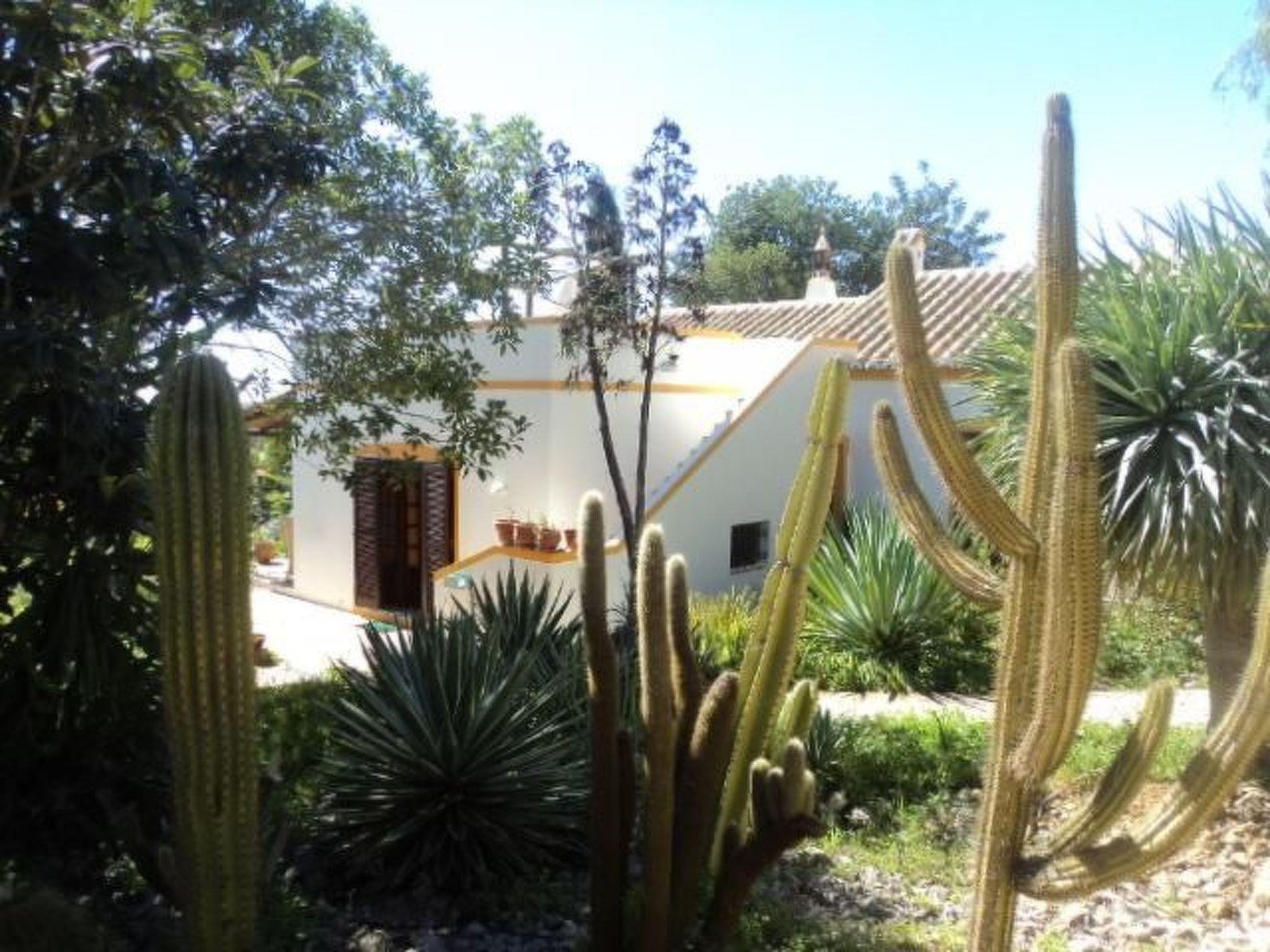 Integrated into a park-like landscape, with own cactus garden and surrounded by a wonderful nature stone wall one will find this holiday house on a hill between the nice towns of Moncarapacho and Estoi. From here you have a wide view across the landscape extending all the way to the ocean.Your holiday house has been built in Portuguese style and in all living areas there are typical St. Catharina tiles. There is a bedroom with double bed and an adjacent bathroom with shower and toilet as well as a room for children. Here three people can comfortably sleep in a single bed and French bed. The bedrooms have spacious wood panelled wardrobes. A further sleep is provided in the living room on a pull-out sofa bed. Furthermore there is a further bathroom with shower, bathtub, toilet and bidet. The living and dining room with fireplace has a spacious layout and next door is the open kitchen with splendid view across the garden and landscape.