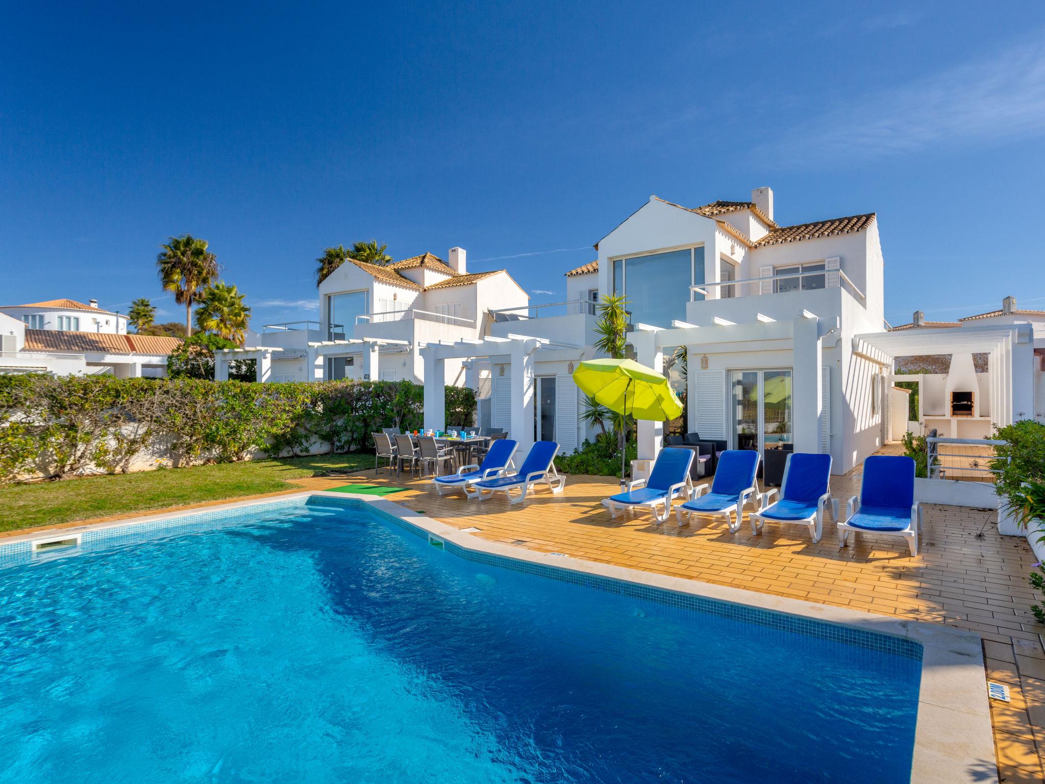 Very cosy, simple, comfortable villa "Villa Blue Ocean". In the district Galé, residential area (villas), 500 m from the sea. Private: beautiful garden to relax, swimming pool angular (5 x 10 m, depth 80 - 180 cm, seasonal availability: 01.Jan. - 31.Dec.). Outdoor shower, barbecue. In the house: WiFi, air conditioning, washing machine. Parking at the house. Shop 270 m, grocery, supermarket 850 m, shopping centre 7.5 km, restaurant 220 m, bar 950 m, bakery, café 900 m, bus stop 450 m, sandy beach "Praia da Galé" 500 m, diving center 5.3 km. Golf course (18 hole) 1.7 km, surf school 900 m, tennis 7.9 km, minigolf 9.1 km, riding stable 2.9 km. Nearby attractions: Albufeira 8 km, Zoomarine 6.9 km, Aqualand 8.1 km, Sand City Fiesa 12.7 km, Marina Albufeira 6.2 km, Club Sport Fishing Boating 5.3 km. Well-known lakes can easily be reached: Lagoa dos Salgados 2.2 km. Hiking paths: Monchique 46.3 km. Please note: car recommended. Suitable for families. Groups of teenagers on request only. Loading and unloading of baggage is possible at the holiday house.
