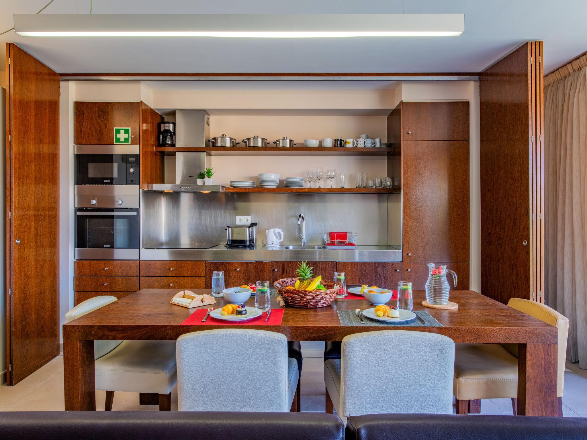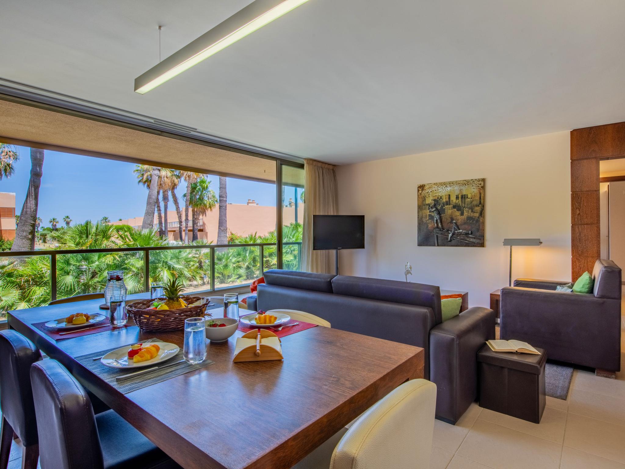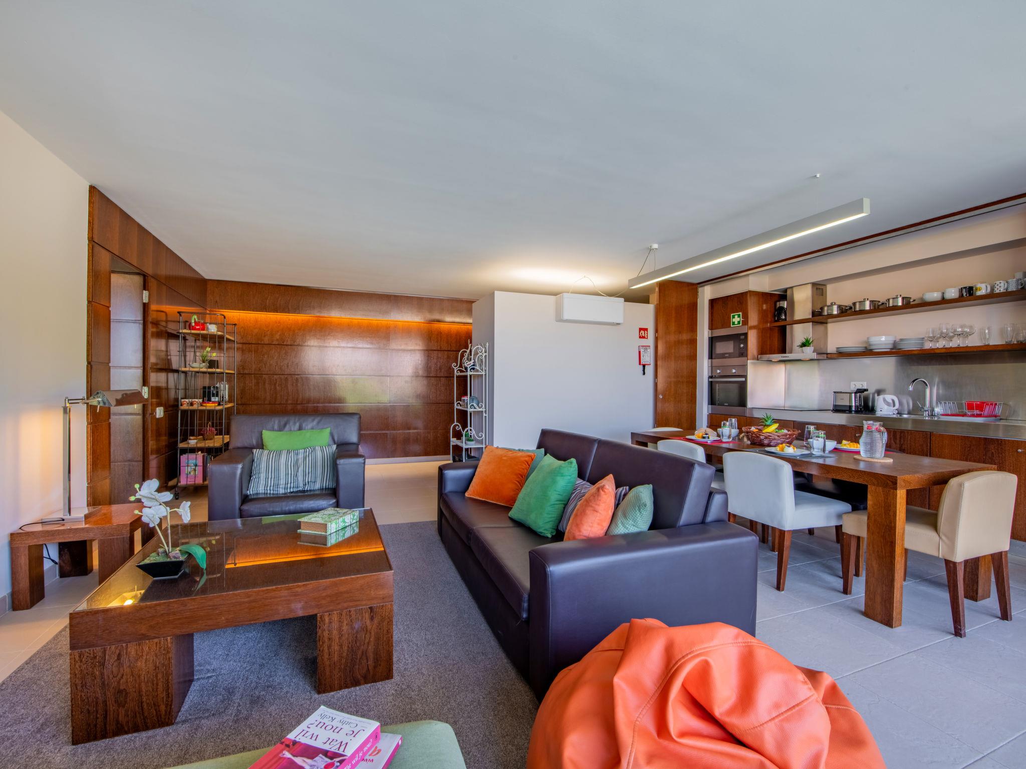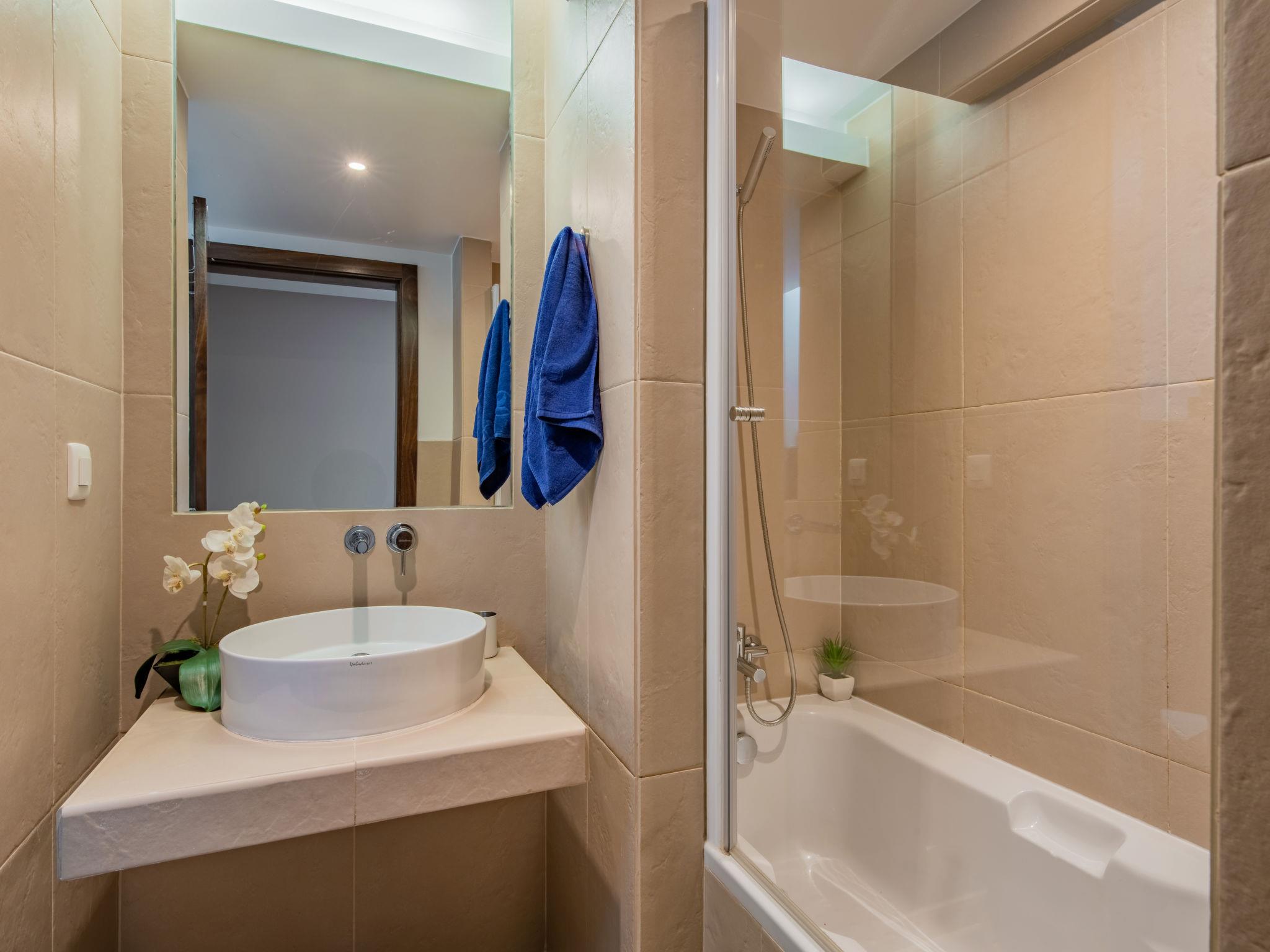 "Algarve Golf & Golden Coast", 3-room apartment 102 m2. Spacious and bright, practical and cosy furnishings: open living/dining room with TV, international TV channels, flat screen, air conditioning and forced-air heating. Exit to the terrace. 1 room with 1 double bed (180 cm, length 200 cm), bath/WC, air conditioning and forced-air heating. Exit to the terrace. 1 room with 2 beds (90 cm, length 190 cm), air conditioning and forced-air heating. Exit to the balcony. Open kitchen (oven, dishwasher, 4 ceramic glass hob hotplates, toaster, kettle, microwave, freezer, electric coffee machine) with air conditioning and forced-air heating. Exit to the terrace. Bath/WC, sep. WC. Large terrace. Terrace furniture. Facilities: washing machine, iron, children's high chair, baby cot for up to 2 year olds, hair dryer. Internet (WiFi, free). Parking space n 5A0A (roofed). Please note: suitable for families. Non-smokers only. Fire extinguisher. 72957/AL