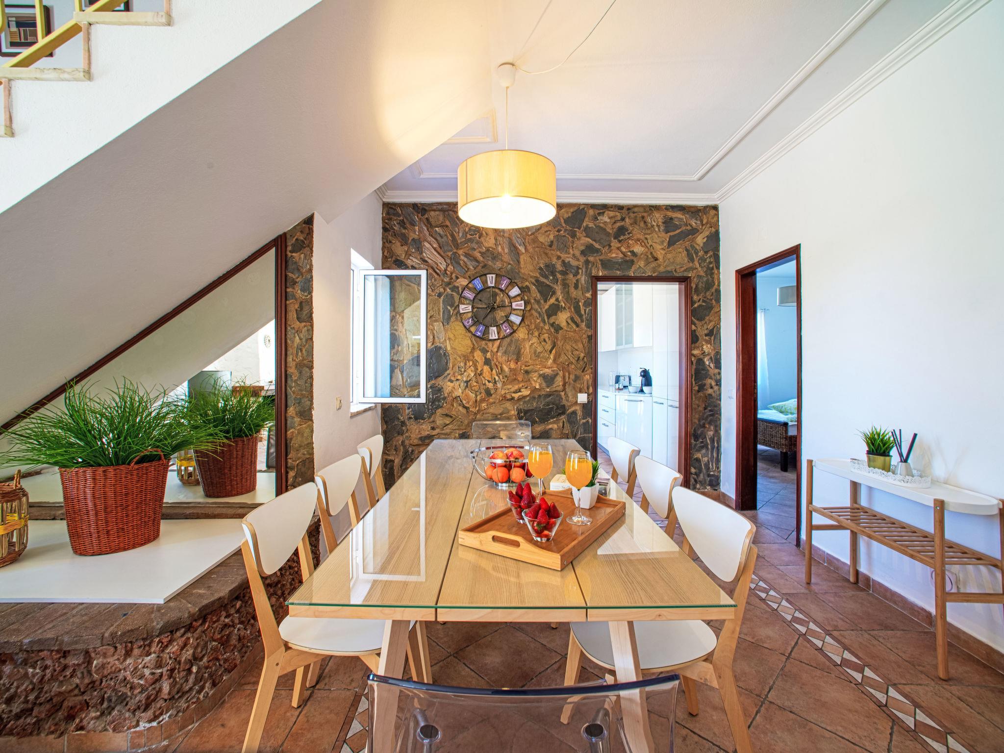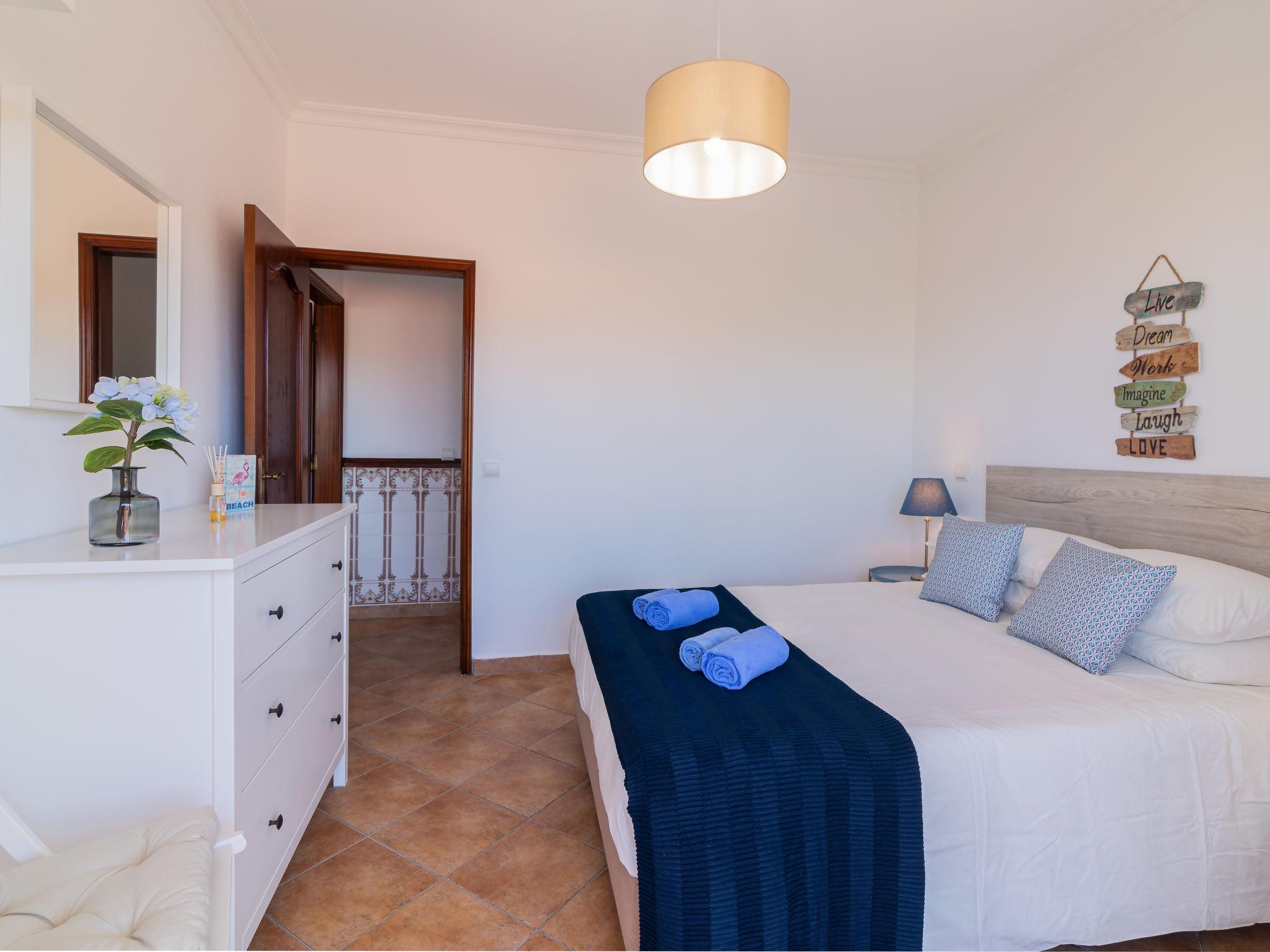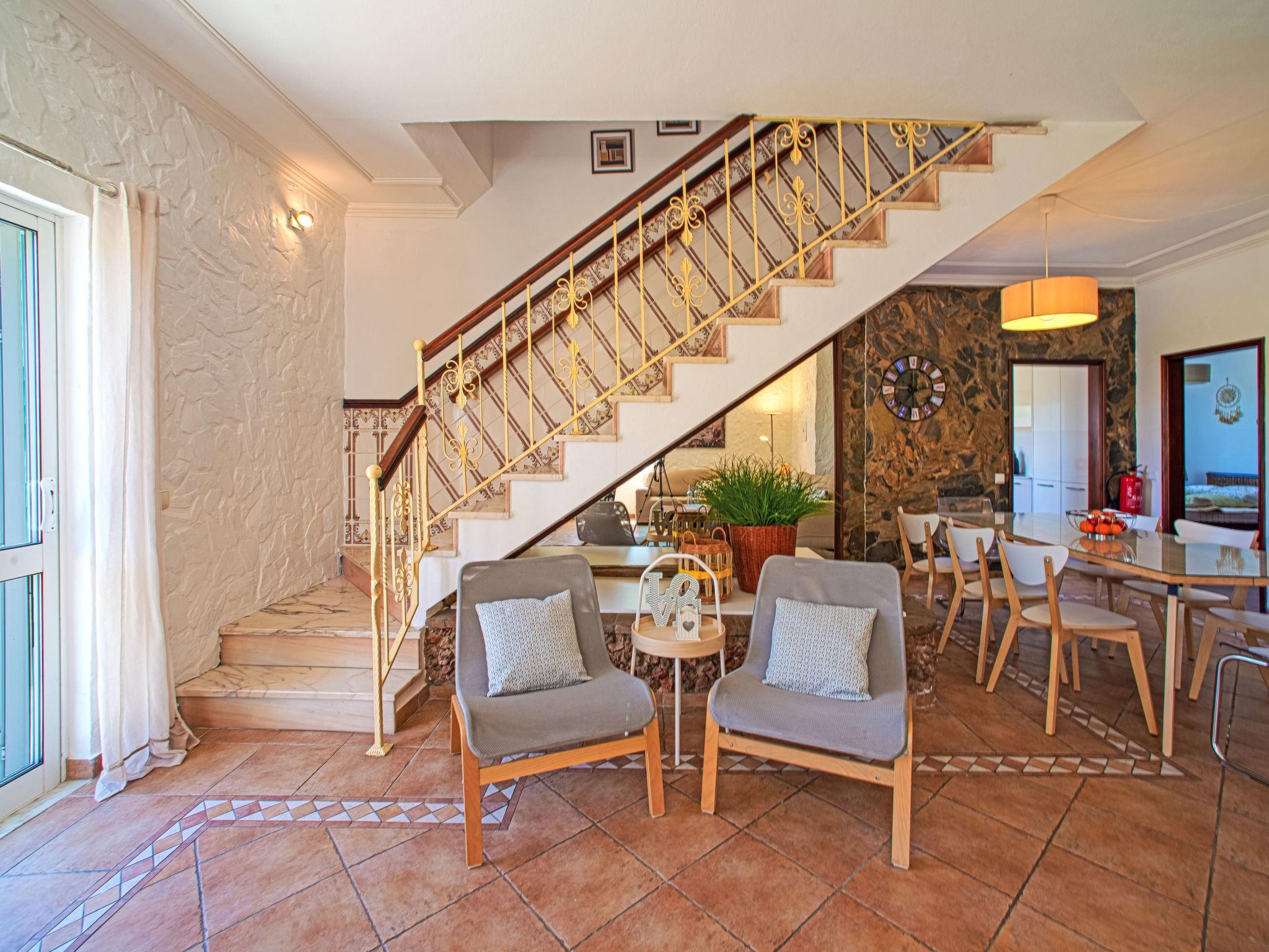 "Casa do Sol", 5-room terraced house 130 m2 on 2 levels. Object suitable for 8 adults. Very practical and cosy furnishings: lounge with dining table, TV, international TV channels, flat screen, air conditioning and forced-air heating. 1 room with 1 french bed (160 cm, length 200 cm), air conditioning and forced-air heating. Kitchen (4 hot plates, oven, dishwasher, toaster, kettle, microwave, freezer, electric coffee machine, Capsules for coffee machine (Dolce Gusto not incl)). Exit to the terrace. Shower/WC. Upper floor: 1 room with 1 french bed (160 cm, length 200 cm), air conditioning and forced-air heating. 1 room with 1 french bed (160 cm, length 200 cm), air conditioning and forced-air heating. 1 room with 1 french bed (180 cm, length 200 cm), air conditioning and forced-air heating. Exit to the balcony. Shower/WC. Terrace furniture, barbecue. View of the countryside. Facilities: washing machine, iron, children's high chair, baby cot for up to 2 year olds, hair dryer. Internet (WiFi). Parking at the house. Please note: suitable for families. Non-smoking house. Fire extinguisher. 99359/AL