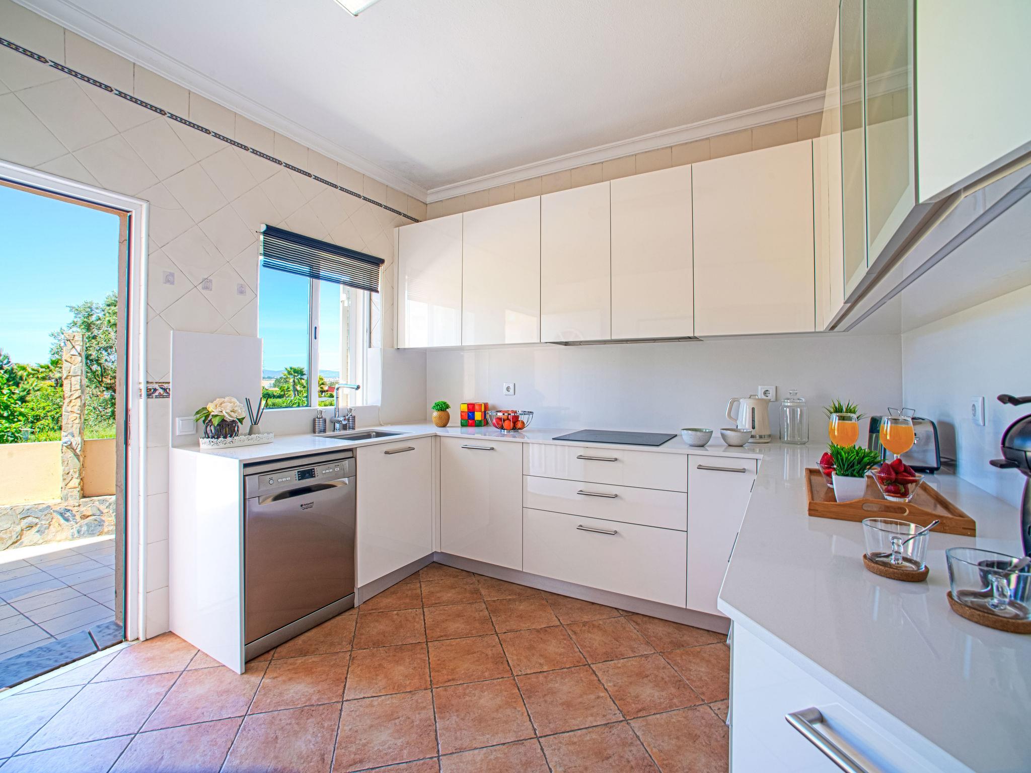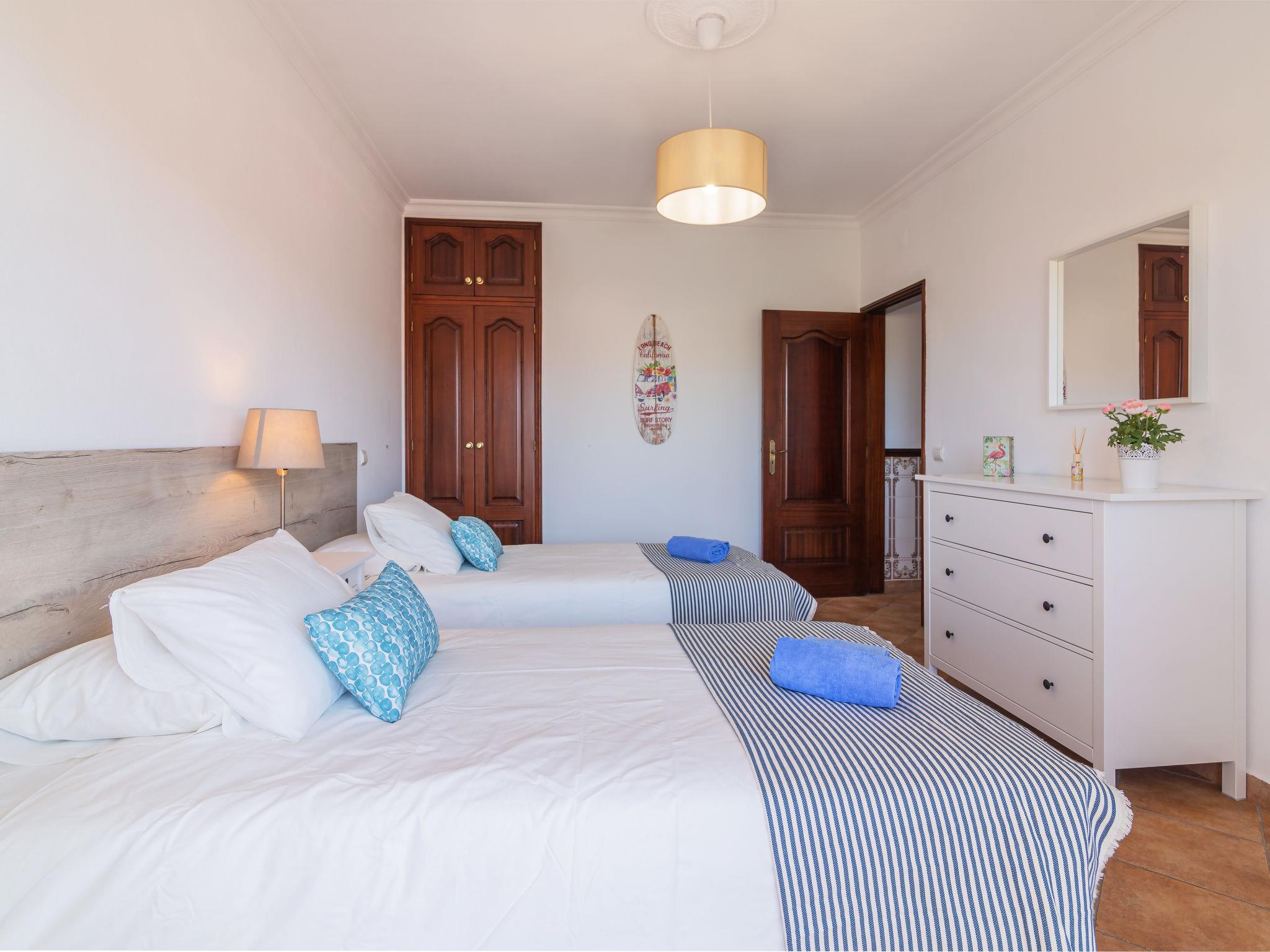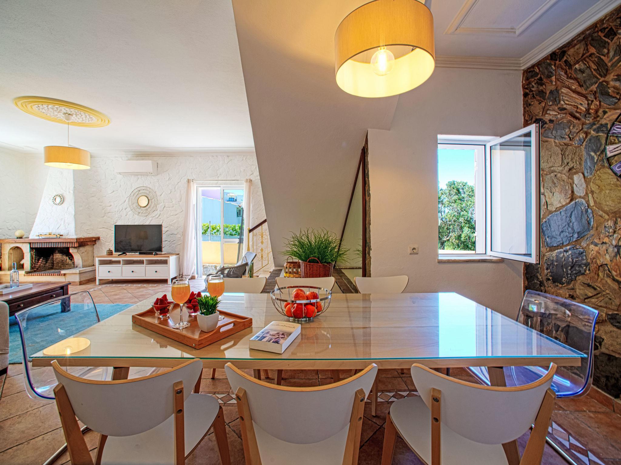 "Casa do Sol", 5-room terraced house 130 m2 on 2 levels. Object suitable for 8 adults. Very practical and cosy furnishings: lounge with dining table, TV, international TV channels, flat screen, air conditioning and forced-air heating. 1 room with 1 french bed (160 cm, length 200 cm), air conditioning and forced-air heating. Kitchen (4 hot plates, oven, dishwasher, toaster, kettle, microwave, freezer, electric coffee machine, Capsules for coffee machine (Dolce Gusto not incl)). Exit to the terrace. Shower/WC. Upper floor: 1 room with 1 french bed (160 cm, length 200 cm), air conditioning and forced-air heating. 1 room with 1 french bed (160 cm, length 200 cm), air conditioning and forced-air heating. 1 room with 1 french bed (180 cm, length 200 cm), air conditioning and forced-air heating. Exit to the balcony. Shower/WC. Terrace furniture, barbecue. View of the countryside. Facilities: washing machine, iron, children's high chair, baby cot for up to 2 year olds, hair dryer. Internet (WiFi). Parking at the house. Please note: suitable for families. Non-smoking house. Fire extinguisher. 99359/AL
