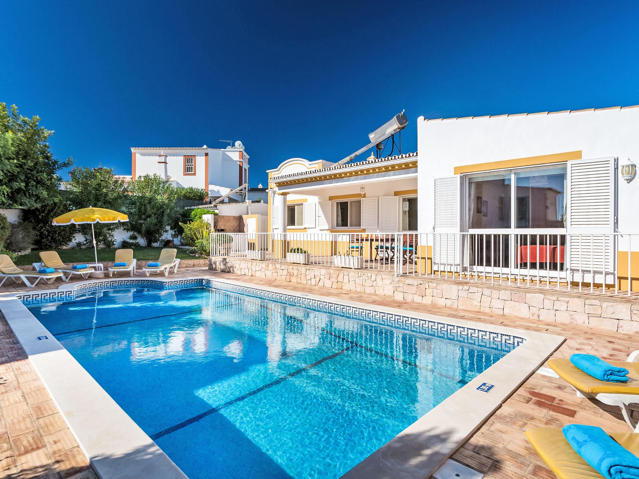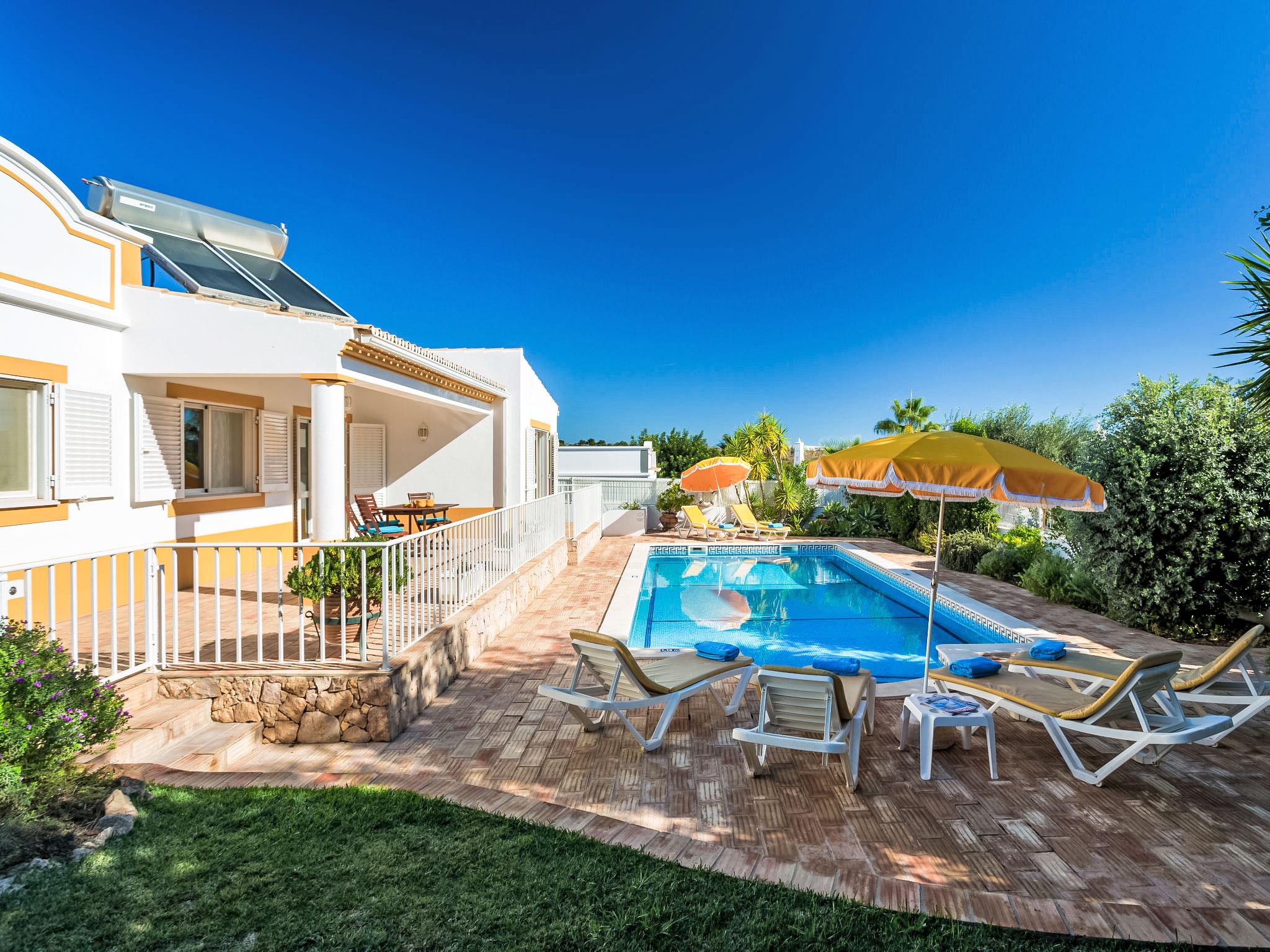 Cosy, comfortable villa "Natura", detached. Outside the resort Guia, residential area (villas), 7.1 km from the sea. Private: natural state property 646 m2 (fenced), wildlife garden, swimming pool angular, fenced (4 x 9 m, depth 115 - 190 cm, seasonal availability: 01.Jan. - 31.Dec.). Outdoor shower, table tennis, barbecue, parking at the house. Supermarket 2.7 km, shopping centre 2.7 km, restaurant 1.3 km, bakery 2.7 km, pub garden 6.8 km, bus stop 750 m, sandy beach "Praia da Galé" 7.1 km. Marina 7.7 km, golf course (18 hole) 6.3 km, surf school 6.8 km. Nearby attractions: Zoomarine 7.6 km, Fiesa 6 km, Aqualand 8.6 km, Krazy World 9.5 km, Slide & Splash 27.8 km, Albufeira 8.2 km. Hiking paths: Monchique 46.1 km. Please note: car recommended. Suitable for families. Object suitable for 6 adults groups of teenagers on request only. Loading and unloading of baggage is possible at the holiday house.