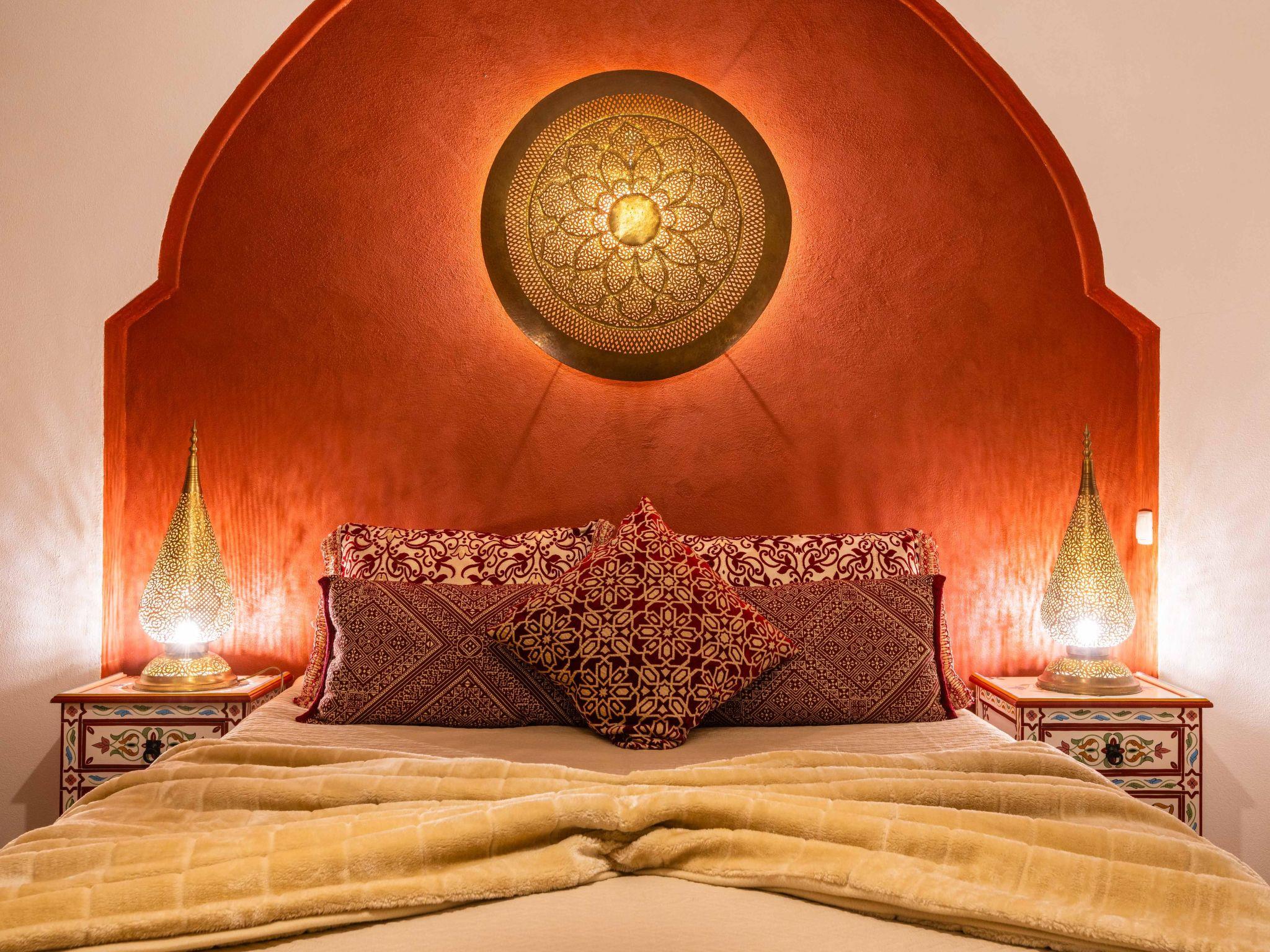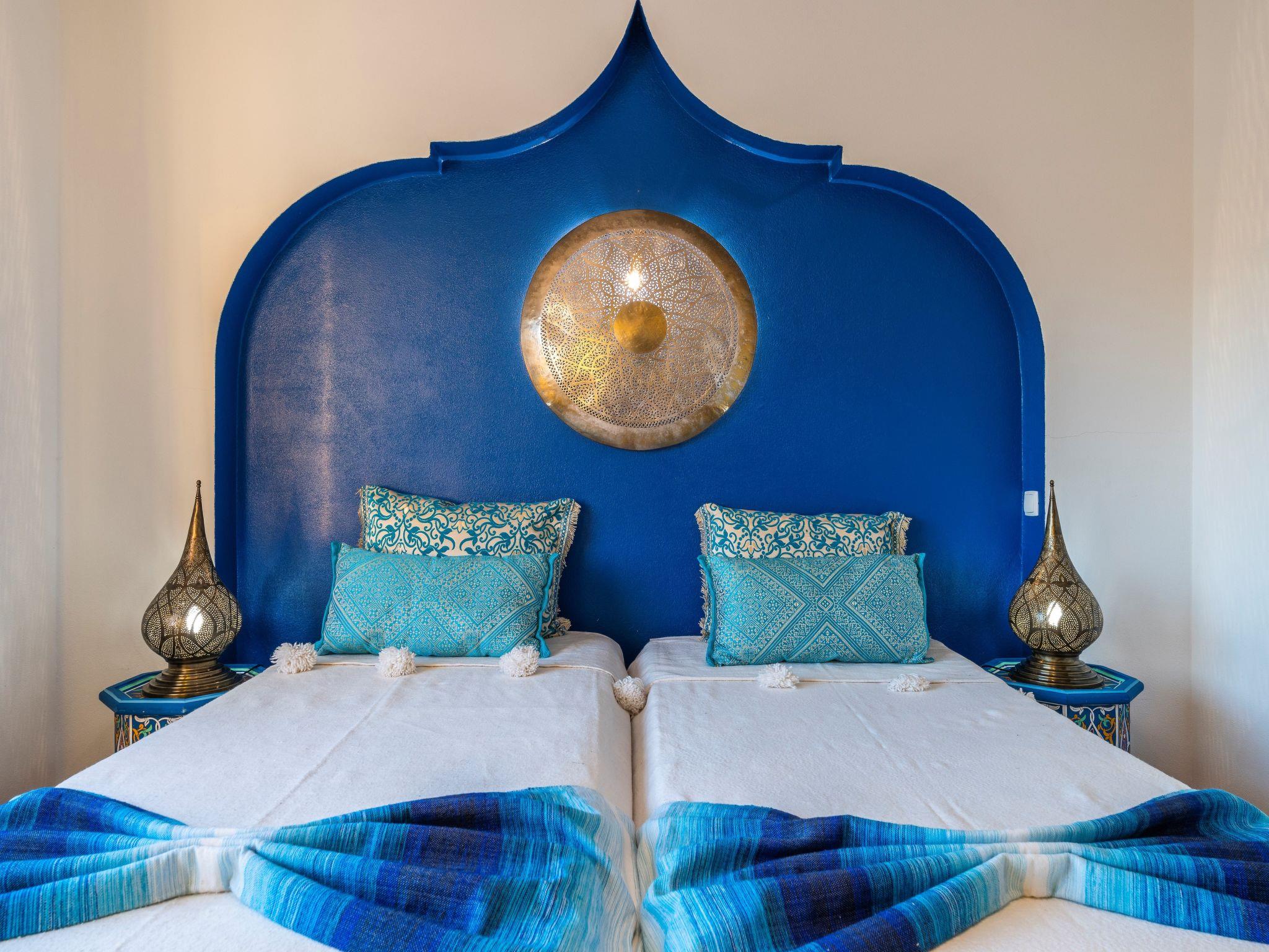 There are 5 bedrooms, all with air conditioning, 3 full bathrooms inside (1 en suite in the attic), 1 bathroom with washbasin and WC inside and 1 outside next to the pool. The kitchen is fully equipped with a washing machine, dishwasher, 2 fridges and freezers, microwave, oven, coffee machine and kettle. Free Wi-Fi is available throughout the villa. Other luxuries: - Take advantage of the thermal pool cover, which keeps the water at an excellent temperature - Walk to the nearest beach in just 5 minutes - Ask for help booking an airport transfer to the villa - Benefit from cotton sheets and towels - Enjoy unique decor straight from Marrakech - Watch your shows on the high-definition Smart TV with satellite channels - Have your meals in the lounge or in front of the pool - Use the private outdoor barbecue.