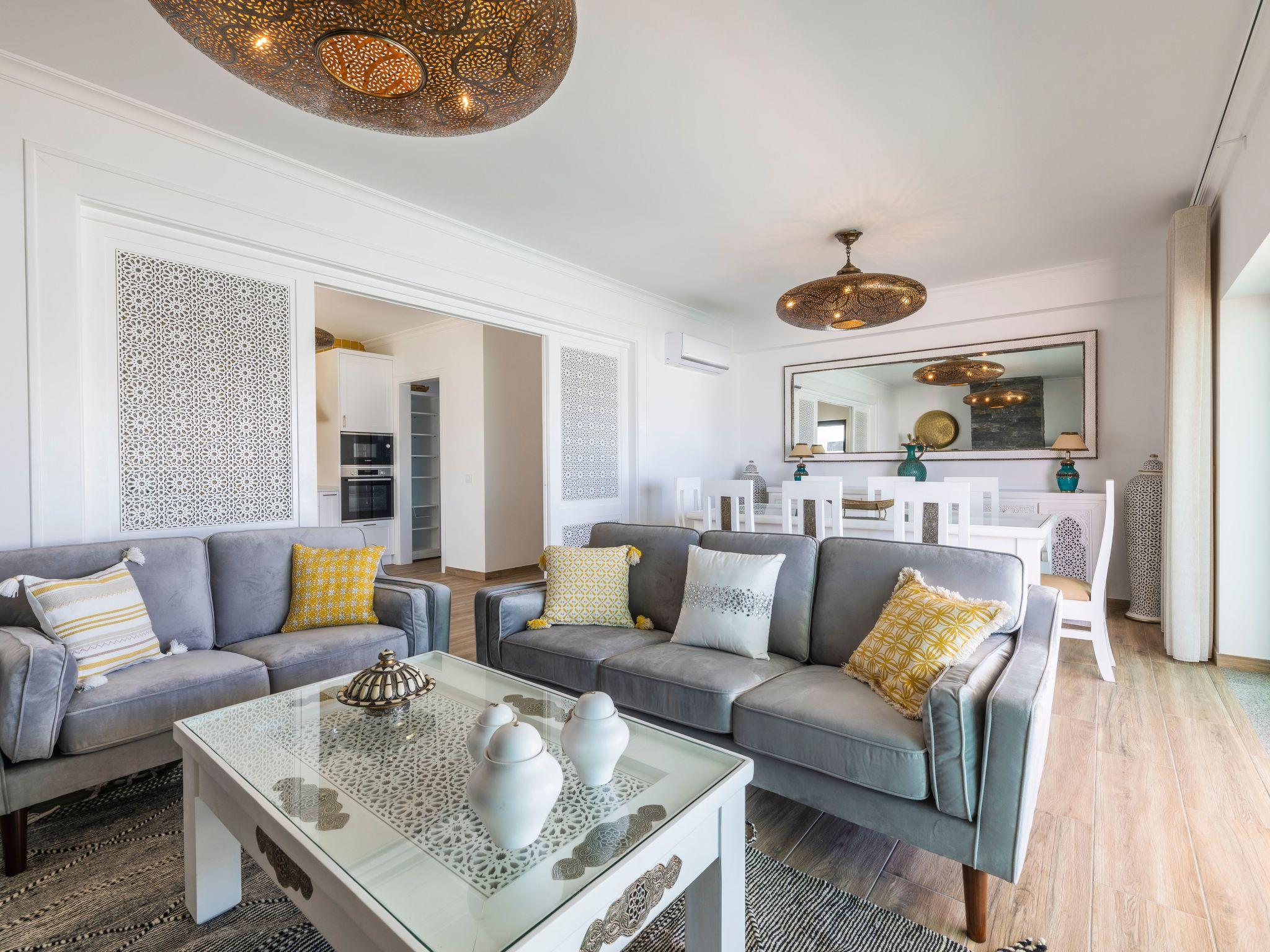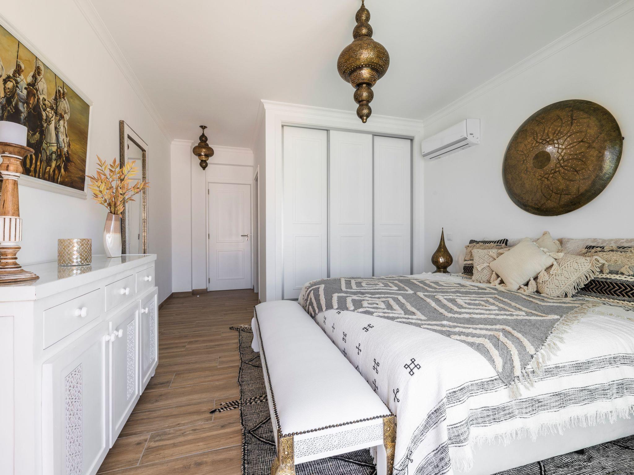 This Villa’s modern design was inspired by the Moroccan architecture and its warm colors and offers wonderful details with comfortable furnishings throughout. A swimming pool and a traditional Berber relaxing pouffe area will be appreciated and help ensure an unforgettable visit to Gale, a premium location in Albufeira!The Villa is rigorously cleaned and sanitised before and after your stay using professional grade/hospital grade cleaners, which is in line with the Portuguese government “Clean and Safe” 2021 cleaning rules and the new European Tourism Covid-19 Safety seal.Each of the 4 bedrooms have their own bathroom, luxury beds, linens and towels. The kitchen is fully equipped with washing machine, dishwasher, fridge + freezer, microwave, oven, coffee machine and kettle. You will also have access to free Wi-Fi.- Enjoy the pool's thermal cover that keeps the water at an excellent temperature- Walk to the nearest beach in just 5 minutes- Ask for support to book an airport transfer to the Villa- Take advantage of the cotton bed linen and towels- Enjoy a unique decoration directly from Marrakech- Watch your shows on the high definition Smart TV with satellite channels- Have your meals in the living room or in front of the pool- Use the private outdoor barbecue