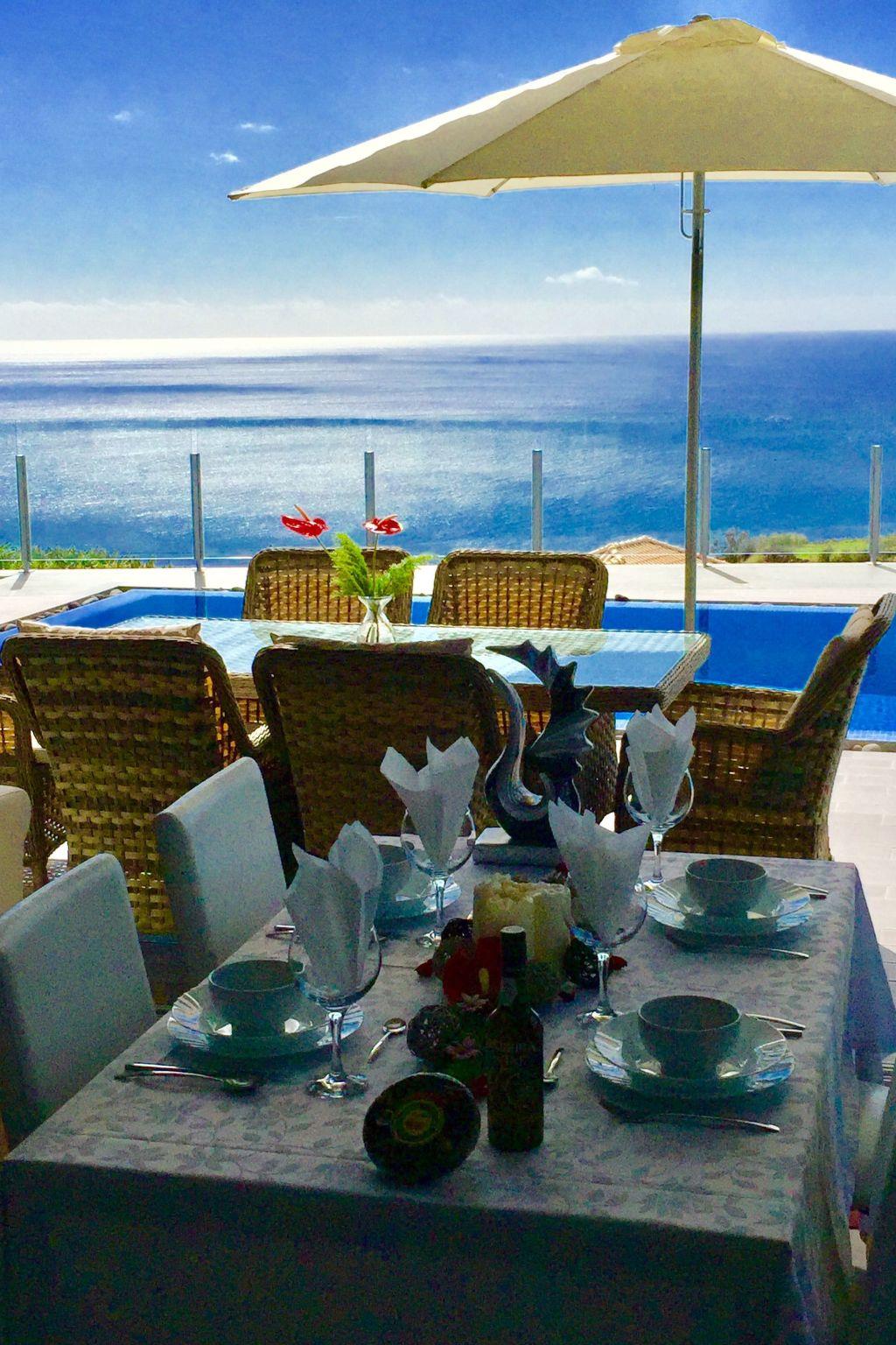 The outdoor area of this holiday house is truly remarkable, designed to provide maximum enjoyment of the sunny Madeiran climate. The center-piece is the heated outdoor pool, offering panoramic sea views and ample sunbathing space for a rejuvenating experience. Surrounding the house, a lush grass garden invites leisurely strolls or simply a peaceful spot to relish the serene atmosphere. Complete with BBQ equipment, the terrace is the perfect setting for memorable gatherings under the sky.