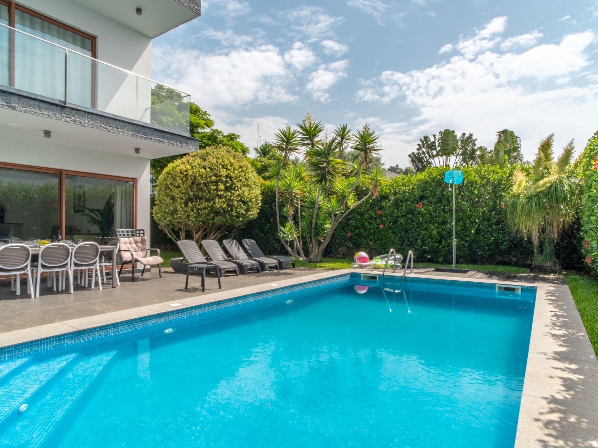 Large modern luxury villa with pool and sea view The climate is the whole year very warm and sunny. Outside the house, there is a beautiful garden with lawn and tropical plants and a delightful swimming pool with built-in wooden terrace.