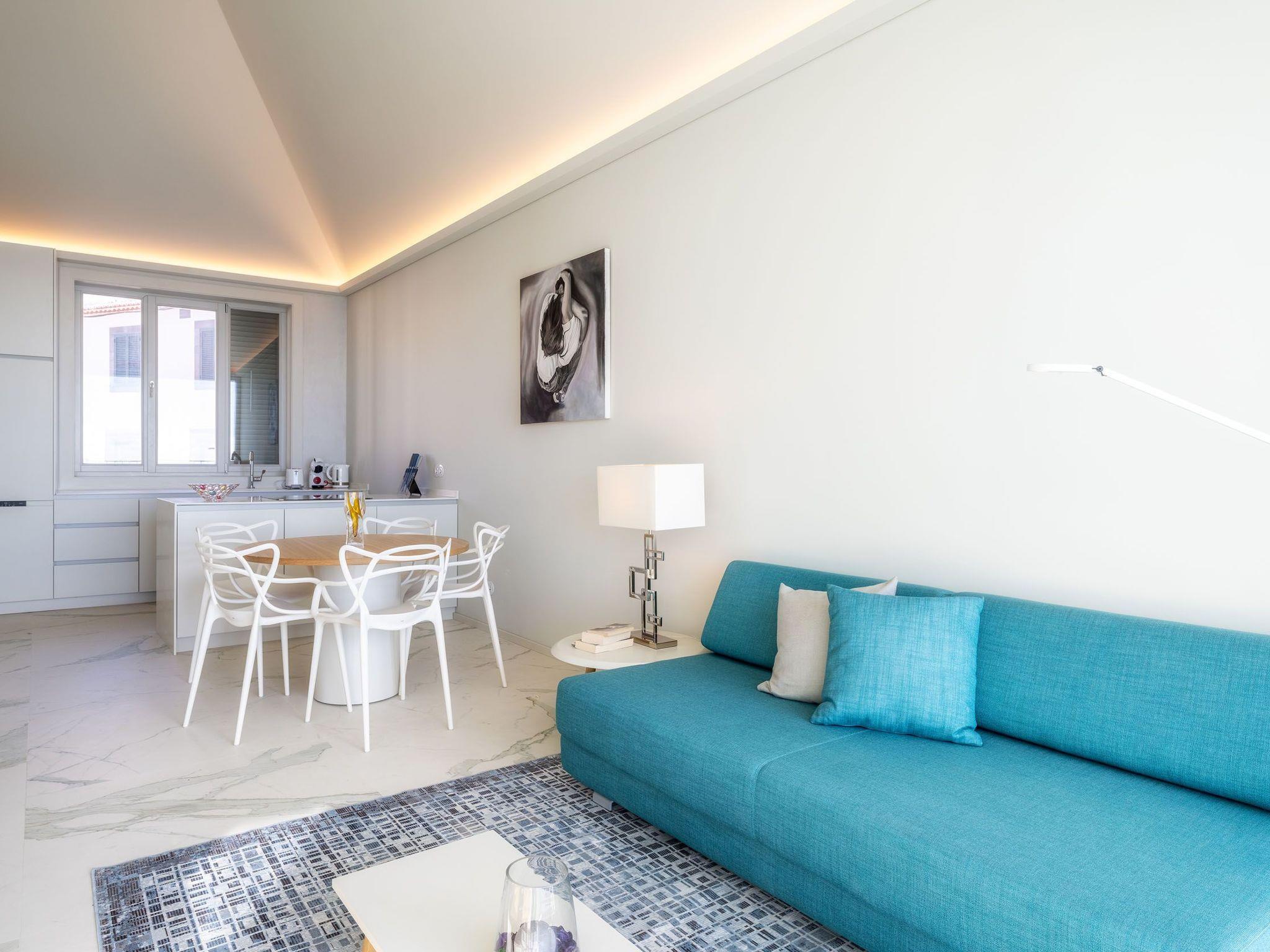 Outside is the “catchy” place. The spacious balcony offers the best in a luxury vacation with a spectacular view to the sea and a space to sunbathe.