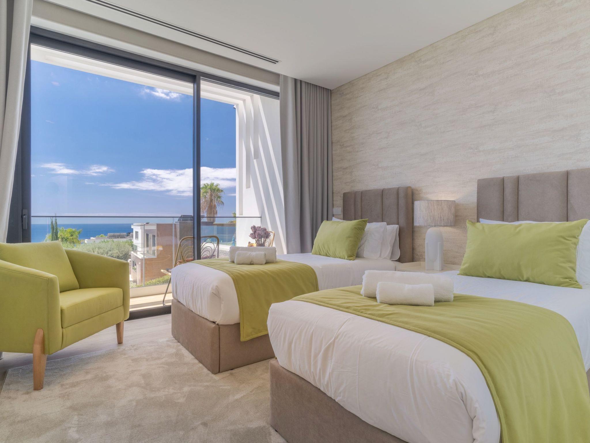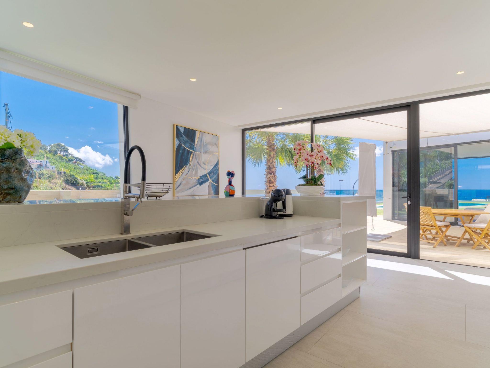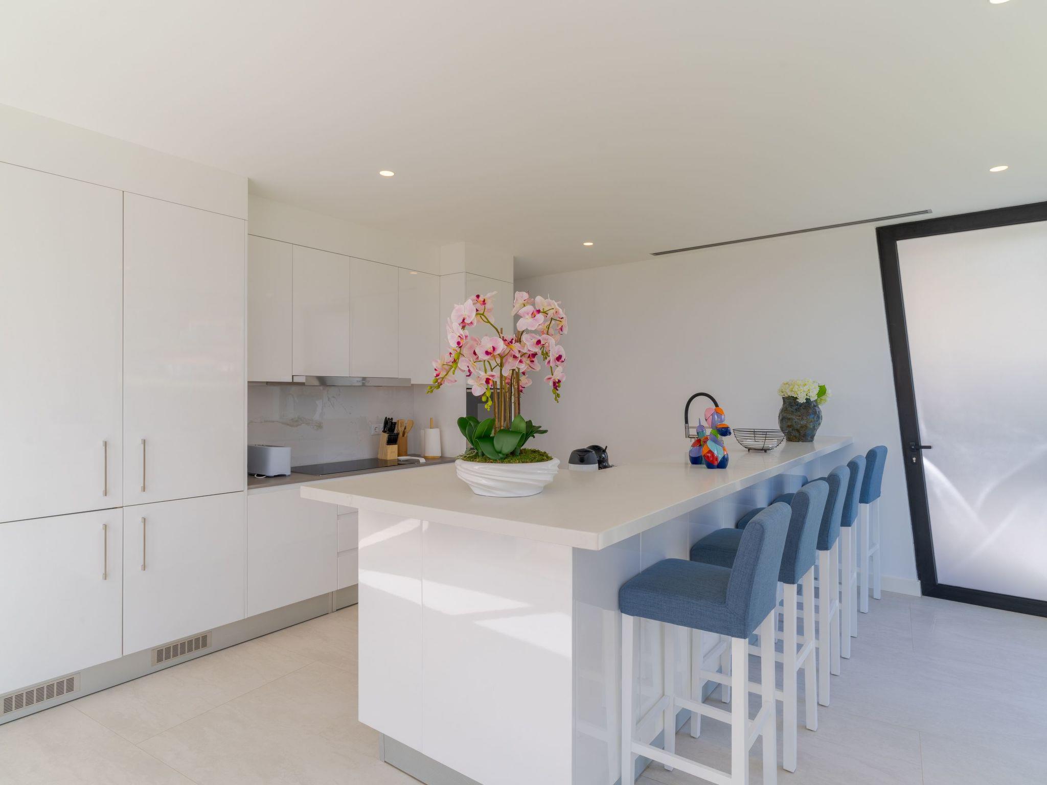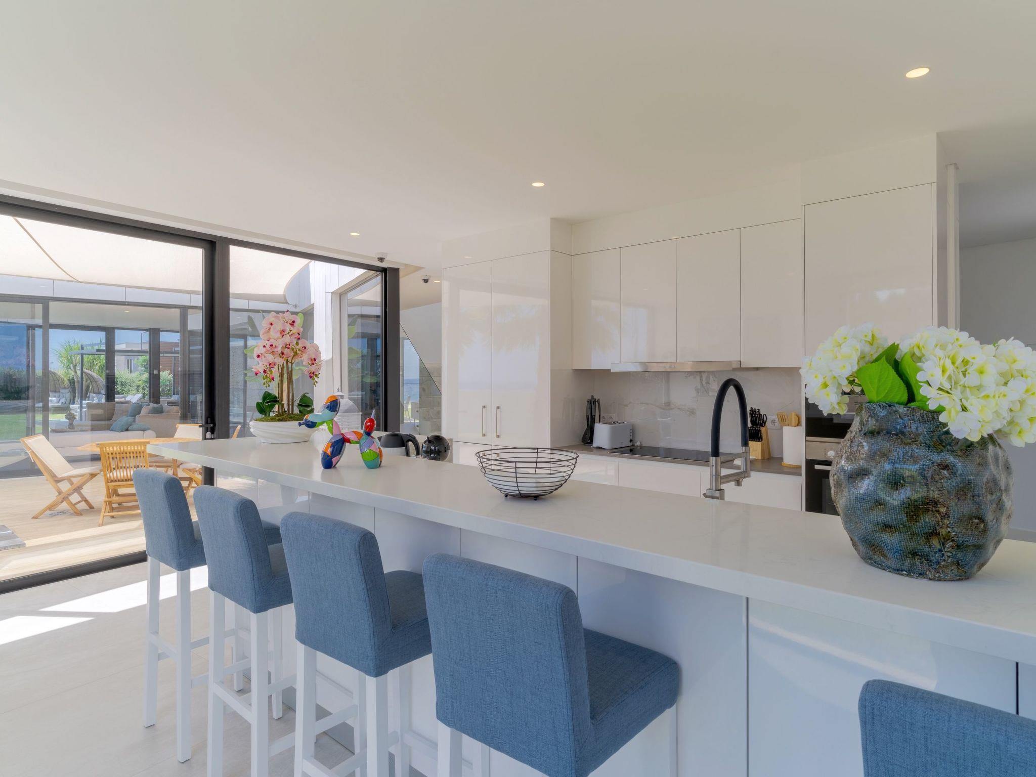 Stepping inside Diamond House unveils an interior of unparalleled comfort and refinement. The residence boasts four en-suite bedrooms, each a sanctuary of tranquility with lavish amenities and striking sea views. The master suite, a pinnacle of indulgence, features a luxurious shower and bathtub, ensuring a serene retreat. The living room, the heart of the home, radiates with natural light and offers panoramic views of the sea, creating a perfect setting for relaxation and contemplation. Furthermore, the gourmet kitchen, outfitted with top-of-the-line Bosch appliances and boasting unique sea views, provides an unmatched culinary experience. Stone countertops not only elevate the kitchen's elegance but also offer a practical workspace for delightful meal preparations.