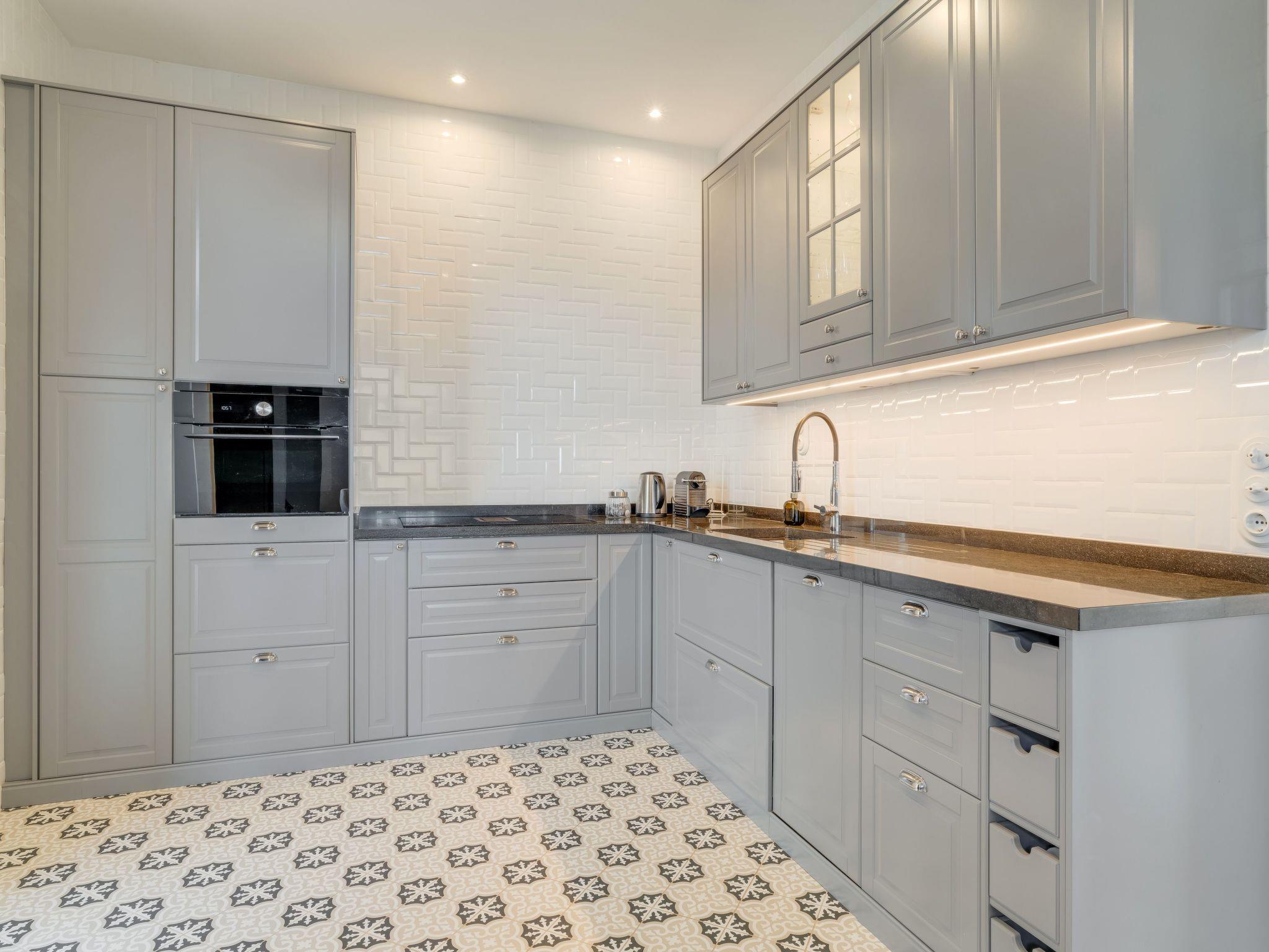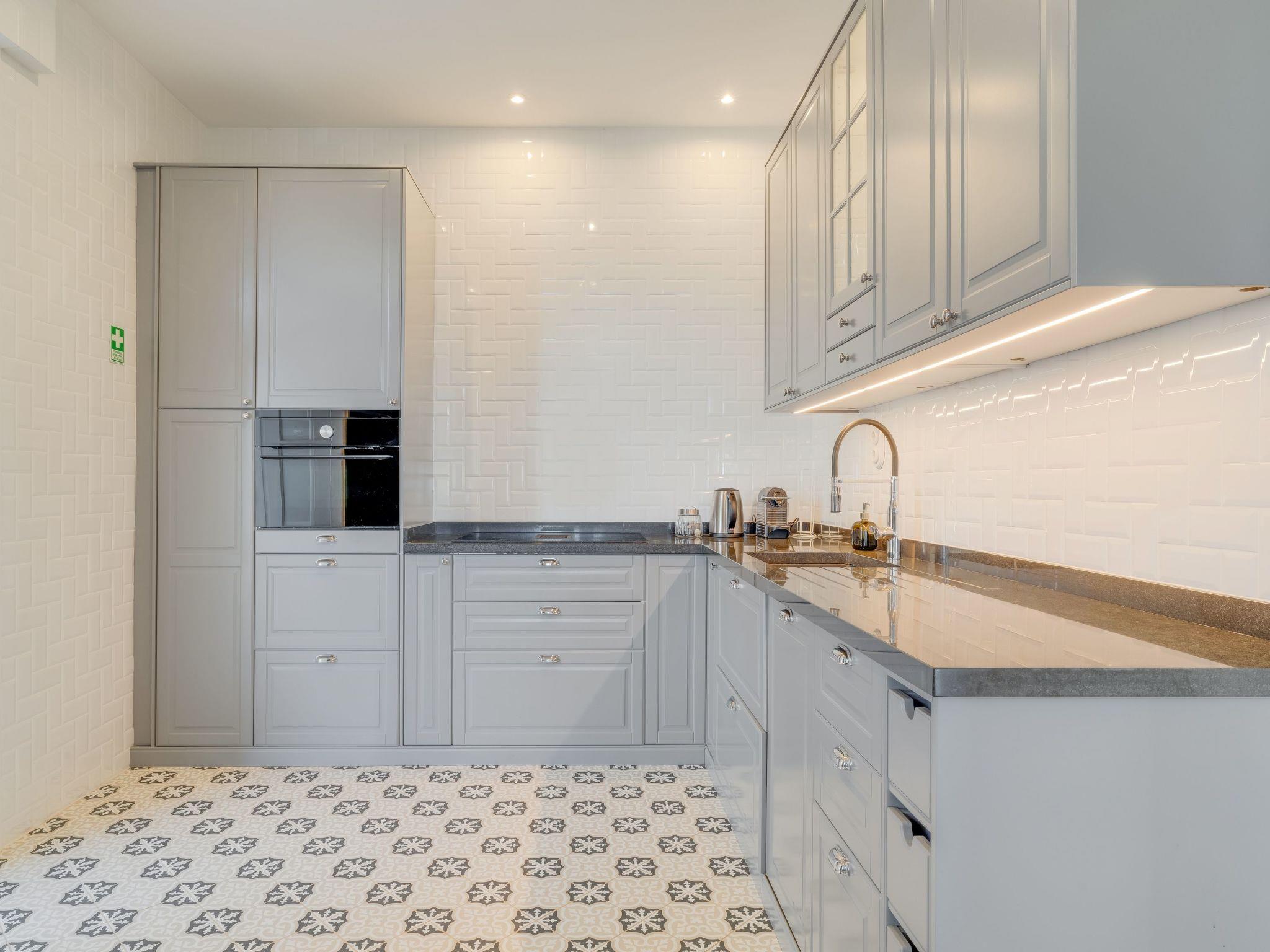 The living room, illuminated by natural light that enters through the large windows, is the ideal space to relax. With a comfortable sofa, it is the perfect place to enjoy a read or a relaxed conversation. The kitchen, equipped with modern appliances, maintains a rustic feel with wooden cabinets and colorful tiles