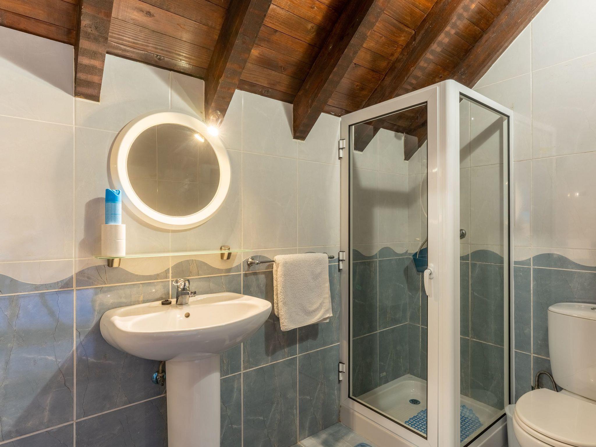 Inside, the cottage is thoughtfully equipped for your comfort and convenience. It features two cozy bedrooms on the first floor; one with a double bed that opens onto a terrace, offering a peaceful spot for morning tea, and another with two single beds, making it well-suited for a party of four. The home comes complete with two bathrooms; a ground floor family shower room equipped with a washbasin, toilet, and a walk-in shower, ensures that guests have ample facilities. The inclusion of a washing machine for the sole use within the object, along with a dishwasher and an electric kettle, add a touch of home comfort to this charming getaway.