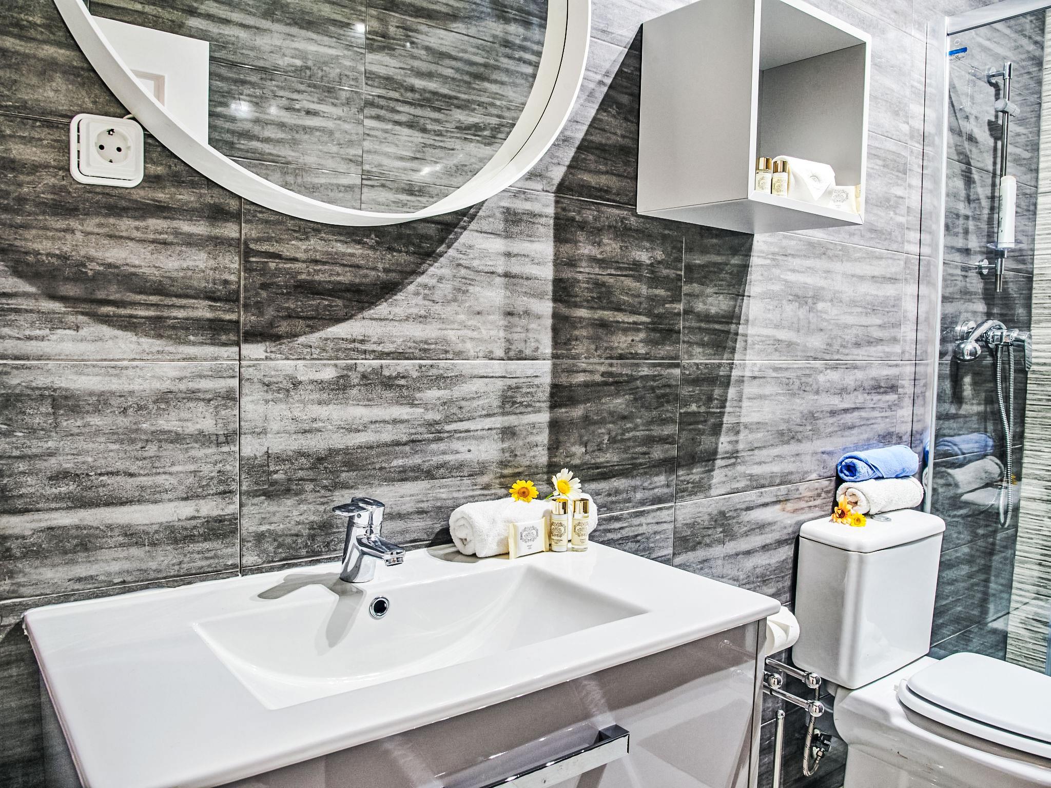 "Studio Mafra", 1-room studio 42 m2. Renovated in 2018, modern and cosy furnishings: living/sleeping room with 1 french bed and TV (flat screen). Kitchenette (oven, dishwasher, 4 ceramic glass hob hotplates, microwave, electric coffee machine). Shower/WC. No heating option. Facilities: baby cot for up to 3 year olds. Internet (WiFi). 69562/AL