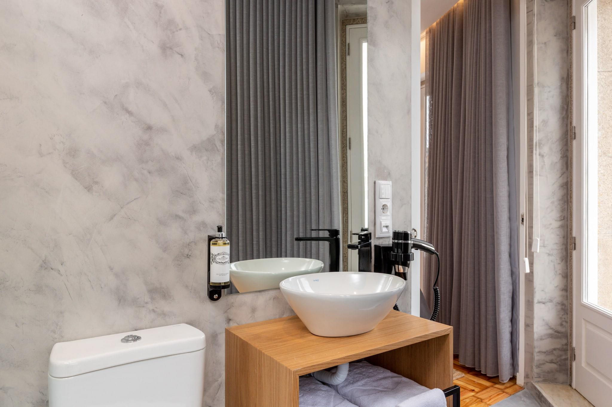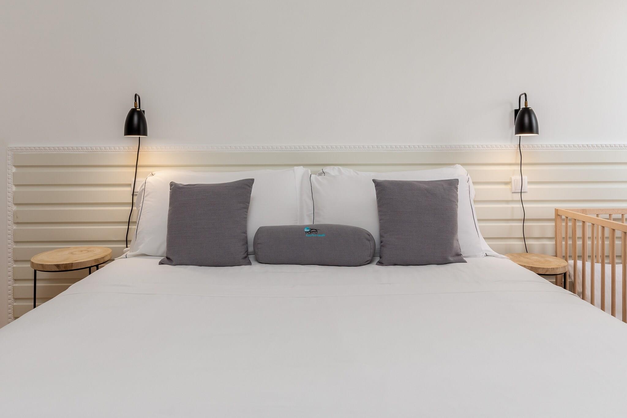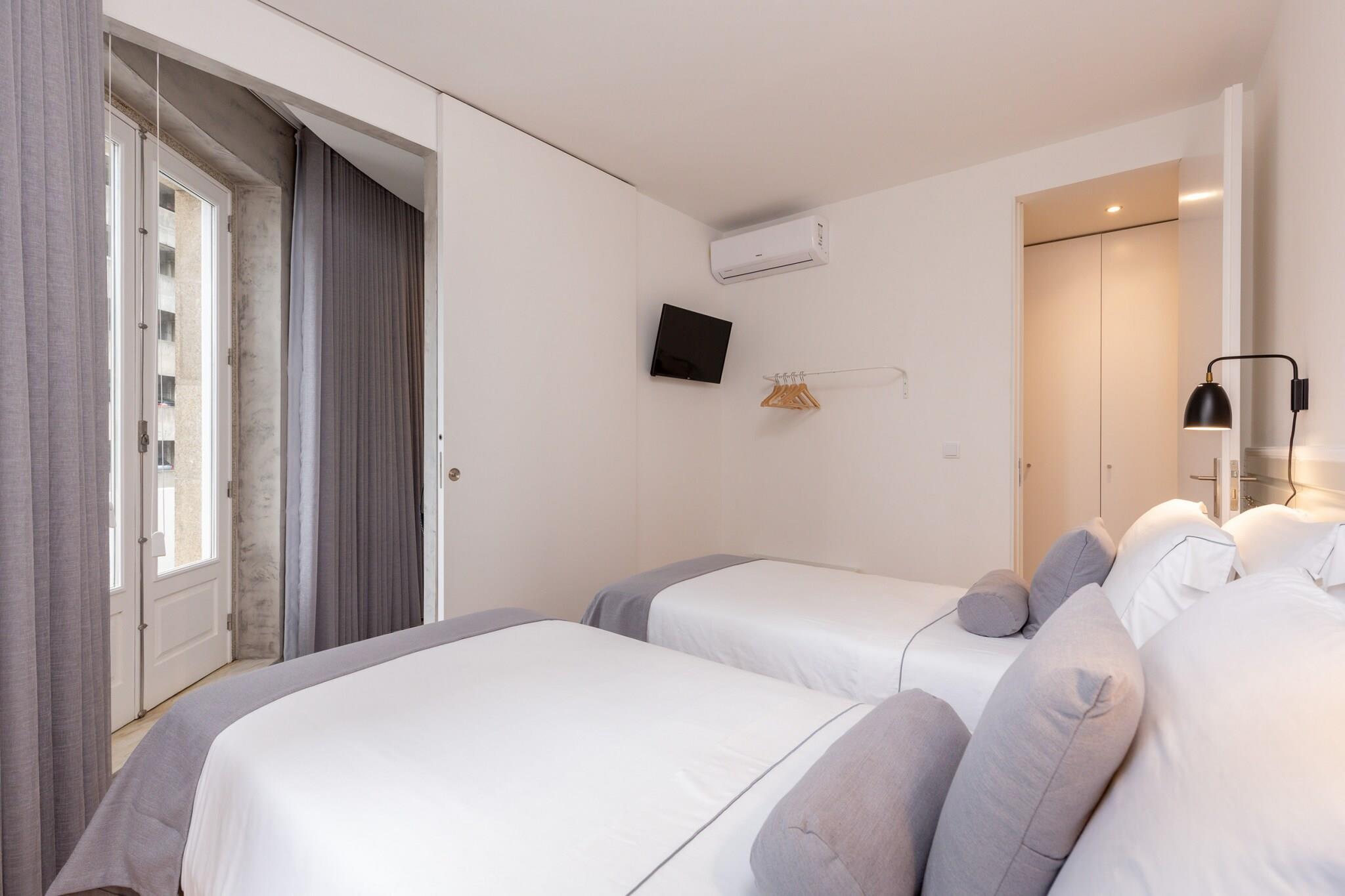 Dette elegante lejlighed, der er ideelt for familier eller grupper, har plads til op til 12 gæster fordelt på fire soveværelser med to queensize-senge, fire enkeltsenge og to dobbeltsovesofaer. Med fem badeværelser og en barneseng tilgængelig på forespørgsel sikrer det et behageligt ophold for både voksne og børn. Kæledyr er velkomne, og lejligheden har en privat balkon og et dedikeret børneområde. Gratis roomservice, hjemmesko og parkering i nærheden eller mod betaling på stedet bidrager til bekvemmeligheden. Selvom der ikke er gratis aktiviteter inkluderet, kan gæsterne vælge personlige oplevelser som levering af morgenmad og vinsmagning på bådture. Lejligheden ligger i hjertet af Porto, kun få skridt fra Mercado do Bolhão, og tilbyder førsteklasses adgang til byens kulturelle og kulinariske hotspots. Inden for gåafstand ligger vartegn som São Bento togstation, Trindade metropark og Rua de Santa Catarina, en travl gade fyldt med butikker og lokale sælgere. Madelskere kan udforske nærliggende restauranter som "Escondidinho" og "Vaccarum" eller nyde lokale caféer som "Locarno" for en traditionel smag af Porto. Den centrale beliggenhed sikrer fremragende transportforbindelser, ideel til at udforske byen og omegn. Denne fuldt udstyrede lejlighed er designet med fokus på komfort og funktionalitet og har et køkken med induktionskogeplade, ovn, mikrobølgeovn, køleskab, fryser og opvaskemaskine. Gæsterne finder også juicer, elkedel, brødrister, frituregryde og kaffemaskine til deres kulinariske behov. Der er vaskemaskine og tørretumbler til rådighed, samt strygejern, hårtørrer og bøjler.