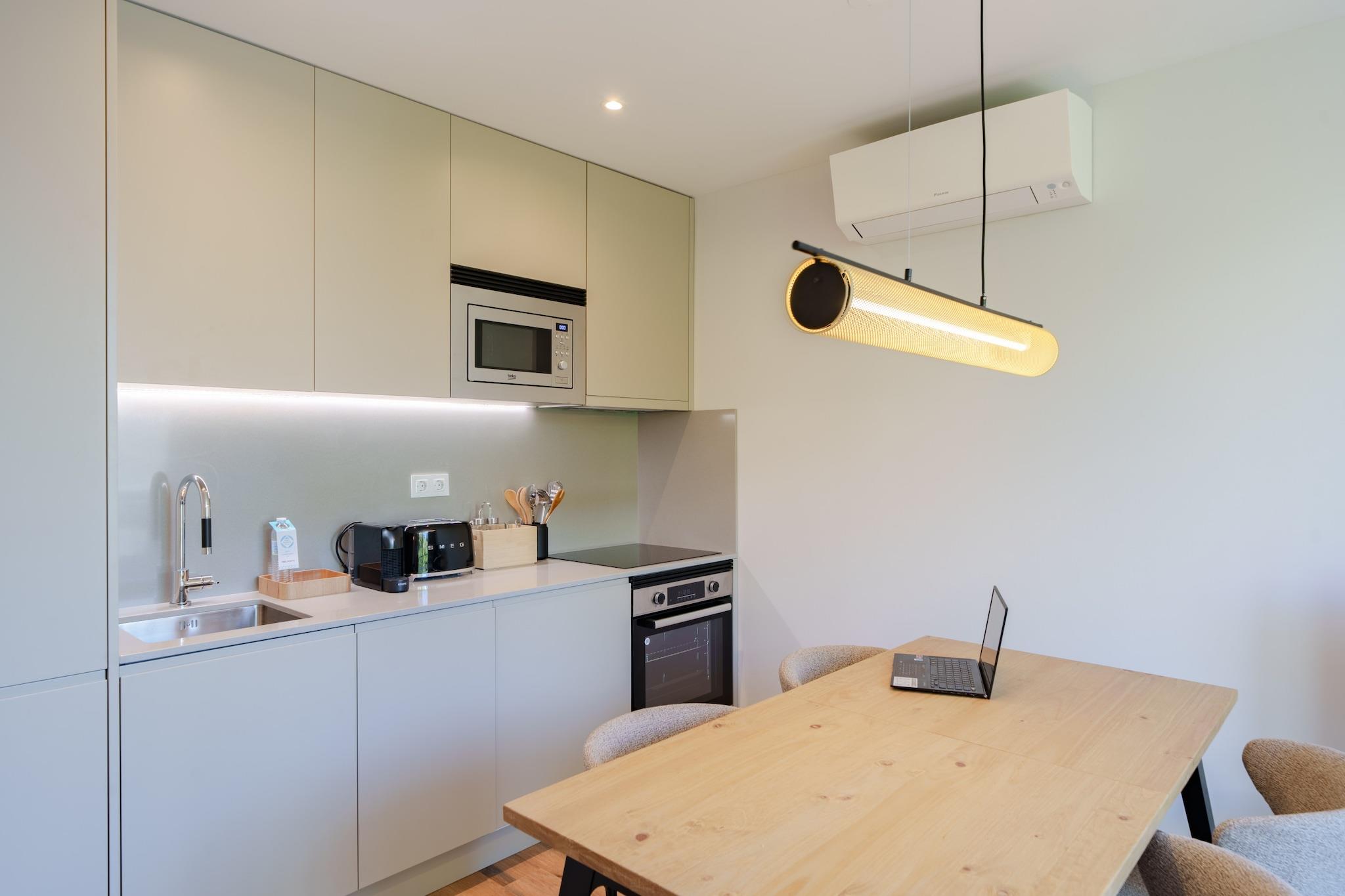 Feel Porto Firmeza Coworking Flats Entdecken Sie dieses elegante 40m² große Apartment, ideal für 3 Personen, in dem modernes Design und Komfort in einer privilegierten Lage im Herzen von Porto miteinander verschmelzen. Es besteht aus einem Schlafzimmer mit einem Queen-Size-Bett, einem Doppel-Schlafsofa und einem Badezimmer mit Dusche und Haartrockner. Ideal für Paare oder Familien Dieses Apartment wurde sowohl für Paare als auch für kleine Familien konzipiert. • Ein Babybett ist auf Anfrage verfügbar, was es ideal für Reisende mit Babys macht. Komfort und Stil Dieses Apartment bietet eine gemütliche und elegante Atmosphäre, perfekt zum Entspannen nach einem Tag voller Entdeckungen: • Gebäude mit Aufzug • Klimaanlage für ein ideales Klima zu jeder Jahreszeit • Satelliten-TV und kostenloses WLAN, damit Sie immer verbunden sind • Waschmaschine für zusätzliche Bequemlichkeit während Ihres Aufenthalts • Kleiderbügel • Feuerlöscher • Balkon • Haartrockner • Bügeleisen • Erste-Hilfe-Set für Notfälle Voll ausgestattete Küche Bereiten Sie Ihre Mahlzeiten mit Leichtigkeit in der voll ausgestatteten Küche zu: • Kochutensilien, Induktionskochfeld, Gefrierschrank, Kühlschrank, Ofen, Wasserkocher, Toaster, Mikrowelle und Ofen • Kaffeemaschine für einen erfrischenden Start in den Tag • Geschirrspüler für zusätzliche Bequemlichkeit während Ihres Aufenthalts • Zugang zu der gesamten Wohnung und den Annehmlichkeiten, ohne Einschränkungen und exklusiv Unvergleichliche Lage Das Apartment befindet sich nur wenige Schritte von der ikonischen Avenida dos Aliados entfernt und ermöglicht es Ihnen, in die reiche Kultur und Geschichte von Porto einzutauchen: • Nähe zu ikonischen Sehenswürdigkeiten wie dem Praça da Liberdade, dem Parque das Águas, dem Coliseu Porto Ageas und dem Casa do Infante, wo Sie mehr über die Geschichte von Porto erfahren und verschiedene Arten von Live-Shows genießen können. • Umgeben von einer Vielzahl exzellenter Restaurants wie „Farinha“, „The Grill Place“ und traditionellen Cafés wie „Confeitaria Belo Mundo“ und „NATA Lisboa“, in denen Sie die authentische Gastronomie von Porto genießen können, von den unwiderstehlichen Francesinhas bis zu den traditionellen Pastéis de Nata. Personalisierte Erfahrung Auch wenn der Check-in unabhängig mit einem digitalen Schlüssel erfolgt, kann Ihr Aufenthalt durch unsere personalisierten Services noch spezieller werden: • Privater Transferservice für eine bequeme Fahrt von und zum Flughafen. • Frühstück, das direkt in Ihrer Unterkunft serviert wird, um Ihren Tag optimal zu starten. • Bootstouren mit Portweinverkostung, perfekt, um zu entspannen und die Landschaft zu genießen. • Ausflüge in die Weinanbaugebiete des Alto Douro mit dem Boot oder im 4x4, um eine der atemberaubendsten Weinregionen zu entdecken. • Ein Parkplatz ist nur wenige Minuten von der Unterkunft entfernt gegen Aufpreis und je nach Verfügbarkeit verfügbar. Genießen Sie unvergessliche Momente und lassen Sie sich von der Magie der Stadt verzaubern – Feel Porto! Vertical Coworking Firmeza Der Raum von Vertical Coworking Firmeza verfügt über eine Reihe von hochmodernen Räumen, privaten Büros, großen Besprechungsräumen, Phone Booths mit hervorragender Schalldämmung und einem Entspannungsbereich. Es gibt eine komplett ausgestattete Küche für bequeme Mahlzeiten, mit ausreichend Platz, um auf die beste Weise zu Mittag zu essen. Der Raum bietet auch High-Speed-Internet, um die Produktivität und die Inhaltserstellung zu steigern. Wenn Sie eine Buchung vornehmen möchten, konsultieren Sie bitte die Preise mit unserem Vertriebsteam.