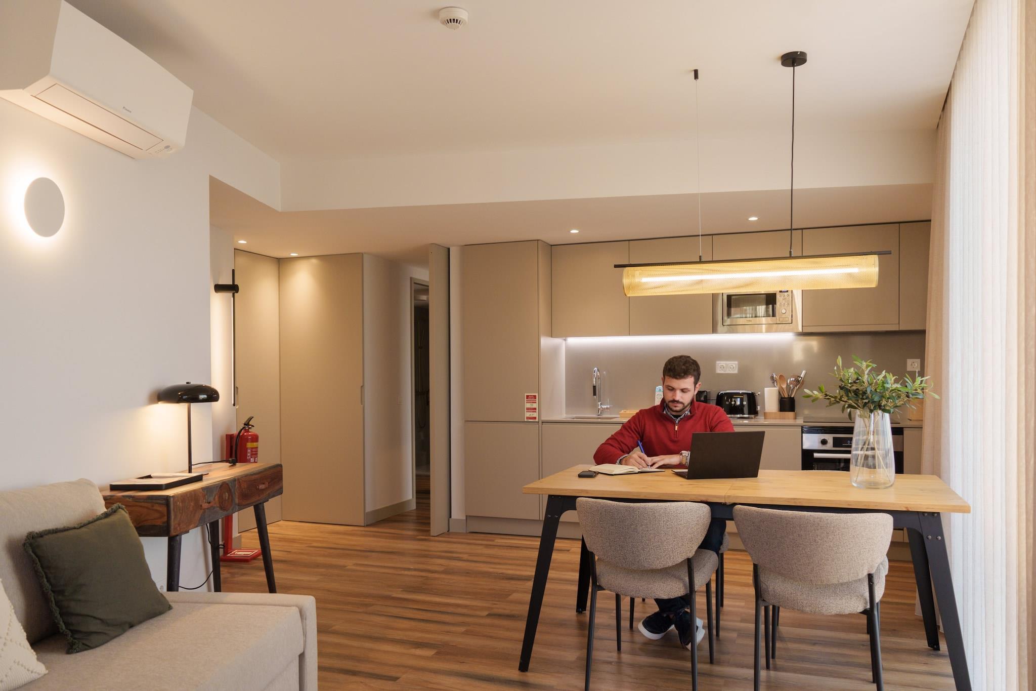 Feel Porto Firmeza Coworking & Premium Flats Entdecken Sie dieses elegante 59m² große Apartment, ideal für 3 Personen, in dem modernes Design und Komfort in einer privilegierten Lage im Herzen von Porto miteinander verschmelzen. Es besteht aus einem Schlafzimmer mit einem Queen-Size-Bett, einem Doppel-Schlafsofa und einem Badezimmer mit Dusche und Haartrockner. Ideal für Paare oder Familien Dieses Apartment wurde sowohl für Paare als auch für kleine Familien konzipiert. • Ein Babybett ist auf Anfrage verfügbar, was es ideal für Reisende mit Babys macht. Komfort und Stil Dieses Apartment bietet eine gemütliche und elegante Atmosphäre, perfekt zum Entspannen nach einem Tag voller Entdeckungen: • Gebäude mit Aufzug • Klimaanlage für ein ideales Klima zu jeder Jahreszeit • Satelliten-TV und kostenloses WLAN, damit Sie immer verbunden sind • Waschmaschine für zusätzliche Bequemlichkeit während Ihres Aufenthalts • Kleiderbügel • Feuerlöscher • Balkon • Haartrockner • Bügeleisen • Erste-Hilfe-Set für Notfälle Voll ausgestattete Küche Bereiten Sie Ihre Mahlzeiten mit Leichtigkeit in der voll ausgestatteten Küche zu: • Kochutensilien, Induktionskochfeld, Gefrierschrank, Kühlschrank, Ofen, Wasserkocher, Toaster, Mikrowelle und Ofen • Kaffeemaschine für einen erfrischenden Start in den Tag • Geschirrspüler für zusätzliche Bequemlichkeit während Ihres Aufenthalts • Zugang zu der gesamten Wohnung und den Annehmlichkeiten, ohne Einschränkungen und exklusiv Unvergleichliche Lage Das Apartment befindet sich nur wenige Schritte von der ikonischen Avenida dos Aliados entfernt und ermöglicht es Ihnen, in die reiche Kultur und Geschichte von Porto einzutauchen: • Nähe zu ikonischen Sehenswürdigkeiten wie dem Praça da Liberdade, dem Parque das Águas, dem Coliseu Porto Ageas und dem Casa do Infante, wo Sie mehr über die Geschichte von Porto erfahren und verschiedene Arten von Live-Shows genießen können. • Umgeben von einer Vielzahl exzellenter Restaurants wie „Farinha“, „The Grill Place“ und traditionellen Cafés wie „Confeitaria Belo Mundo“ und „NATA Lisboa“, in denen Sie die authentische Gastronomie von Porto genießen können, von den unwiderstehlichen Francesinhas bis zu den traditionellen Pastéis de Nata. Personalisierte Erfahrung Auch wenn der Check-in unabhängig mit einem digitalen Schlüssel erfolgt, kann Ihr Aufenthalt durch unsere personalisierten Services noch spezieller werden: • Privater Transferservice für eine bequeme Fahrt von und zum Flughafen. • Frühstück, das direkt in Ihrer Unterkunft serviert wird, um Ihren Tag optimal zu starten. • Bootstouren mit Portweinverkostung, perfekt, um zu entspannen und die Landschaft zu genießen. • Ausflüge in die Weinanbaugebiete des Alto Douro mit dem Boot oder im 4x4, um eine der atemberaubendsten Weinregionen zu entdecken. • Ein Parkplatz ist nur wenige Minuten von der Unterkunft entfernt gegen Aufpreis und je nach Verfügbarkeit verfügbar. Genießen Sie unvergessliche Momente und lassen Sie sich von der Magie der Stadt verzaubern – Feel Porto! Vertical Coworking Firmeza Der Raum von Vertical Coworking Firmeza verfügt über eine Reihe von hochmodernen Räumen, privaten Büros, großen Besprechungsräumen, Phone Booths mit hervorragender Schalldämmung und einem Entspannungsbereich. Es gibt eine komplett ausgestattete Küche für bequeme Mahlzeiten, mit ausreichend Platz, um auf die beste Weise zu Mittag zu essen. Der Raum bietet auch High-Speed-Internet, um die Produktivität und die Inhaltserstellung zu steigern. Wenn Sie eine Buchung vornehmen möchten, konsultieren Sie bitte die Preise mit unserem Vertriebsteam.