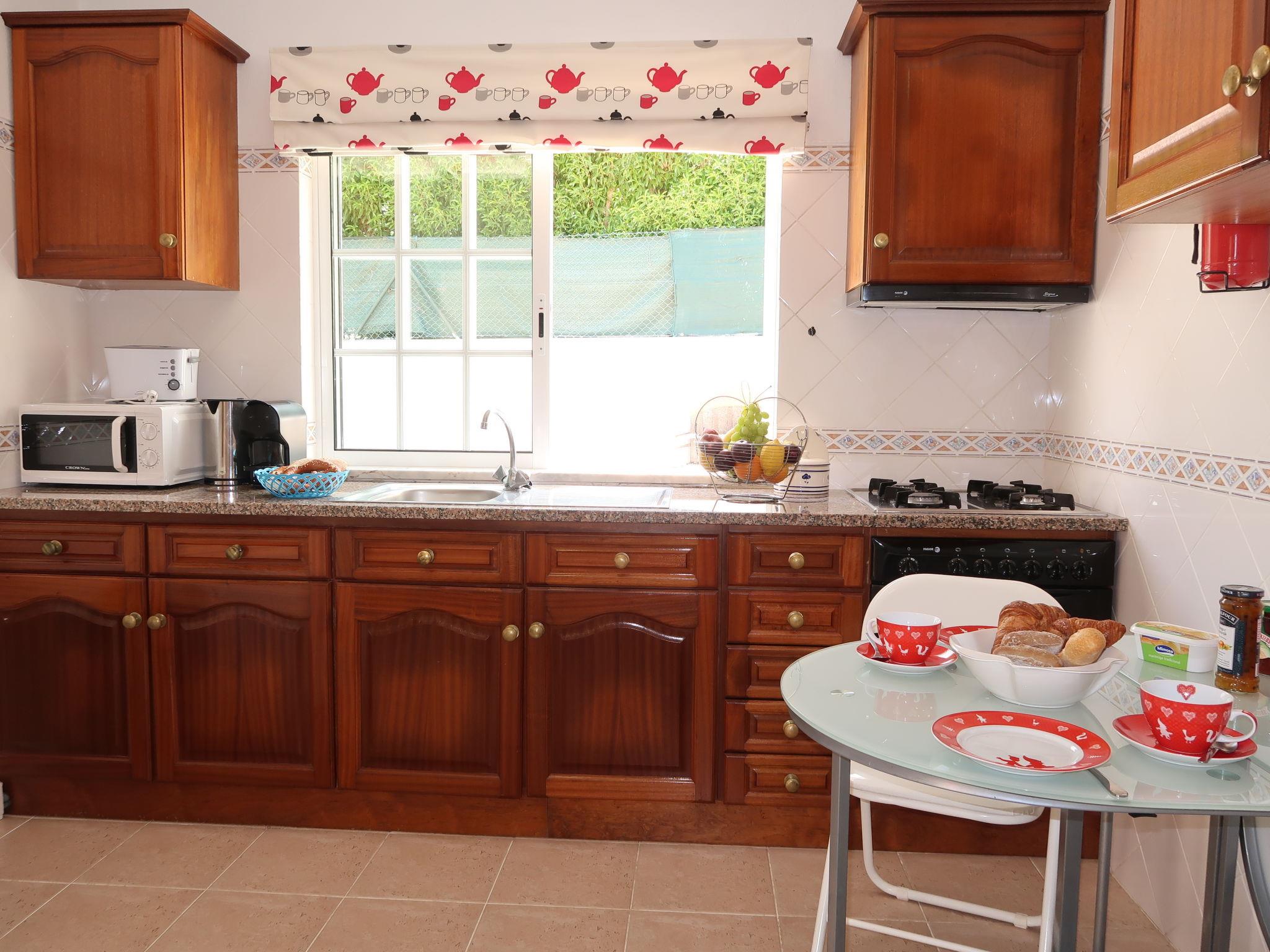 "Monte Novo", 2-room house 57 m2. Practical and wooden furniture furnishings: living/sleeping room with 1 sofabed, 1 pull-out bed, dining table, satellite TV, hi-fi system, air conditioning and forced-air heating. 1 room with 2 beds (95 cm, length 195 cm), air conditioning and forced-air heating. Kitchen (oven, 4 gas rings, microwave, freezer, electric coffee machine) with dining table. Shower/WC. Heating (extra). Heating not available in all rooms. Terrace. Terrace furniture, barbecue, deck chairs (4). Facilities: washing machine, baby cot. Internet (WiFi, free). Please note: non-smoking house. Fire extinguisher. 10048/AL