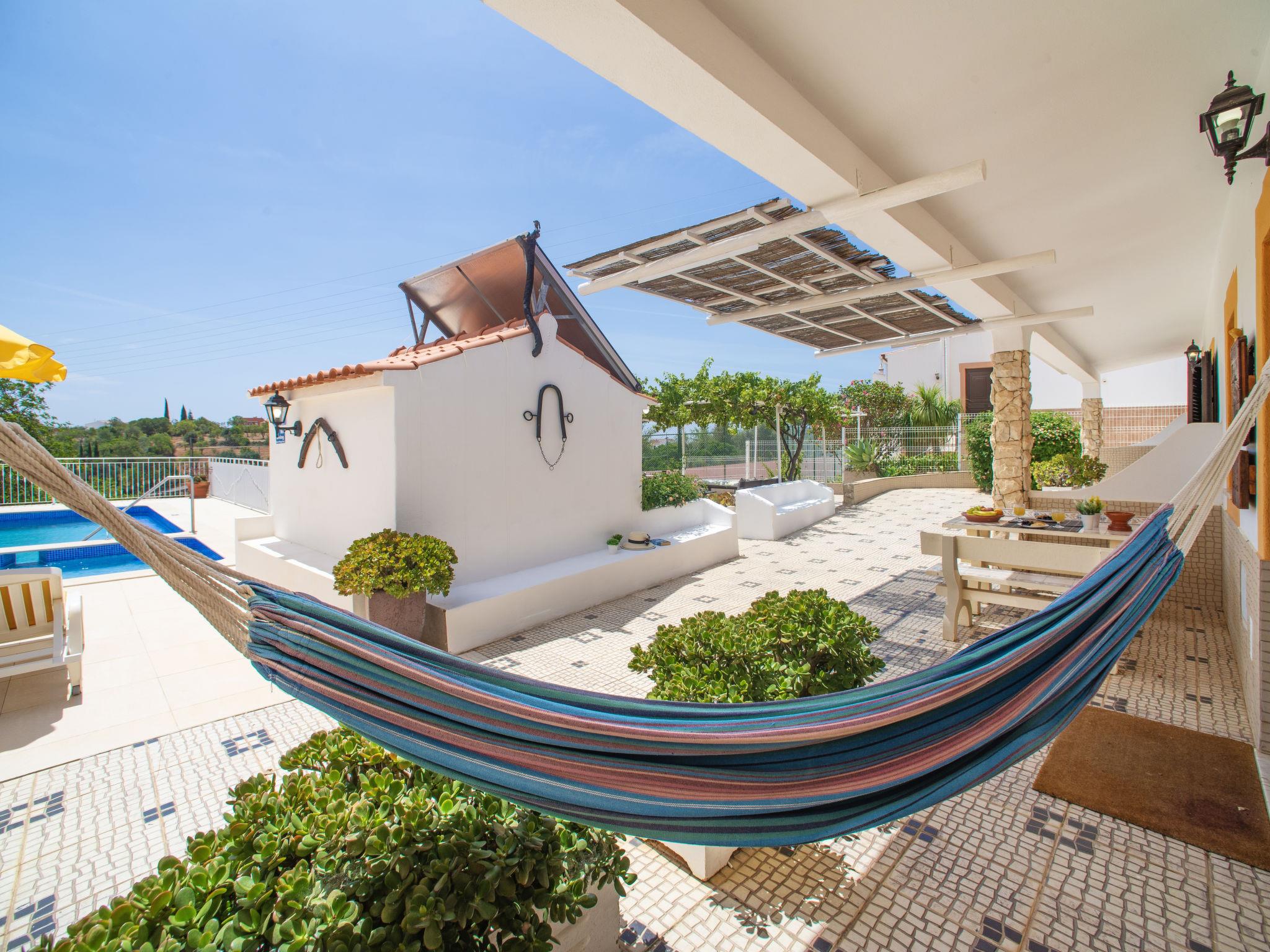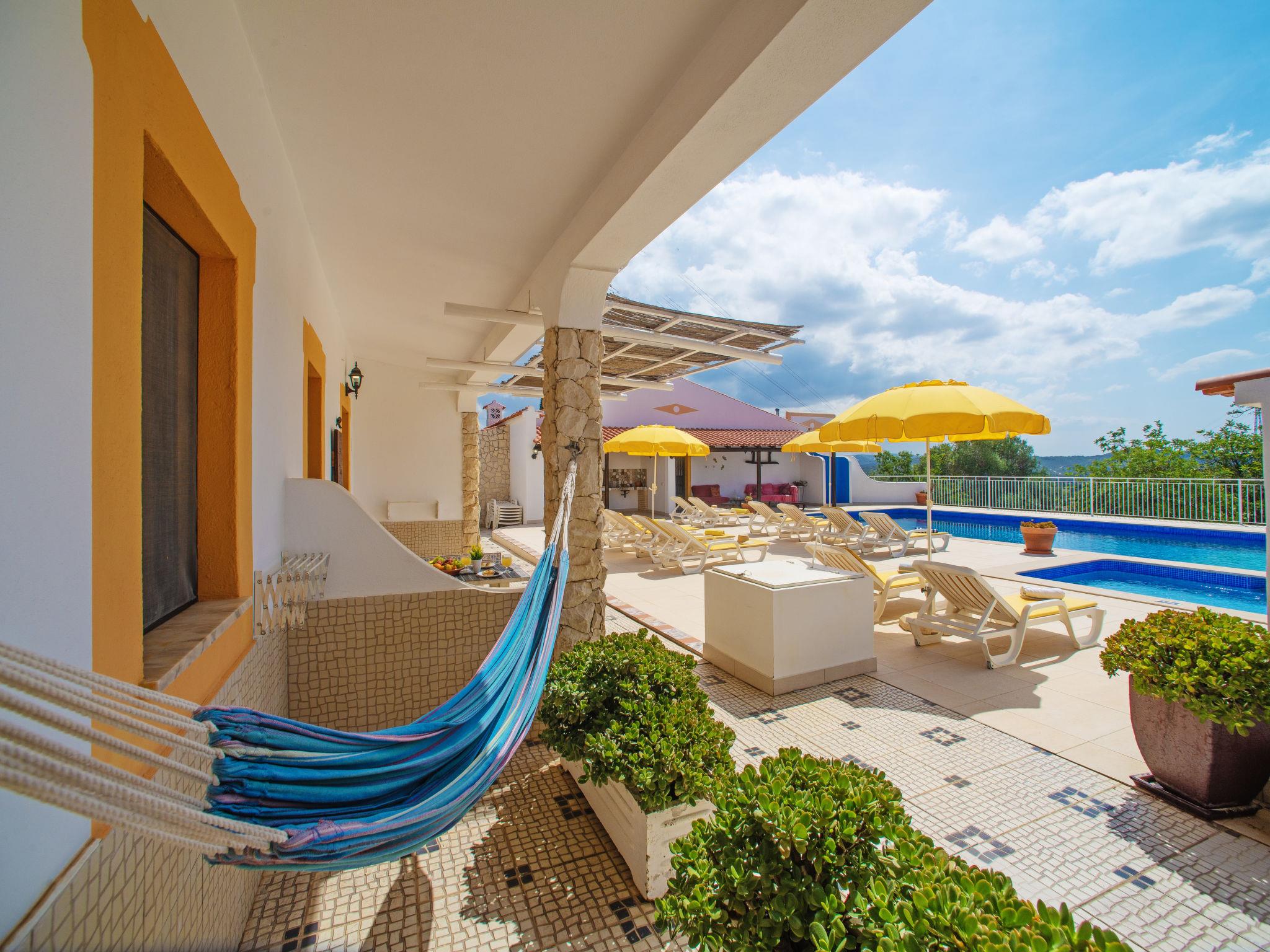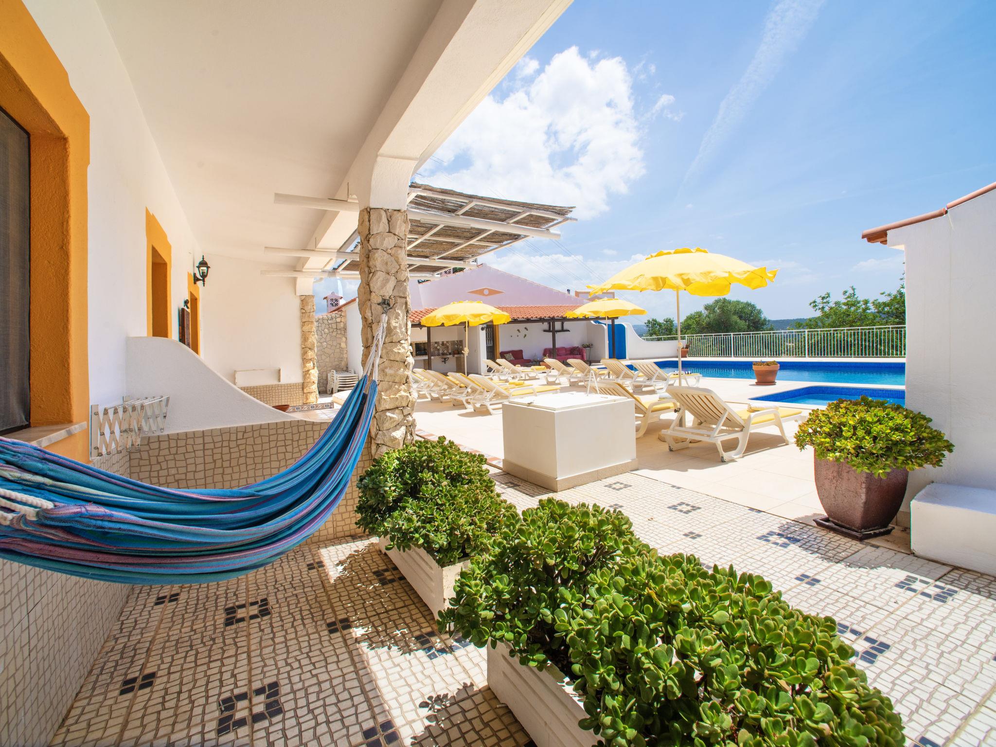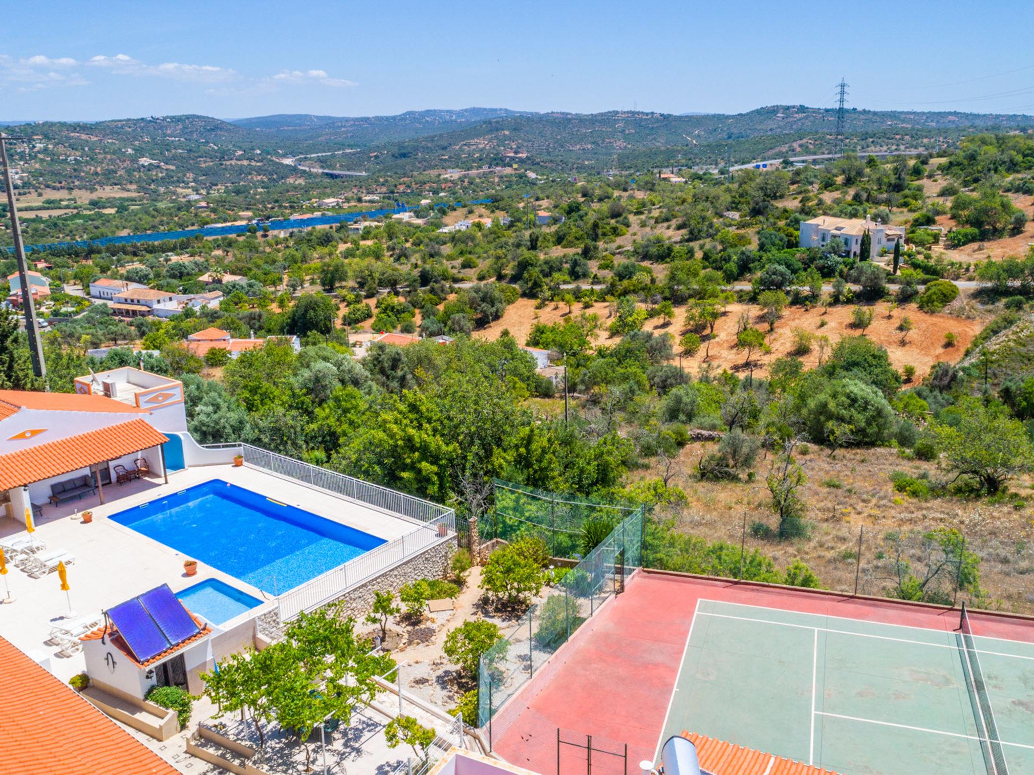 Small holiday development "Monte dos Vieiras". 5 houses in the resort. On the outskirts Cerro do Ouro, in a quiet, elevated position, 9 km from the sea. For shared use: property 5 ha (fenced), natural garden, swimming pool (13 x 6 m, depth 130 - 190 cm, seasonal availability: 01.Jan. - 31.Dec.). Children's pool, outdoor shower, tennis, barbecue. In the complex: relaxation room, billiard table. 500 m long narrow motor access. Roofed, parking (for 6 cars, limited number of spaces) on the premises. Shop 1.5 km, grocery 1.5 km, shopping centre 9 km, restaurant 1.7 km, bakery 500 m, bus stop 350 m, railway station "Tunes" 3.8 km, sandy beach 9 km. Marina 9 km, golf course (18 hole) 13.6 km. Nearby attractions: Krazy World 9 km. Please note: Additional accommodations can be booked. Property ref. PT6815608.1,2,3 is situated on the same property.