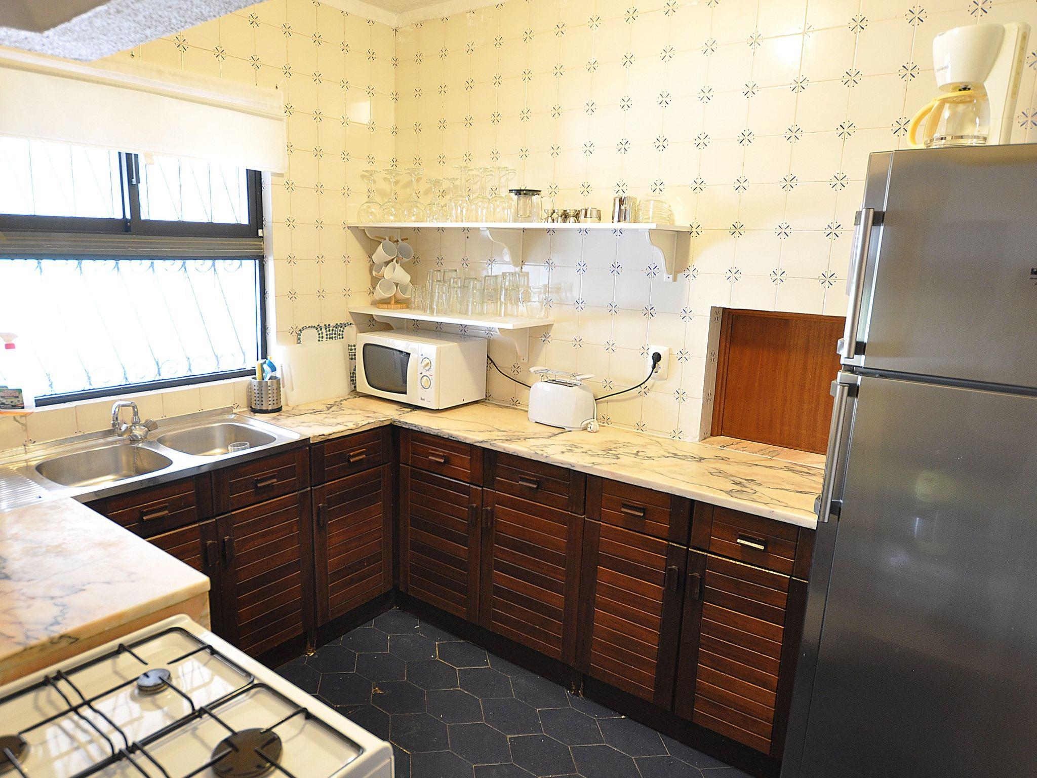 Furnishing in typical old portugiese style but very clean with privat car-board, rooftop and small garden.