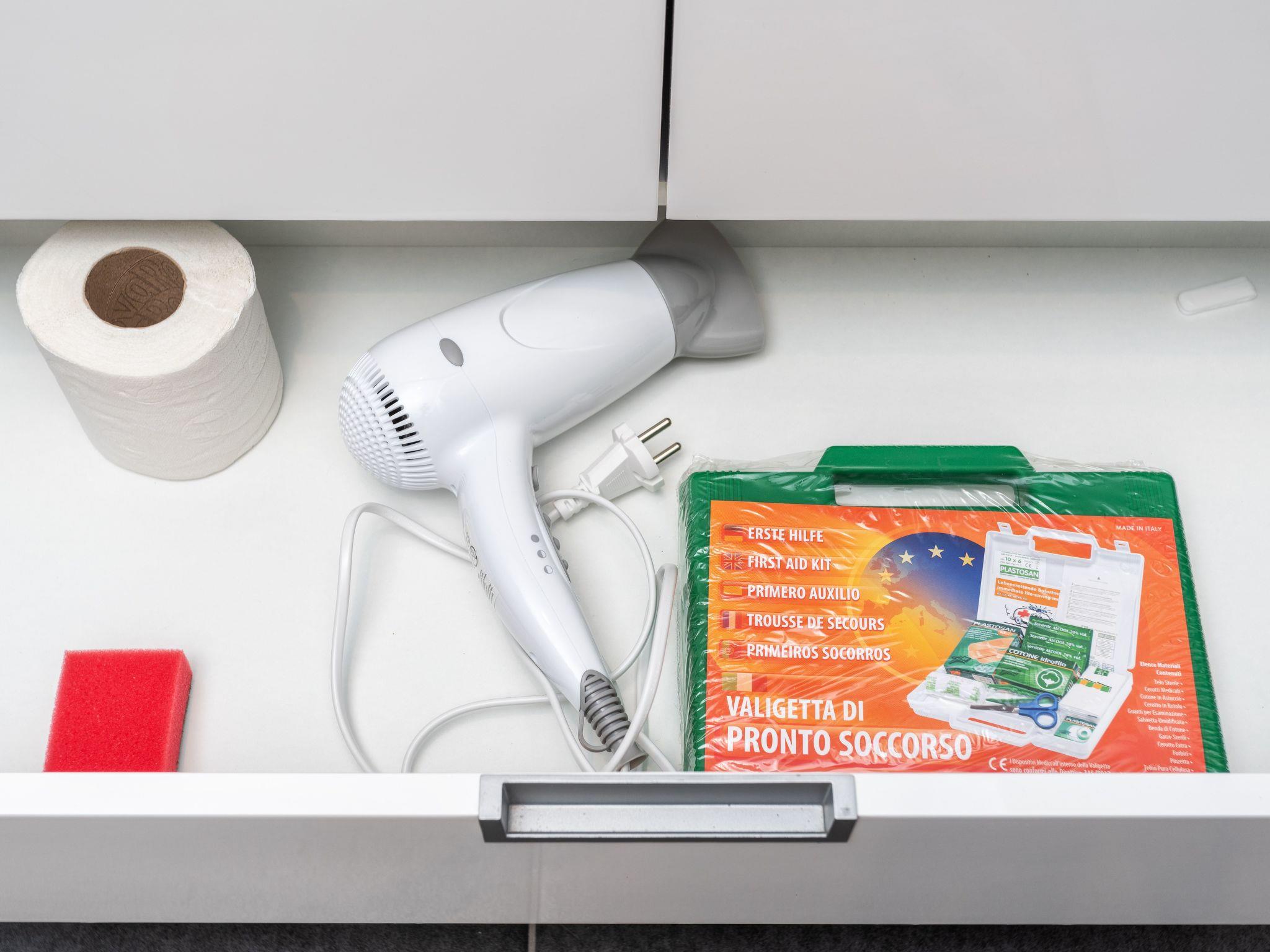 The first aid kit in apartment is equipped with thermometer and all the necessities.