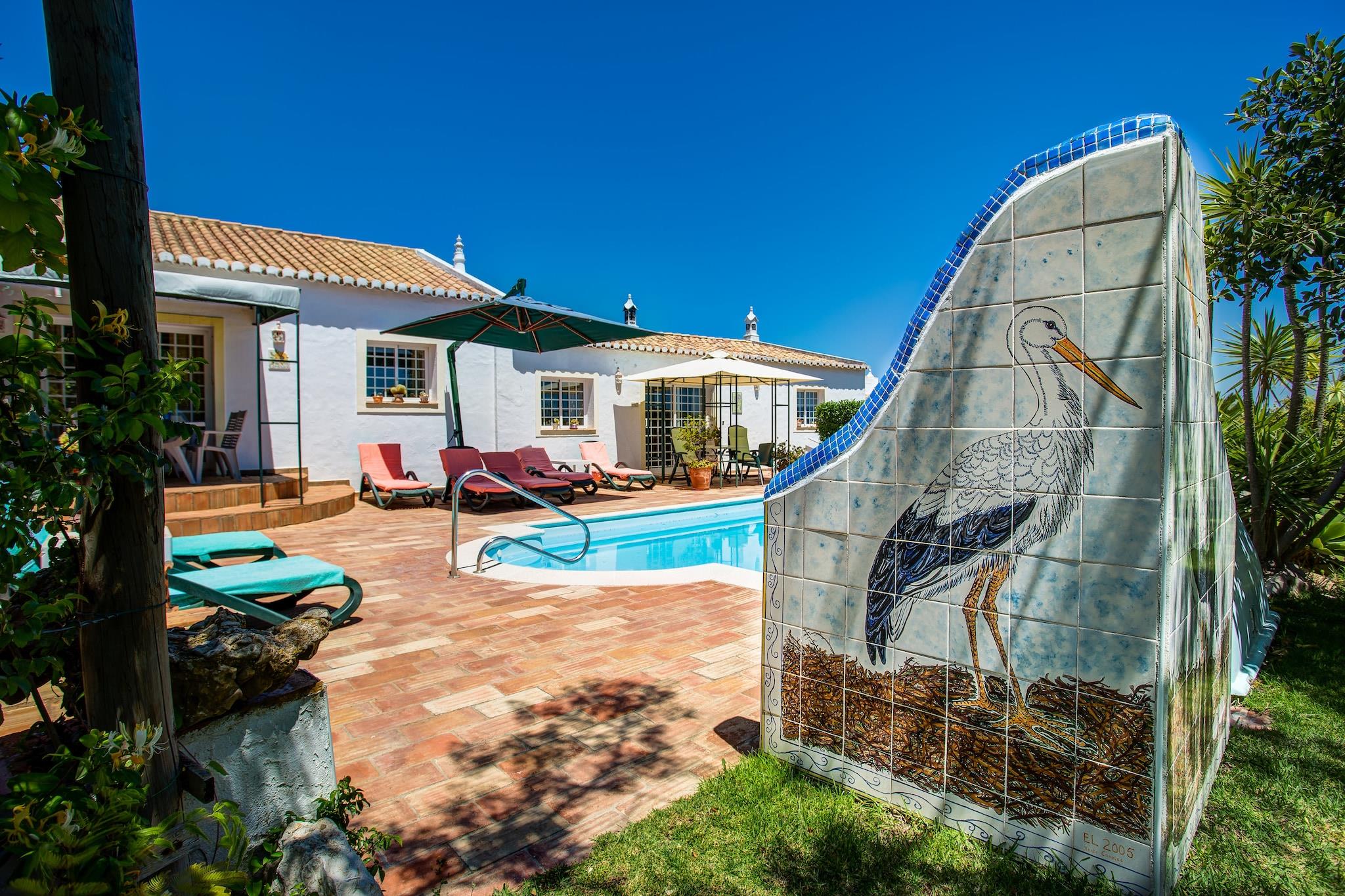Dette rummelige, fritliggende sommerhus i Portimão ligger i stueetagen og er tilgængeligt for kørestole. Ejendommen er en del af en smuk, restaureret portugisisk herregård ("Quinta") og har en privat terrasse og en fælles pool. Med 2 soveværelser til 4 personer er det ideelt til en familie. Boligen ligger ved foden af Monchique-bjergene, kun 10 km fra havet. I en femten minutters kørsel er du ved havet, stranden, golfbanerne, vinmarkerne og mange daglige faciliteter såsom butikker, banker og et apotek. Steder som Alvor (7 km) og Praia da Rocha er også i nærheden. Denne gård er opdelt i 4 huse, hvoraf 3 er til ferieudlejning. Ejeren bor i et af disse huse og har pæne hunde, der normalt strejfer frit. Hvis du foretrækker det ikke, vil han forhindre sine hunde i at forlade sin ejendom. Han byder dig velkommen med et køleskab på lager den første dag.
