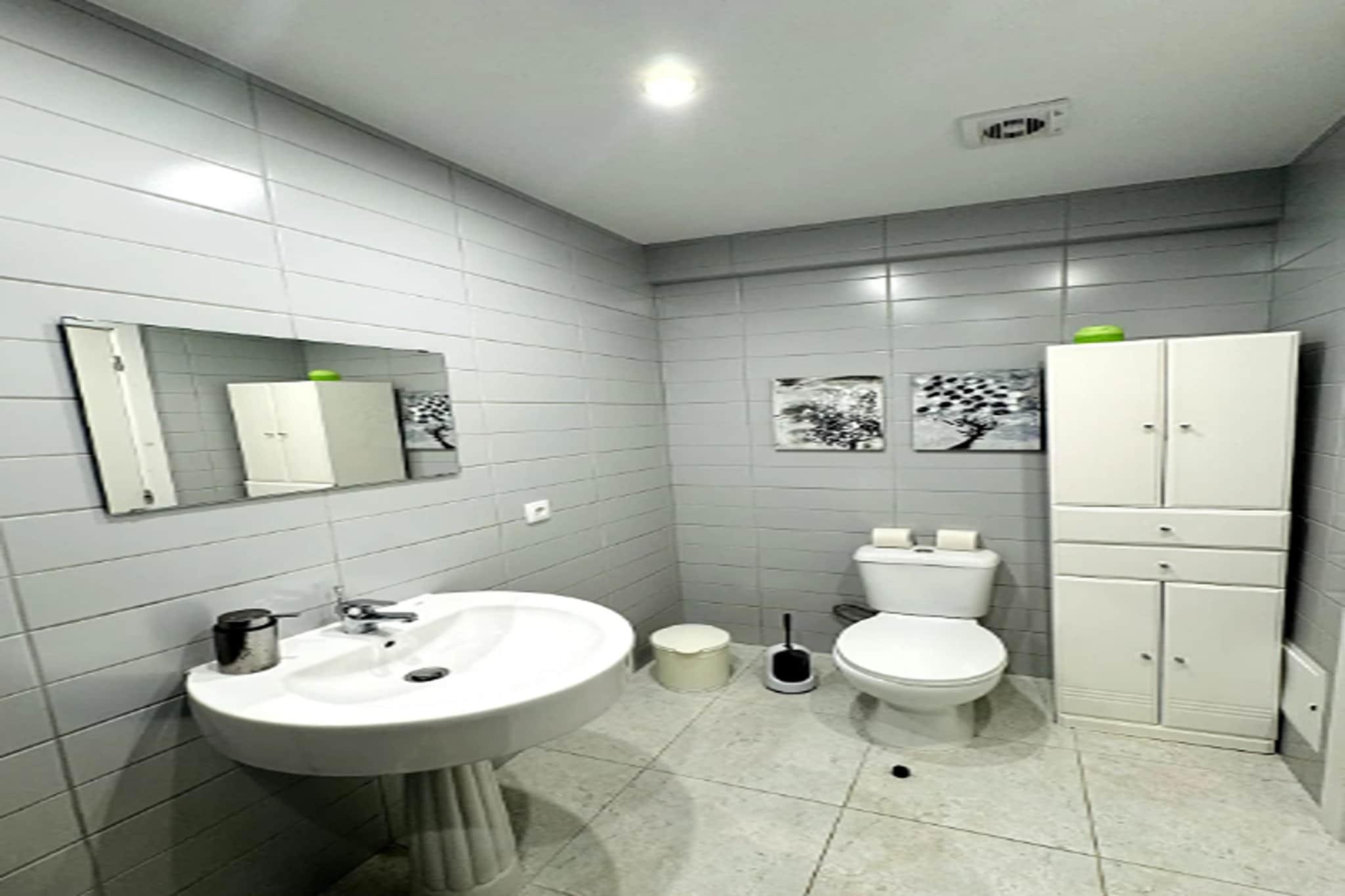 Stueetage: (åbent køkken(spisebord(4 personer), elkedel, brødrister, komfur, emhætte, kaffemaskine, ovn, mikrobølgeovn, køle-fryseskab, vaskemaskine), stue / spisestue(Fjernsyn, sofahjørne, balkon eller terrasse), Soveværelse med badeværelse(dobbeltseng, bruser, håndvask, toilet), Soveværelse med badeværelse(dobbeltseng, bruser, håndvask, toilet)) have(deles med andre gæster), havemøbler, solstole, grill(deles med andre gæster), parking lot(public)