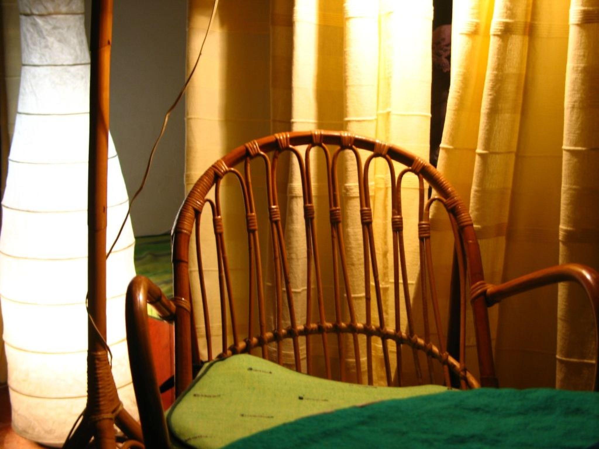 The villa provides a total of four bedrooms, spread over two units. The brown bedroom has a queensize bed and next to it there is the white bedroom with a single bed. Both bedrooms share a bathroom with a shower. The bamboo bedroom has two single beds and next to it there is the red bedroom with two single beds and a bunk bed for two children. These two bedrooms also share a bathroom with a bath and shower. The kitchen is fully-equipped with a gas stove, oven, fridge, freezer, dishwasher, microwave, toaster, Italian coffee machine and washing machine. The living and dining rooms have bamboo furniture and provide space for eight people.