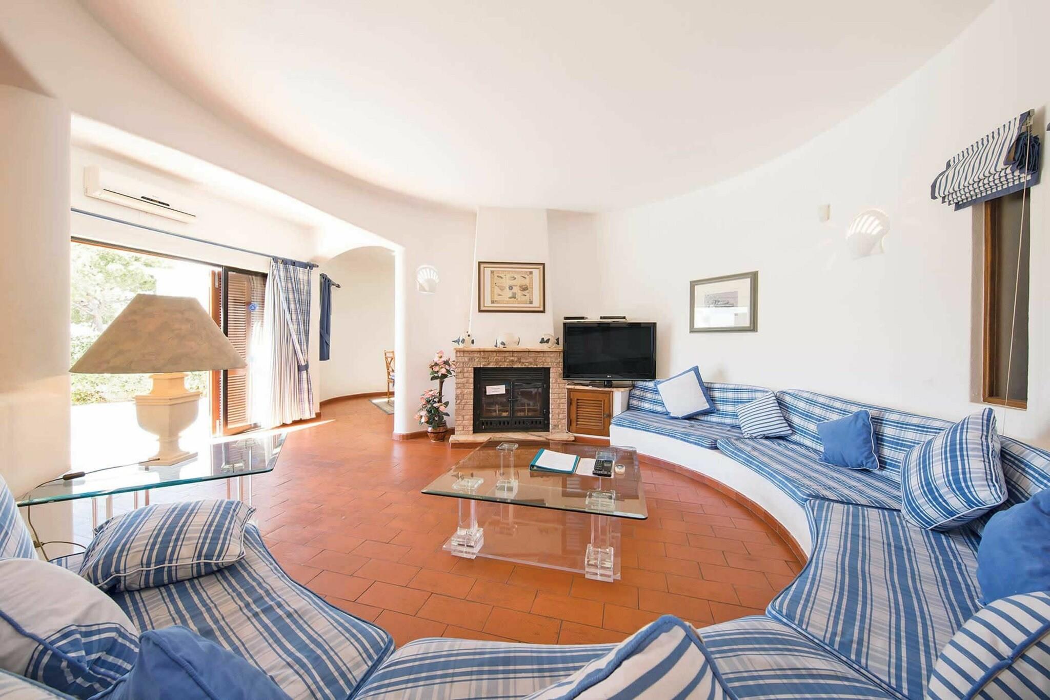 Denne villa med privat swimmingpool ligger i det velkendte feriested Vilamoura, i en bekvem beliggenhed 25 minutters gang fra den "gamle landsby", hvor du finder et lille udvalg af barer og restauranter. Feriehuset tilbyder masser af plads, inklusive et smukt, rundt siddeplads, et typisk træk ved Algarve-arkitekturen. Dobbeltdøre fører fra stuen til en stor have og en privat swimmingpool med liggestole, havemøbler og en grill.I umiddelbar nærhed af Vilamoura kan du udøve forskellige sportsgrene; der er fire golfbaner, en tennisbane, bowlingbaner, skydeområder, ridning, sejlads, dybhavsfiskeri, vandsport, cykling, fodbold, squash, minigolf eller bare gå. Hvis du ikke kan lide sport, er der masser af andre muligheder for at holde dig underholdt: ballooning, fugletitting, gå i biografen, spille på kasinoet, tage en dagstur med båd eller bus eller på en udflugt / jeepsafari.