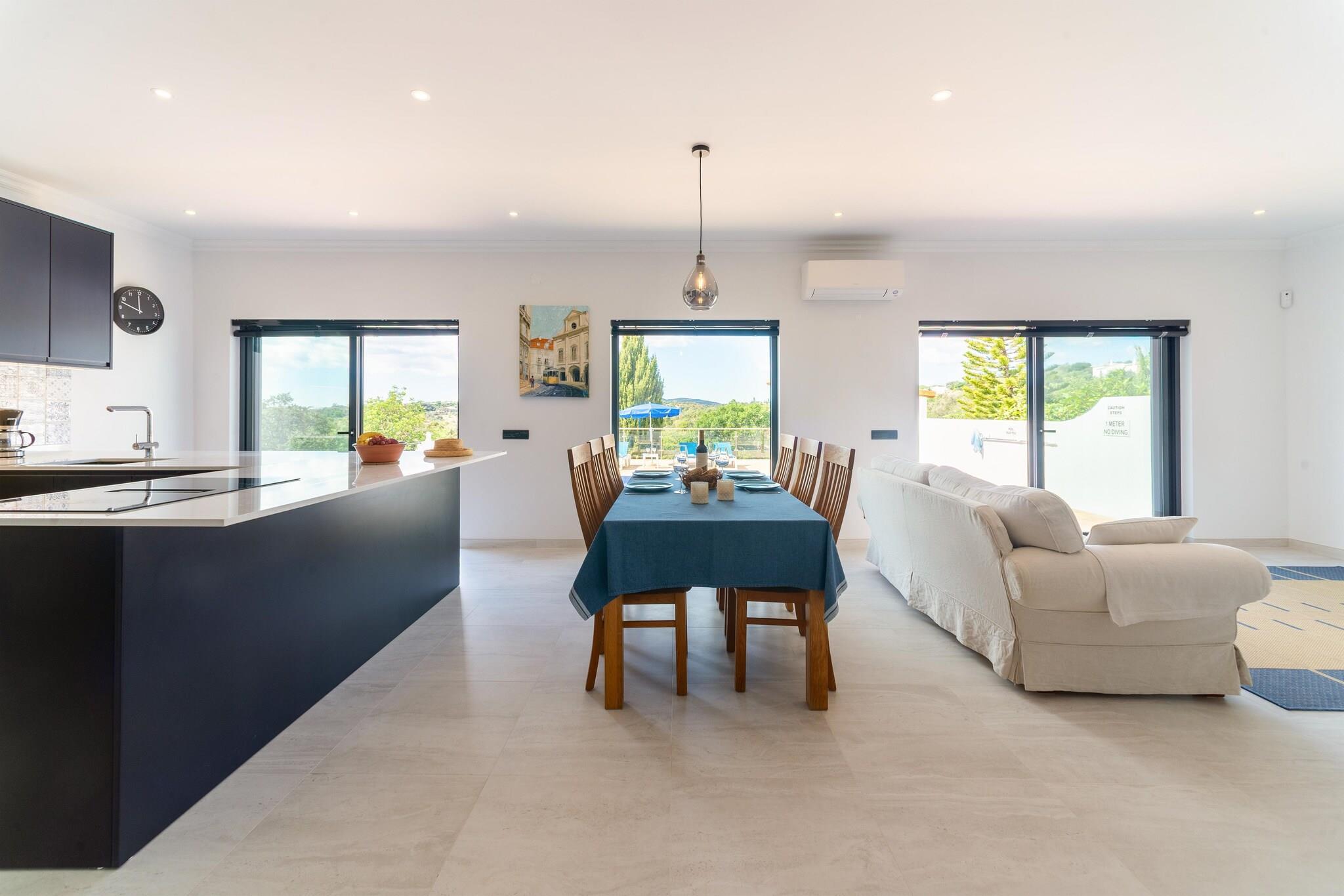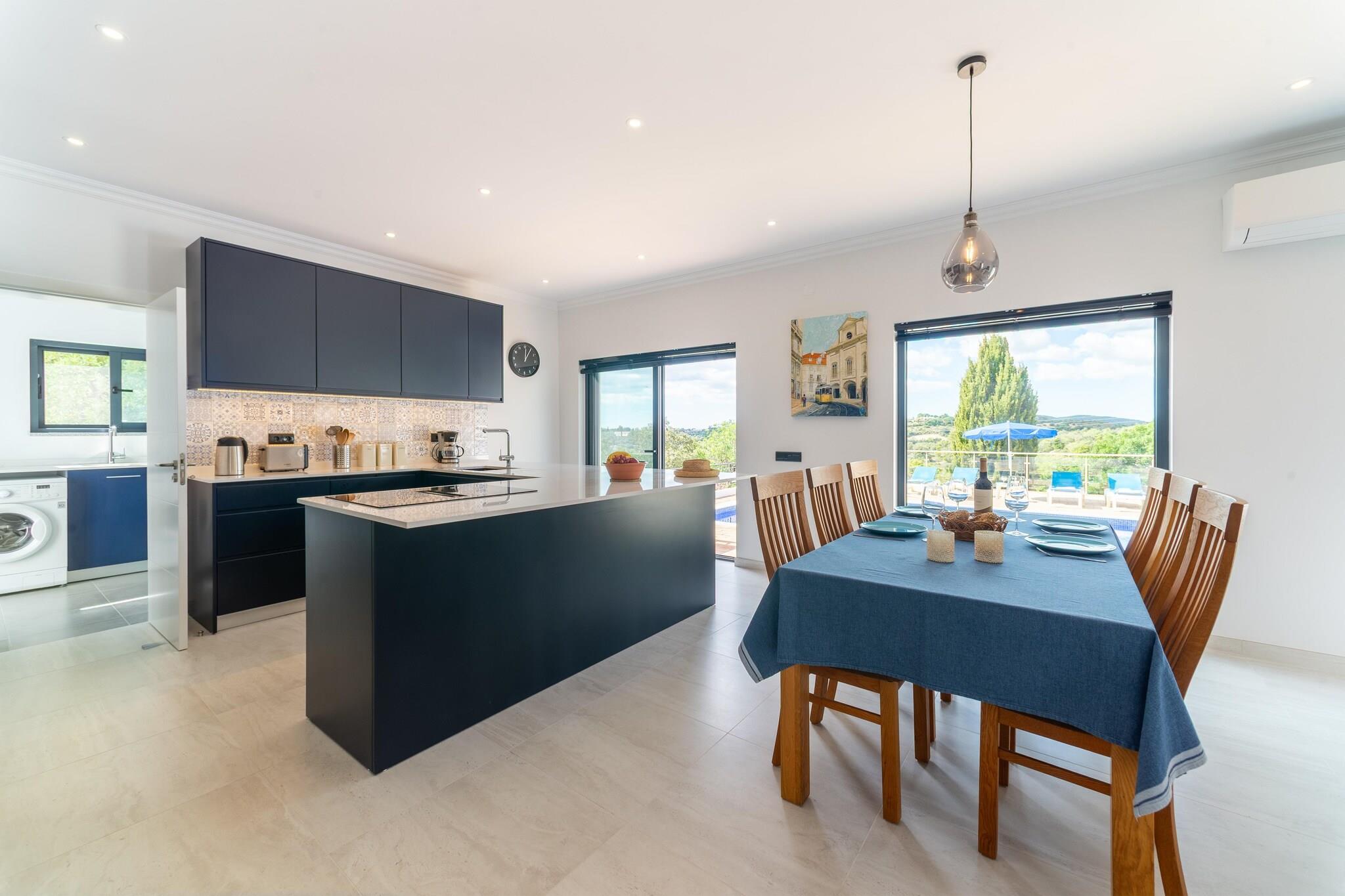 Bo i denne villa, kun 15 minutters kørsel fra Faro lufthavn. Med smukke haver og udsigt over de omkringliggende bakker er dette et virkelig fredeligt sted. To komfortable soveværelser, det ene med eget badeværelse, og et yderligere badeværelse, alle beliggende i stueetagen, kan rumme op til 4 personer, perfekt til to par eller en familie. Der er en åben stue med køkken, spiseplads og opholdsstue med smart-tv og dvd. Der er også wi-fi. Det nye, fuldt udstyrede køkken har indbygget ovn, induktionskomfur, mikroovn, opvaskemaskine og et amerikansk køleskab/fryser med vanddispenser og ismaskine. Der er også kedel, brødrister og kaffemaskine. Der er et separat vaskerum med vaskemaskine og tørretumbler. Alle værelser har aircondition til både køling og opvarmning. Udearealet har en 10 m x 5 m privat pool beliggende på en sydvestvendt terrasse. Der er fire liggestole med poolhåndklæder, to parasoller og en spiseplads. Den overdækkede terrasse har komfortable møbler til afslapning. Nogle af de smukkeste strande og golfbaner i Algarve ligger kun 15 km væk. I den øverste del af ejendommen er der et privat og aflukket område, der tilhører ejeren og er adskilt fra resten af huset. Dette område vil aldrig blive benyttet af ejeren, mens der er gæster til stede.
