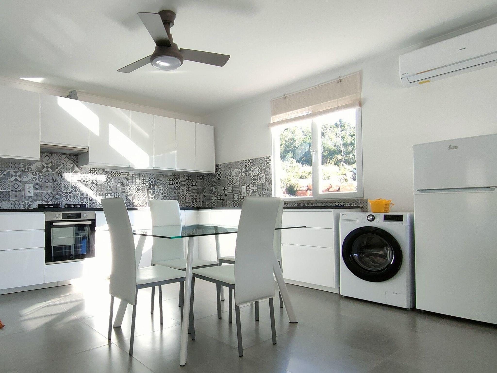 The Villa has the following facilities: - Private swimming pool - nice private terrace - bathroom with walk in shower, double washbasin and toilet - 2 bedrooms (1 double bed 160 cm and 2 single bed (2 x 90) whether or not brought together) - smart TV - living room (40m²) with modern large sofa that can also serve as a pull-out bed 240 x 200 cm (+2) and a well-equipped kitchen with dishwaser and washing machine - Parking - Wifi