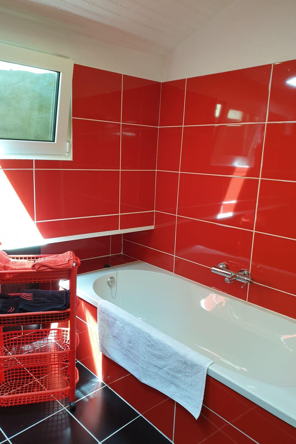 Inside this charming half-timbered house, you will find all the necessary amenities to make your stay as pleasant as possible. The house is equipped with blinds in the bedrooms to aid your sleep, a washing machine for your convenience, and a fan in the rooms to keep you cool during warmer days. For coffee lovers, both a filter coffee maker and a capsule coffee maker are available, in addition to a dishwasher that makes cleaning up after meals easier. With a double shower, the spacious bathroom offers the possibility of a romantic shower together or you can shower with your child. There are also a double sink and a bathtub.