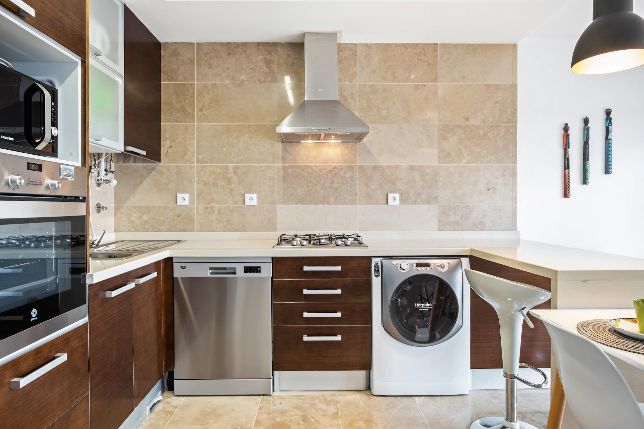 Stueetage: (Stue(Fjernsyn(parabol, Tyske TV-kanaler, Internationale TV-kanaler), spisebord, sofahjørne, radio), Køkken(radio, elkedel, brødrister, komfur(gas), kaffemaskine(kopper), ovn, mikrobølgeovn, opvaskemaskine , køle-fryseskab, vaskemaskine, Saftpresser), soveværelse(dobbeltseng(150 x 200 cm), radio), badeværelse(bruser, håndvask, toilet), garage, varme(elektrisk)) På 1. etage: (Soveværelse med badeværelse(king size-seng(160 x 200 cm), radio, badekar, bruser, håndvask, toilet, bidet, balkon), Soveværelse med badeværelse(2x enkeltseng(90 x 200 cm), radio, bruser, håndvask, toilet, balkon)) Poolhus: (toilet, bruser) opholdsrum, carport, klimaanlæg, terrasse, cykelopbevaring, havemøbler, grill(trækul), parkering, liggestole, Parasol, swimmingpool(deles med andre gæster, opvarmet, 12 x 7 m.), barneseng, strygebræt, hyggespil
