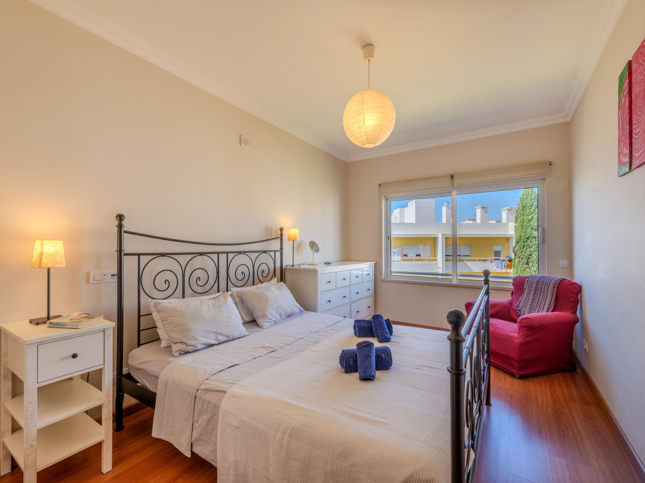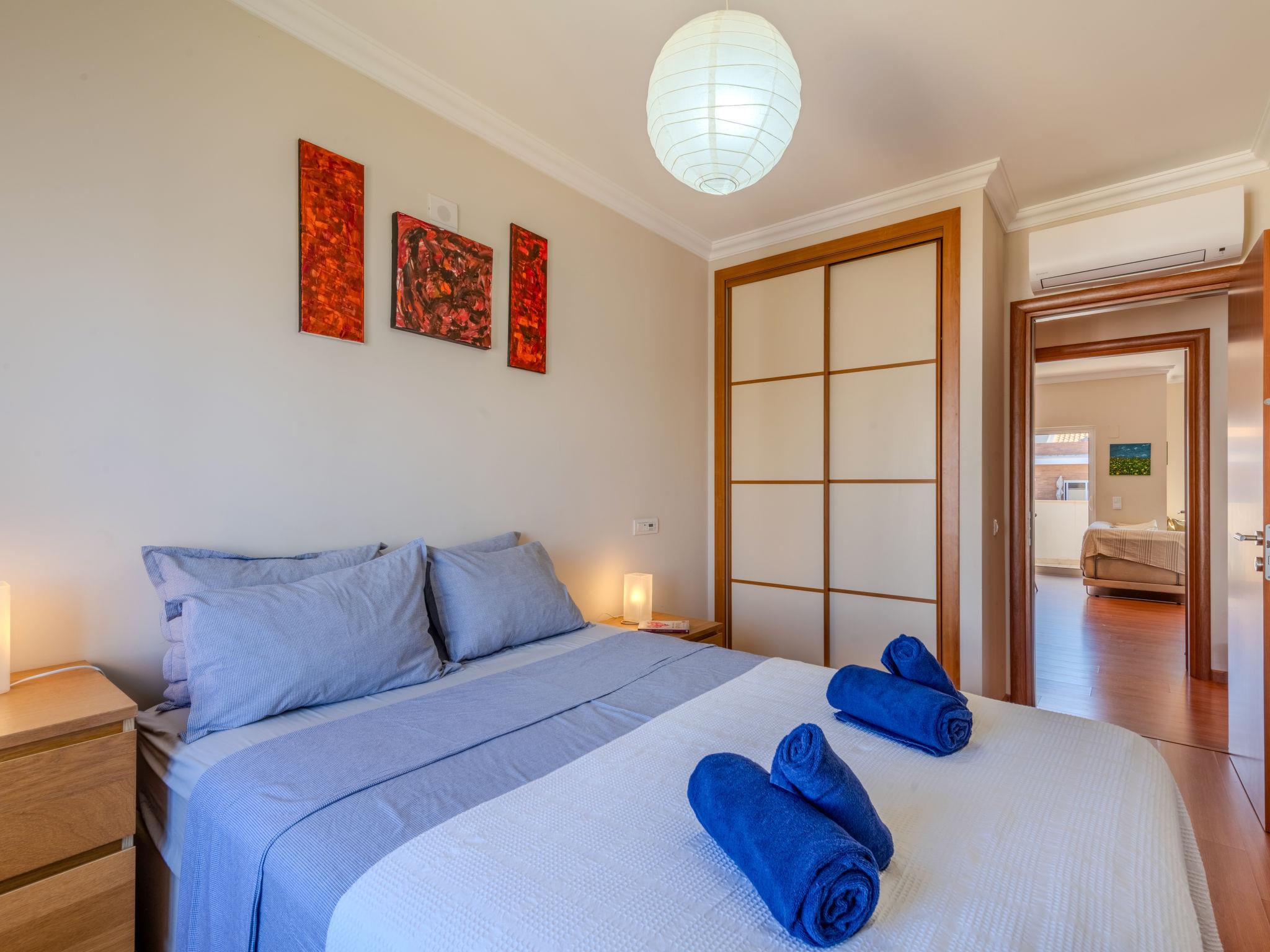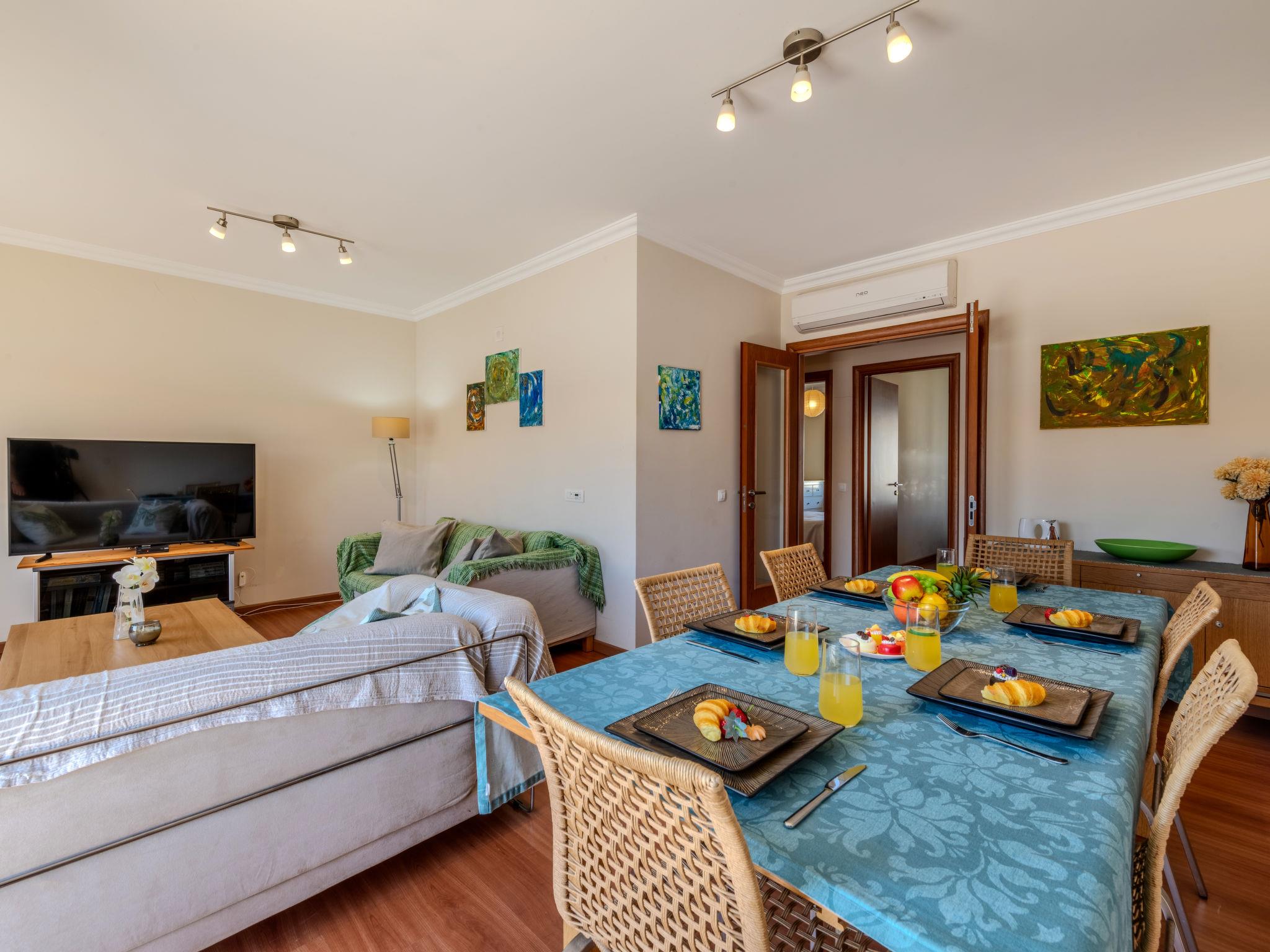 "Ismay", 4-room apartment 110 m2 on 3rd floor. Spacious and bright, very cosy furnishings: living/dining room with dining table, TV, international TV channels and air conditioning. Exit to the balcony. 3 rooms, each room with 1 french bed (160 cm, length 190 cm), air conditioning and forced-air heating. Kitchen (oven, dishwasher, Gas stove, 4 gas rings, toaster, kettle, microwave, freezer, electric coffee machine, Capsules for coffee machine (Nespresso Not Incl)). Exit to the balcony. Bath/bidet/WC, shower/bidet/WC. Sitting area. Side view of the sea. Facilities: washing machine, iron, children's high chair, baby cot, hair dryer. Internet (WiFi, free). Garage space n 3. ESQ Fracção I. Please note: suitable for families apartment street side. Non-smoking house. Smoke alarm, fire extinguisher. 101974/AL