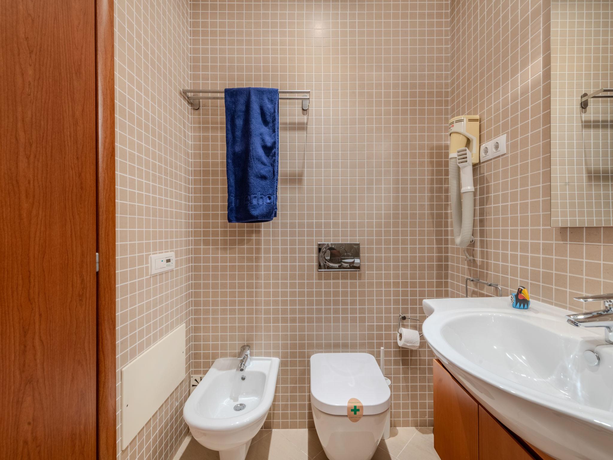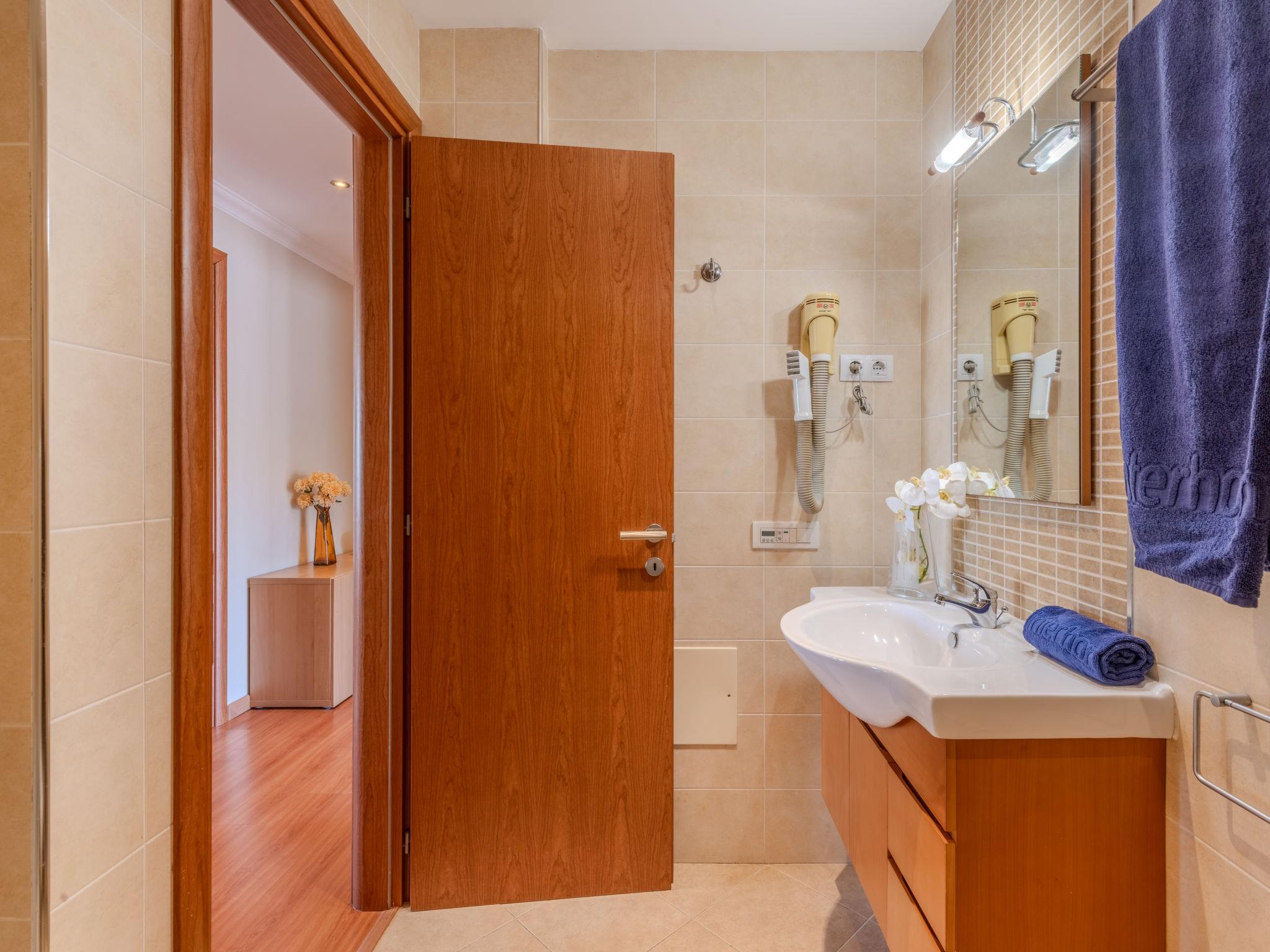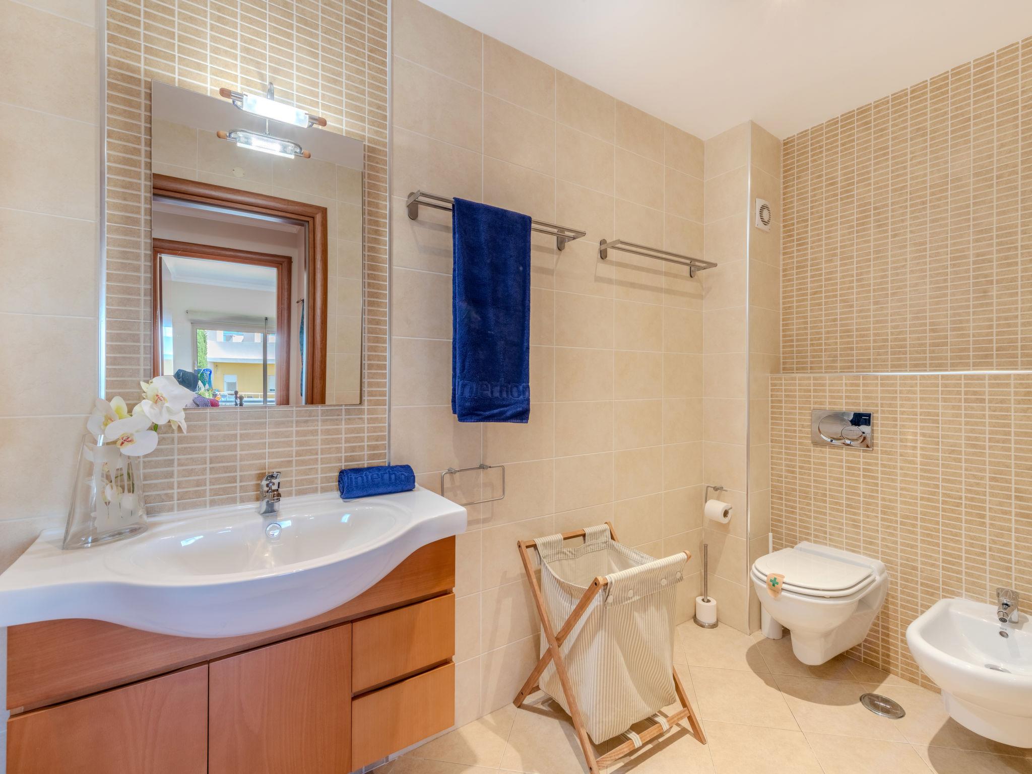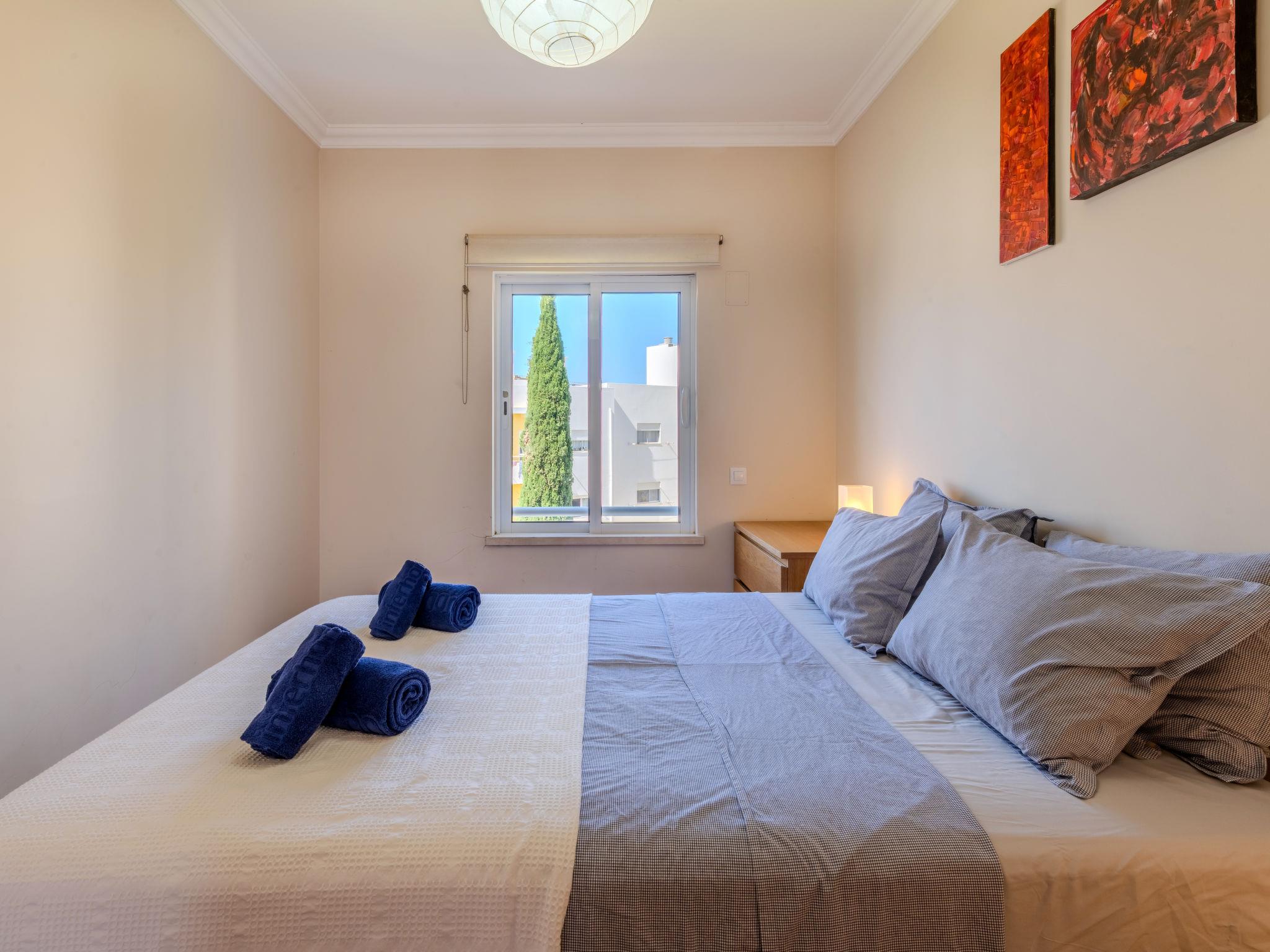 "Ismay", 4-room apartment 110 m2 on 3rd floor. Spacious and bright, very cosy furnishings: living/dining room with dining table, TV, international TV channels and air conditioning. Exit to the balcony. 3 rooms, each room with 1 french bed (160 cm, length 190 cm), air conditioning and forced-air heating. Kitchen (oven, dishwasher, Gas stove, 4 gas rings, toaster, kettle, microwave, freezer, electric coffee machine, Capsules for coffee machine (Nespresso Not Incl)). Exit to the balcony. Bath/bidet/WC, shower/bidet/WC. Sitting area. Side view of the sea. Facilities: washing machine, iron, children's high chair, baby cot, hair dryer. Internet (WiFi, free). Garage space n 3. ESQ Fracção I. Please note: suitable for families apartment street side. Non-smoking house. Smoke alarm, fire extinguisher. 101974/AL
