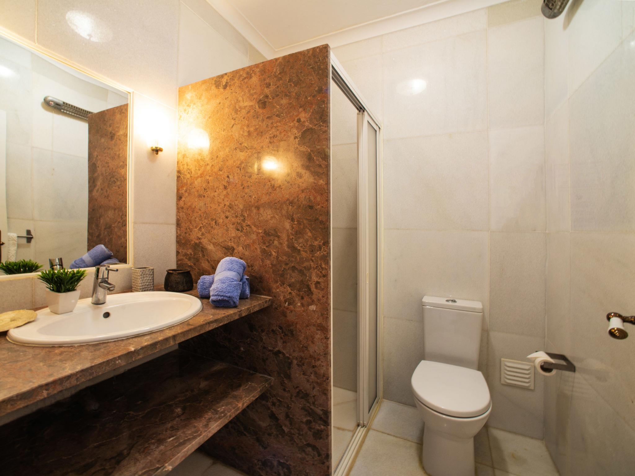 "Luz Romana A1", 4-room semi-detached house 100 m2. Bright, beautiful furnishings: living/dining room 40 m2 with dining table, satellite TV and electric heater. 1 room with 1 bed (160 cm, length 200 cm), shower/WC. 2 rooms, each room with 2 beds (100 cm, length 200 cm). Open kitchen (4 hot plates, oven, dishwasher, toaster, microwave, freezer, electric coffee machine). Shower/WC. Heating not available in all rooms. Terrace roofed. Terrace furniture, barbecue, deck chairs (6). View of the swimming pool. Facilities: safe, children's high chair, baby cot. Internet (WiFi, free). Please note: non-smokers only. Smoke alarm, fire extinguisher. 24806/AL